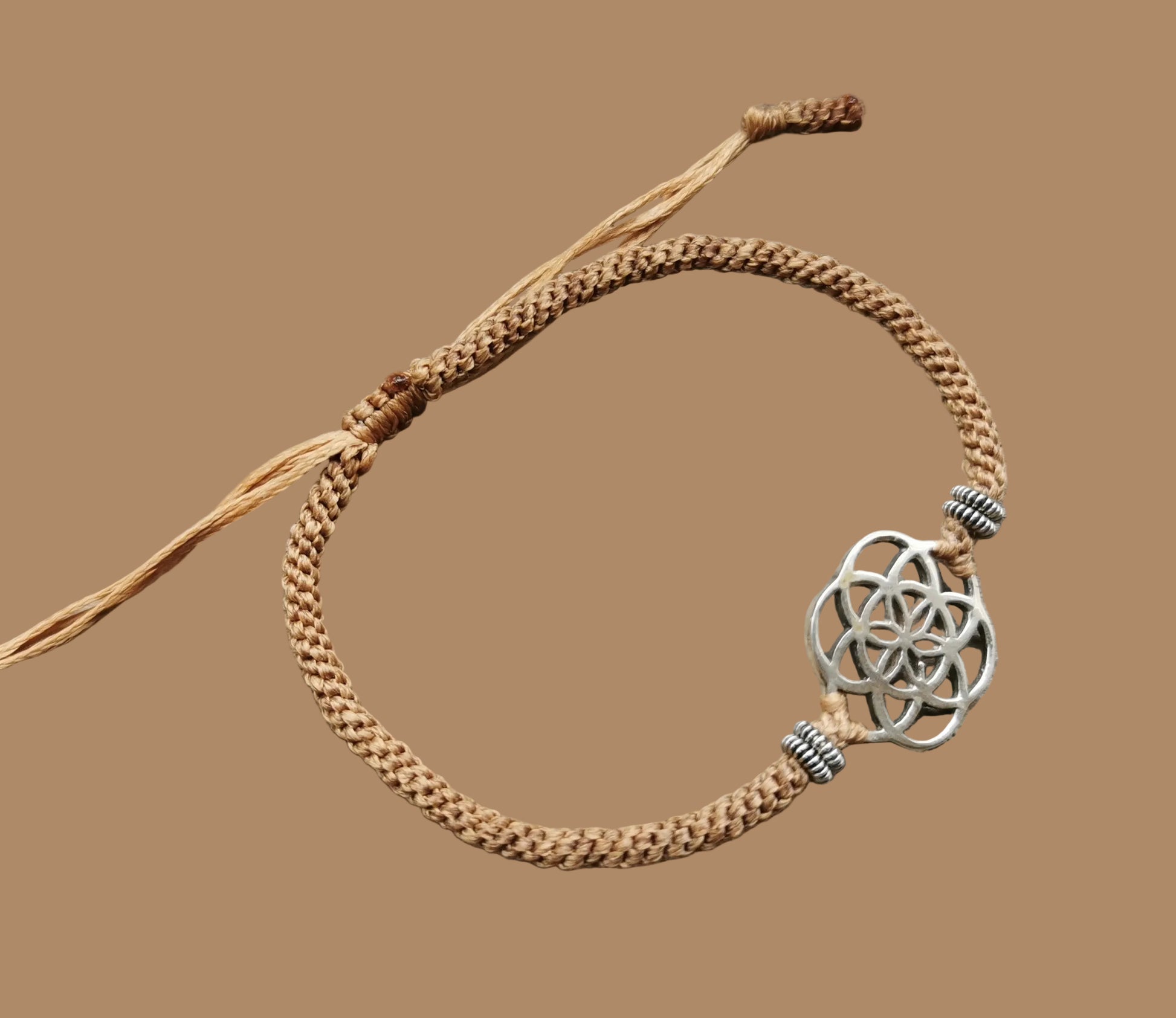 Ref.BR0018 - Silver bracelet with Solar Mandala, aka Seed of Life, geometry.