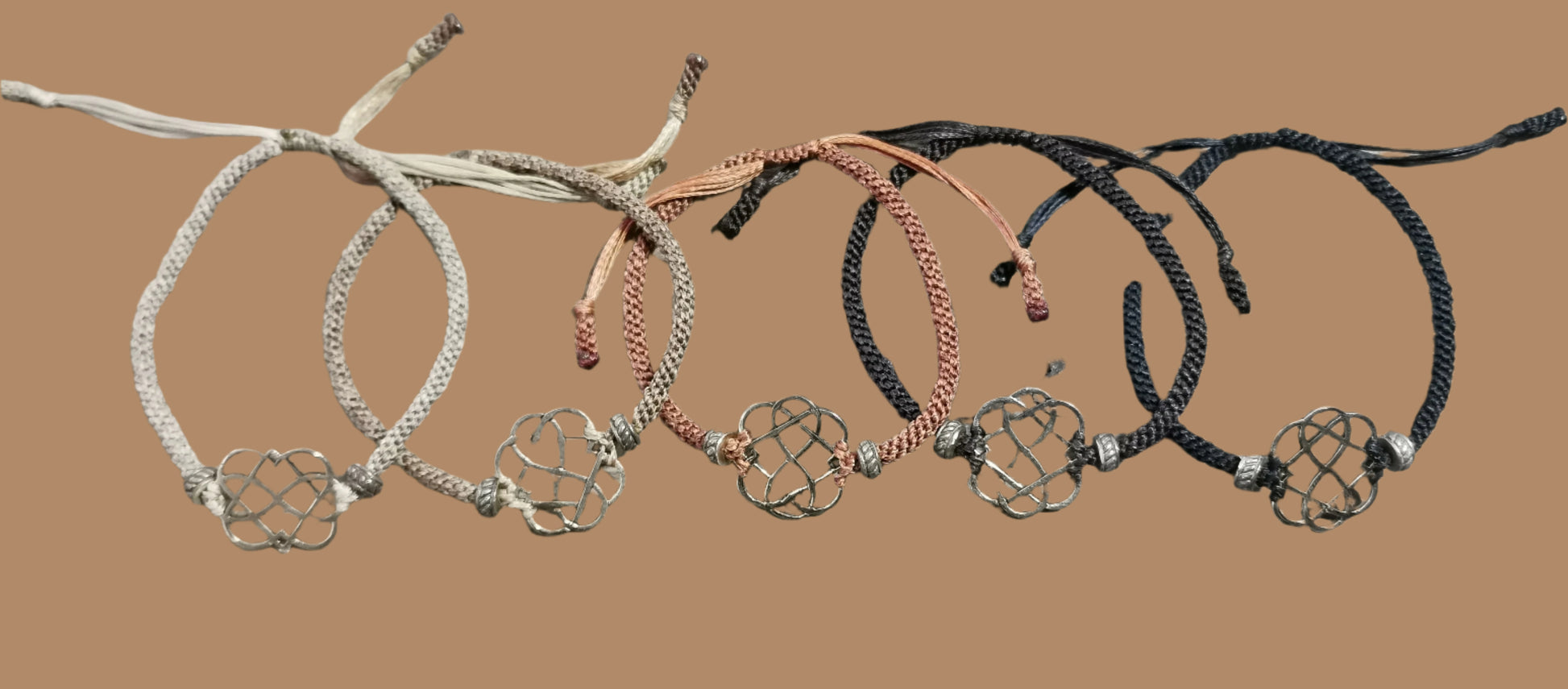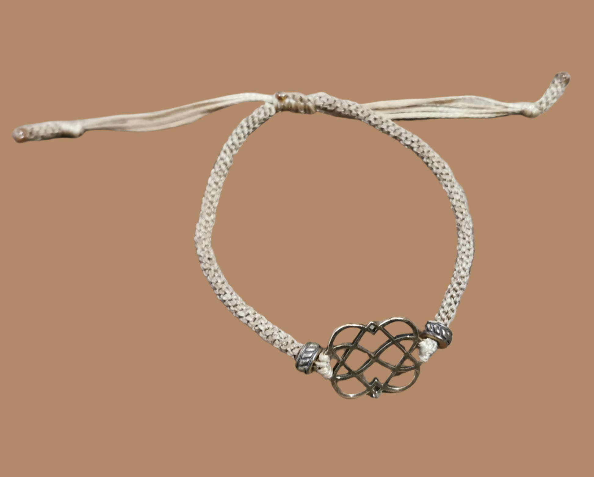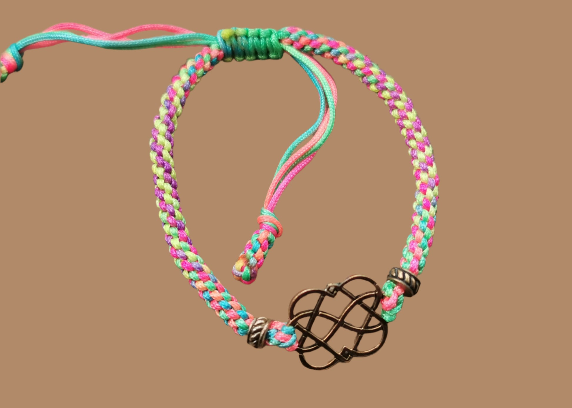 Ref.BR0019 - Nylon bracelet with two hearts entwined with the infinity symbol.