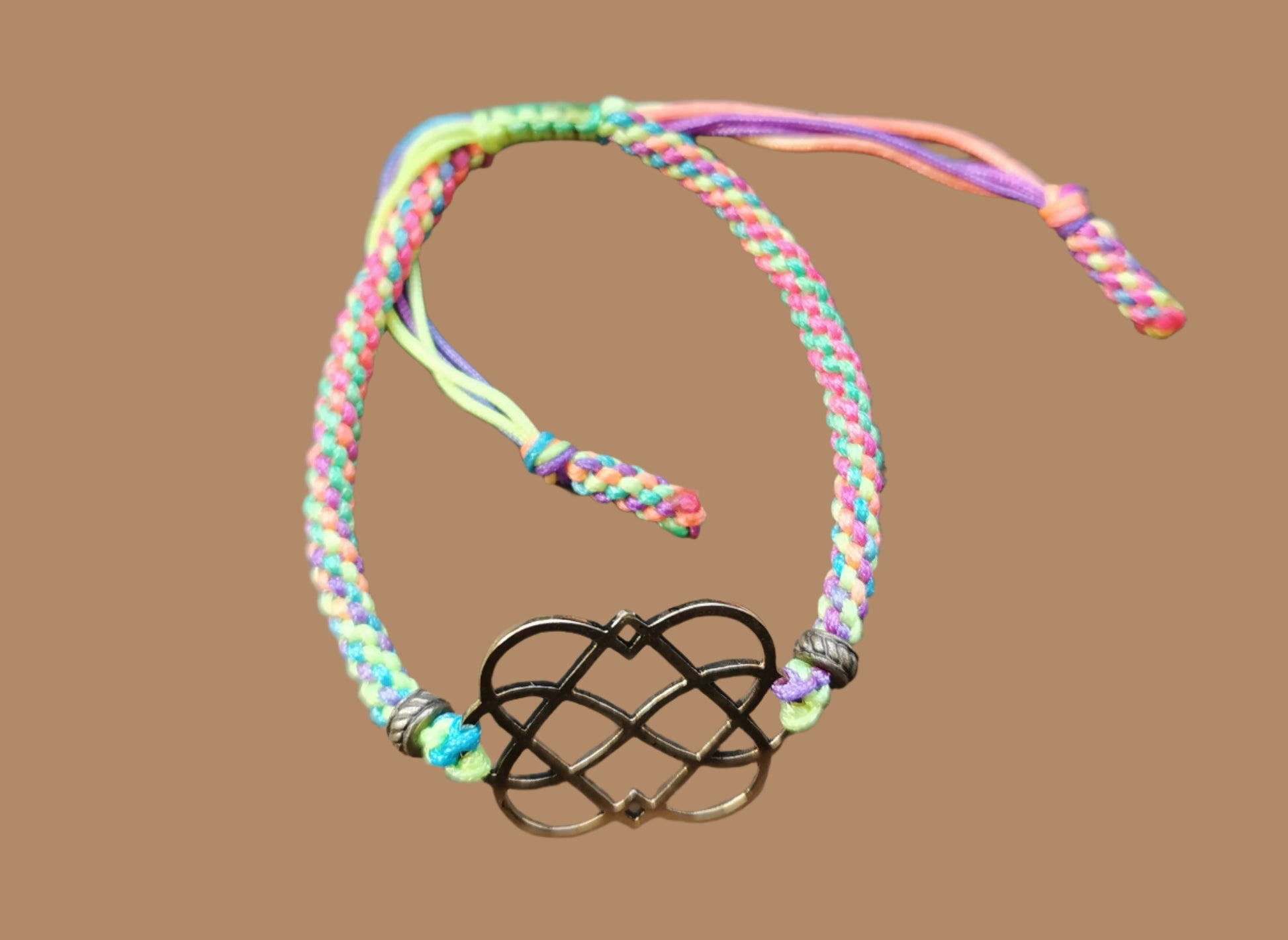 Ref.BR0020 - Nylon bracelet with two hearts entwined with the infinity symbol.
