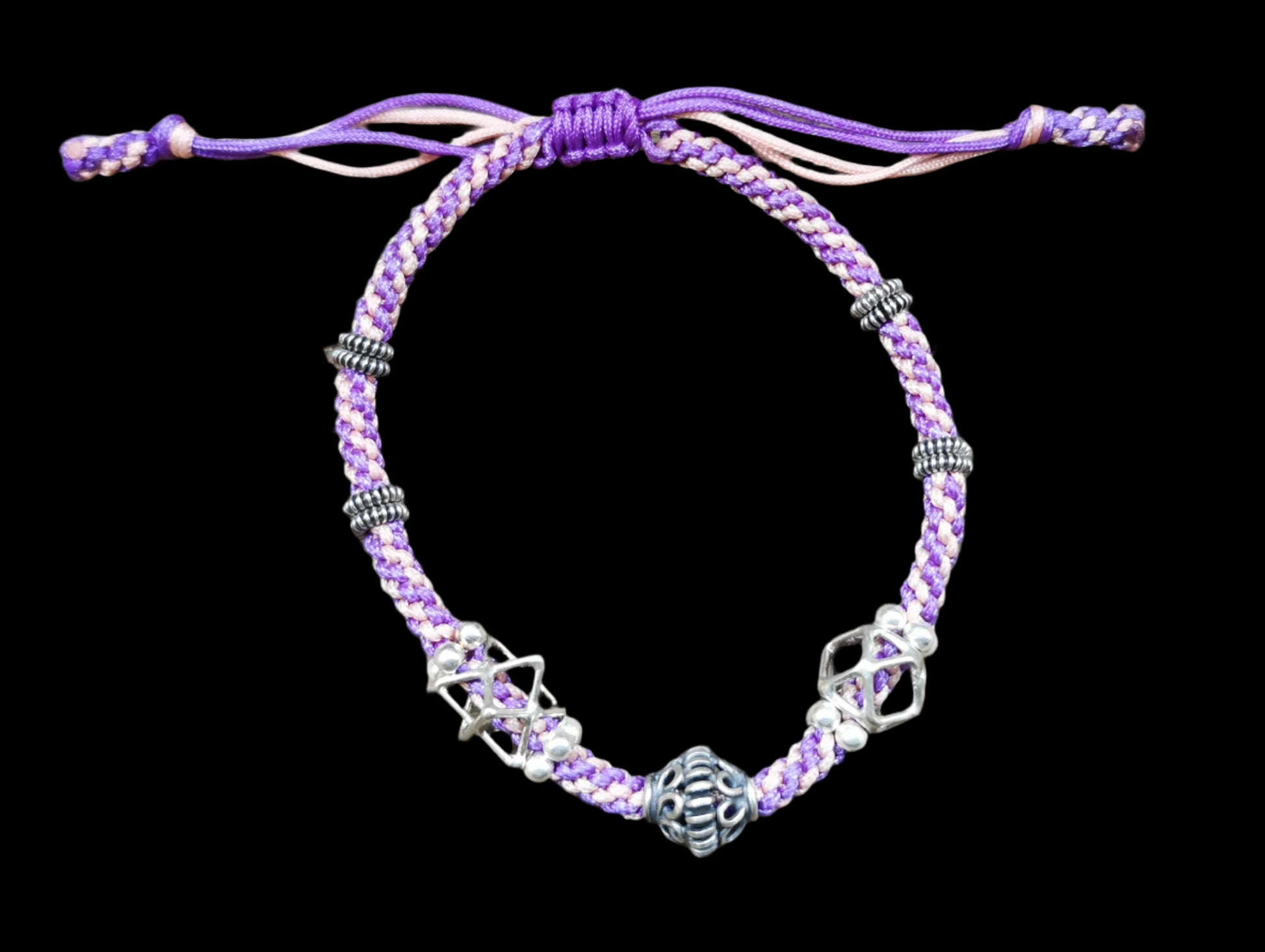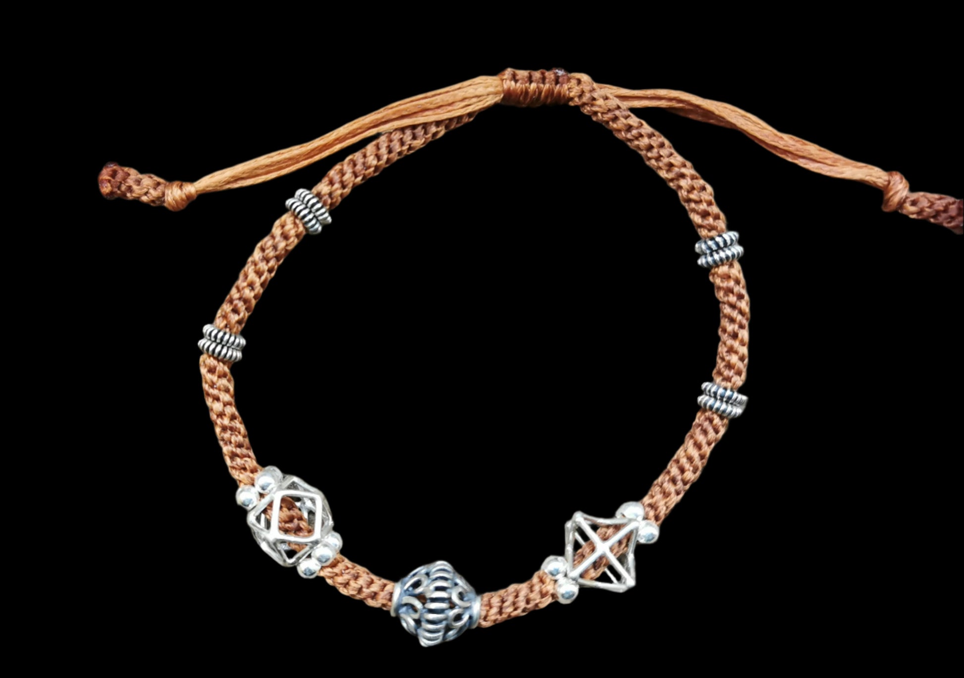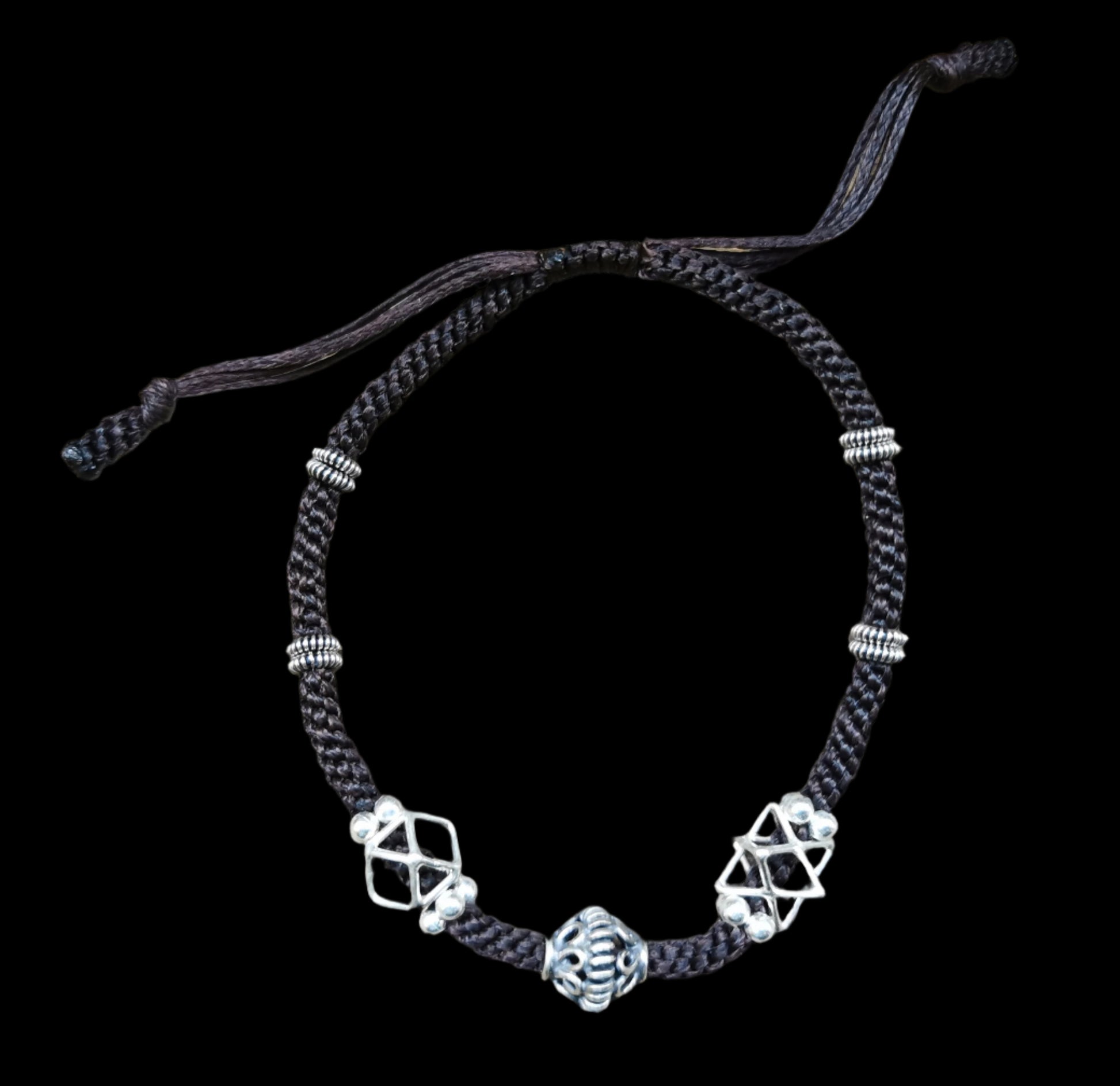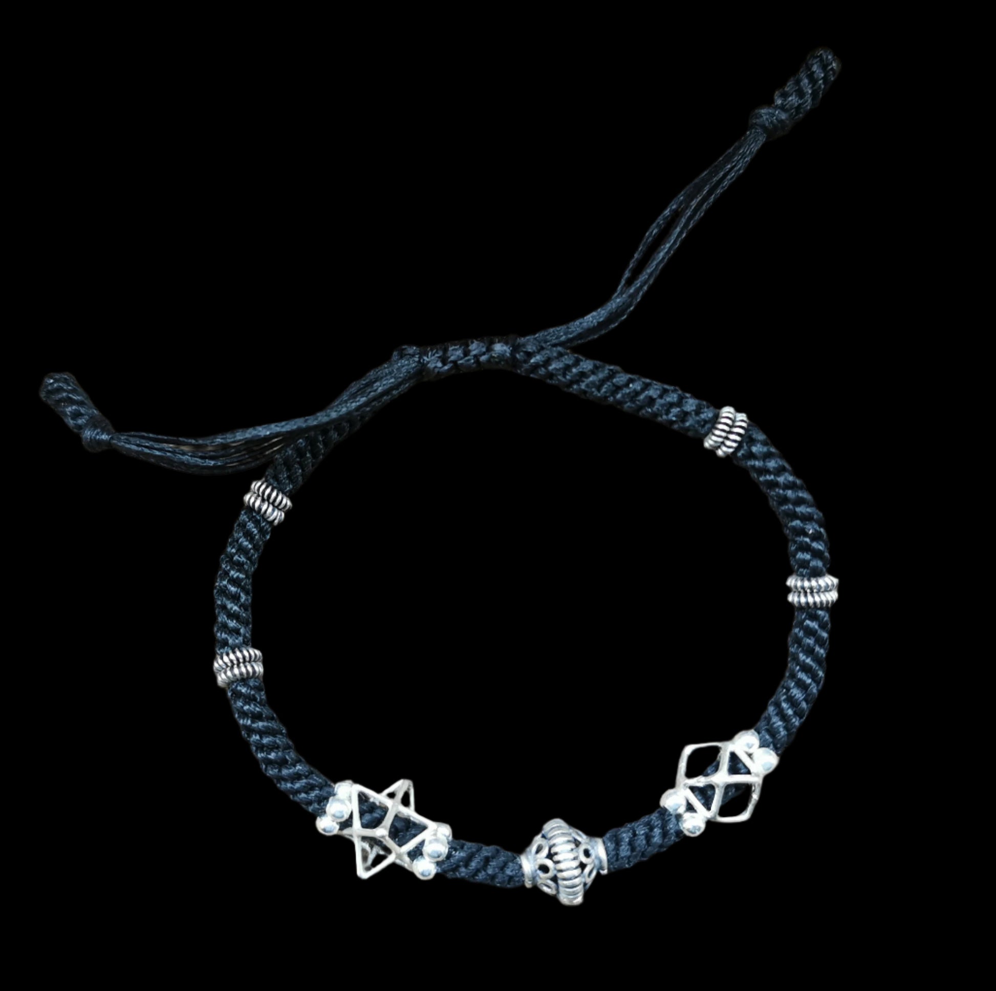 Ref.BR0023 - Nylon bracelet with silver Star Tetrahedron & Cuboctahedron geometries.