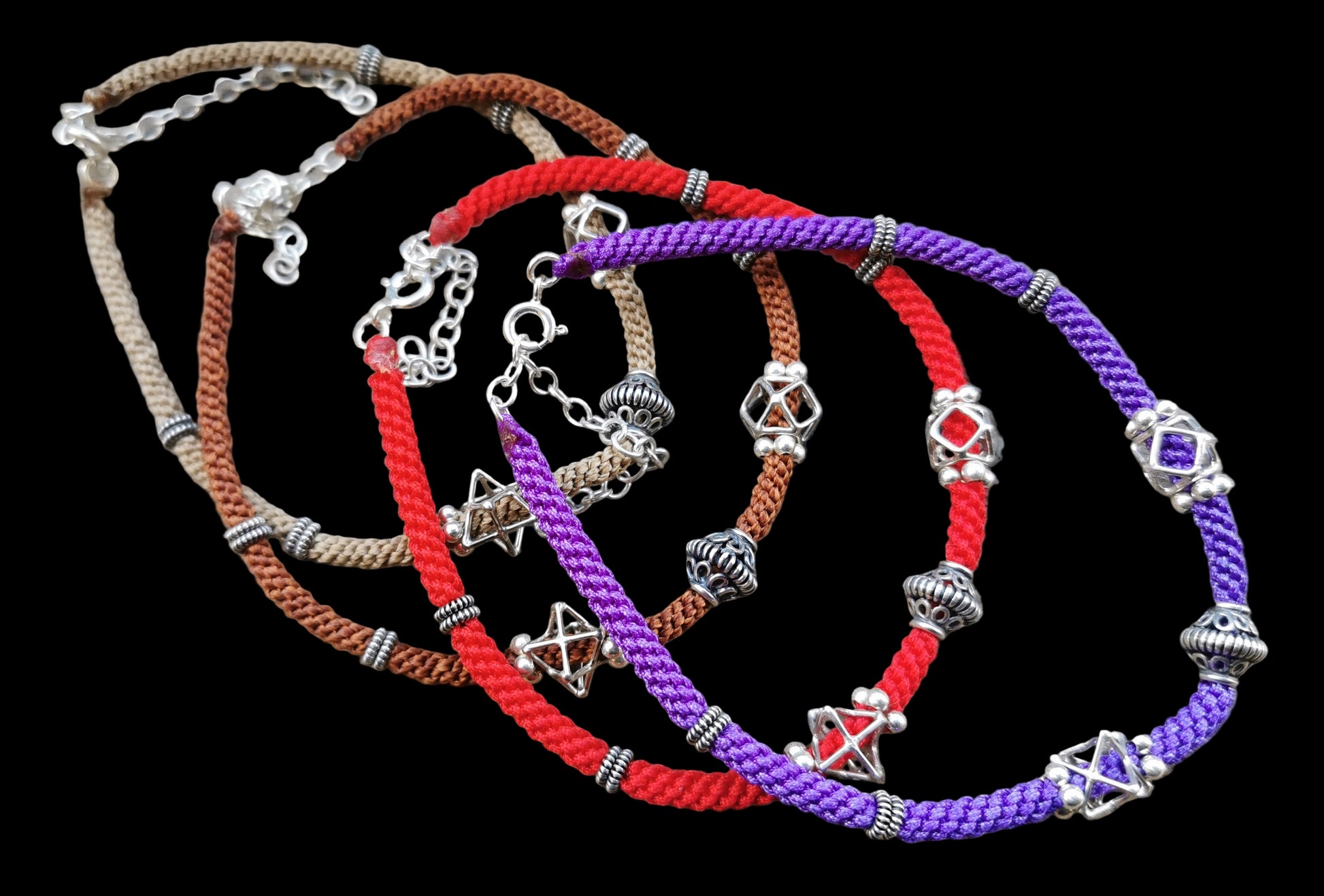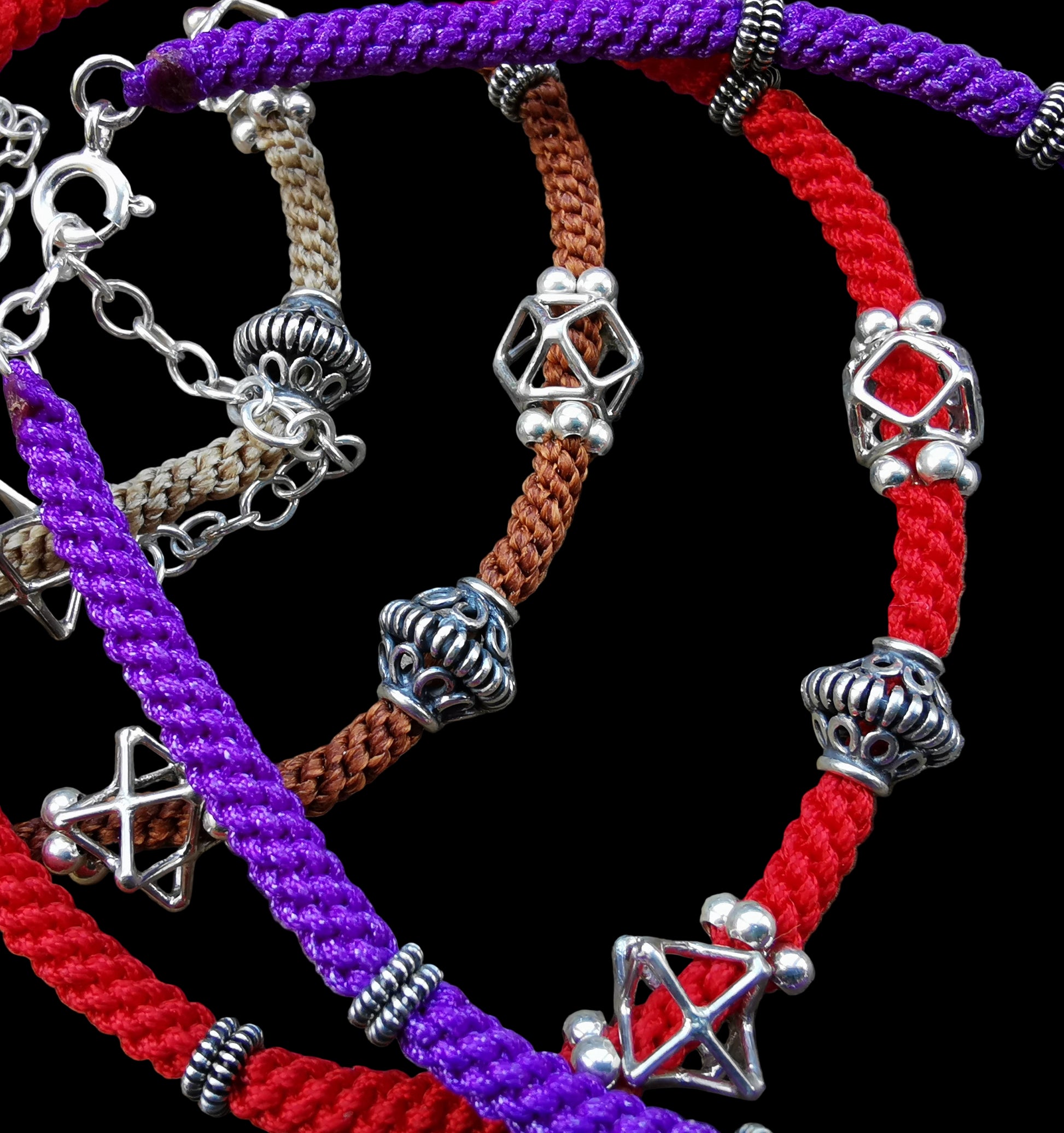 Ref.BR0026 - Ankle bracelet with silver Star Tetrahedron & Cuboctahedron geometries, and nylon.