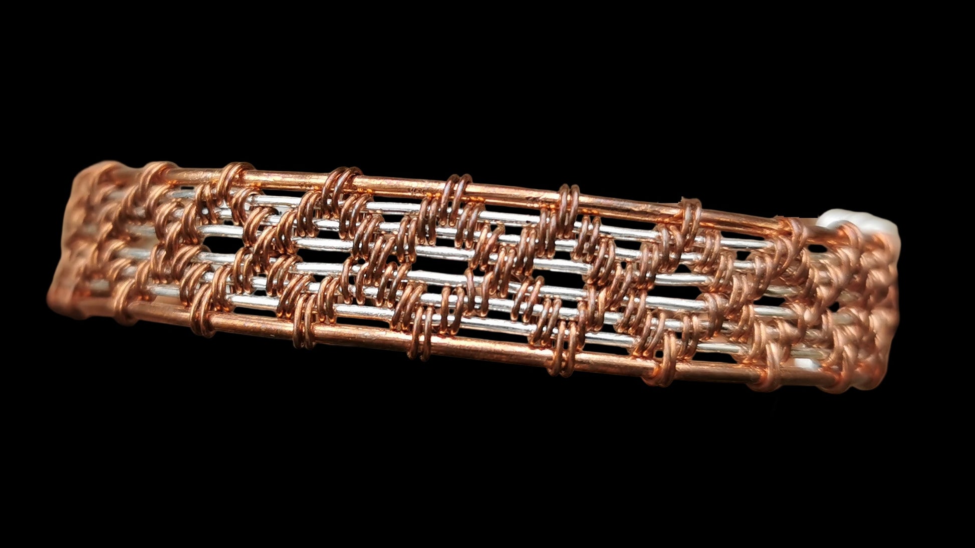 Ref.BR0050 - Copper & silver plated wire wrap bangle.