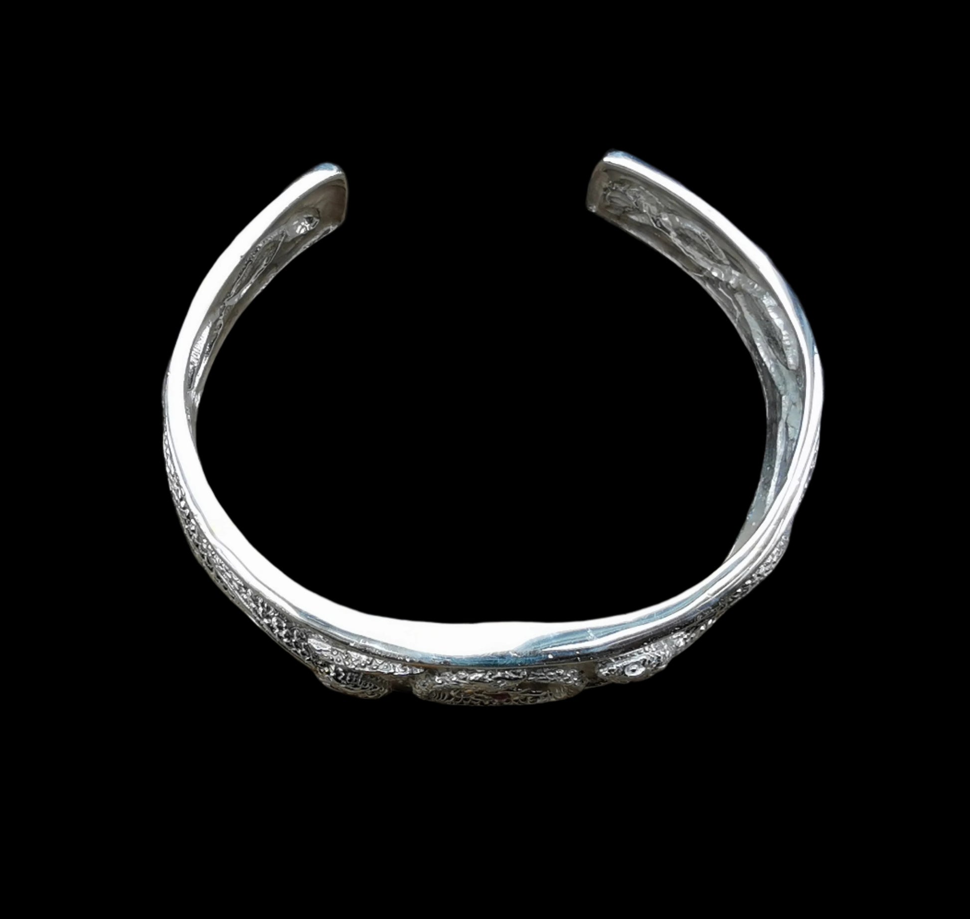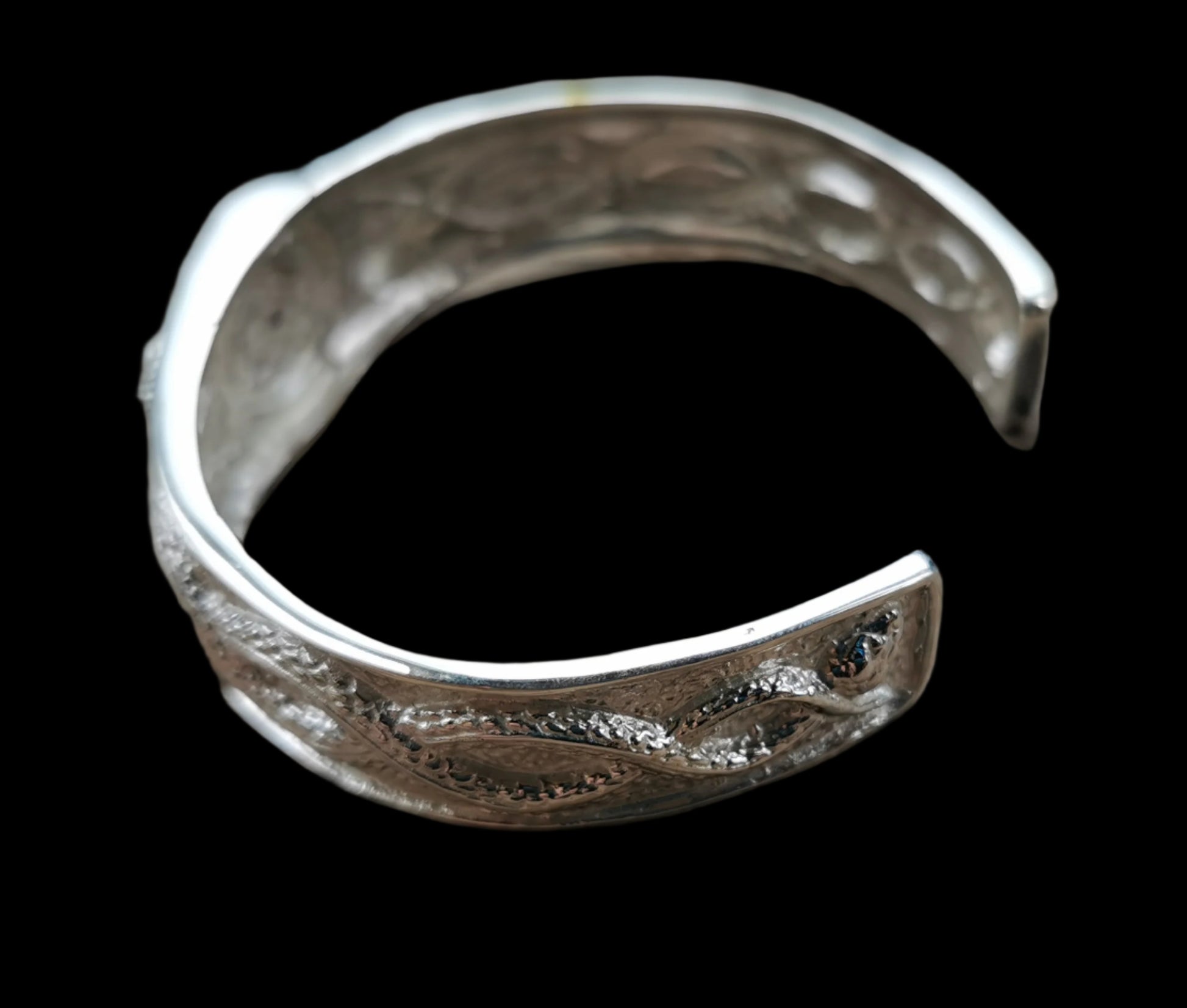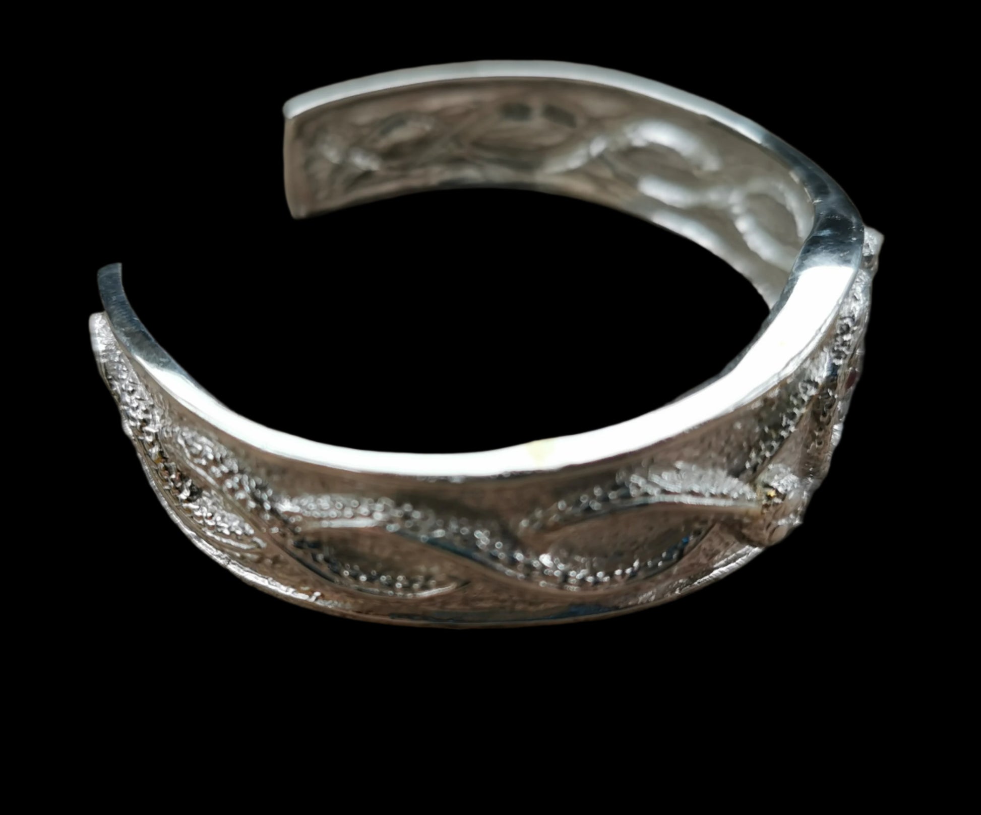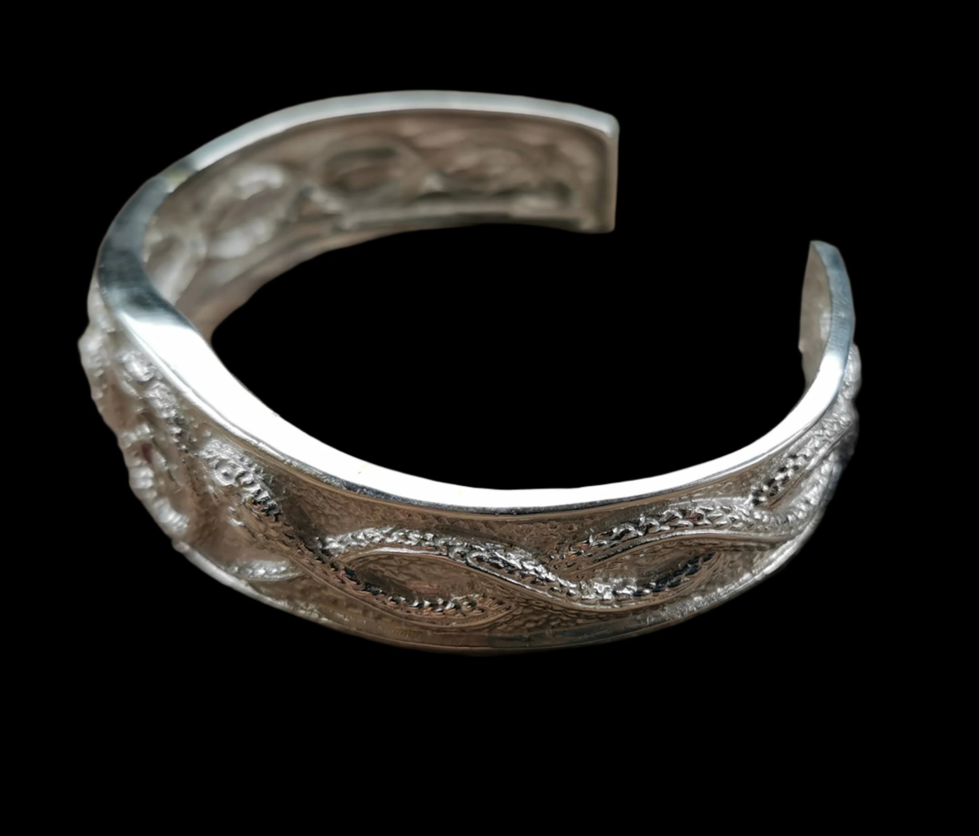 Ref.BR0054 - Sterling silver bracelet with ouroboros motif and gemstone.