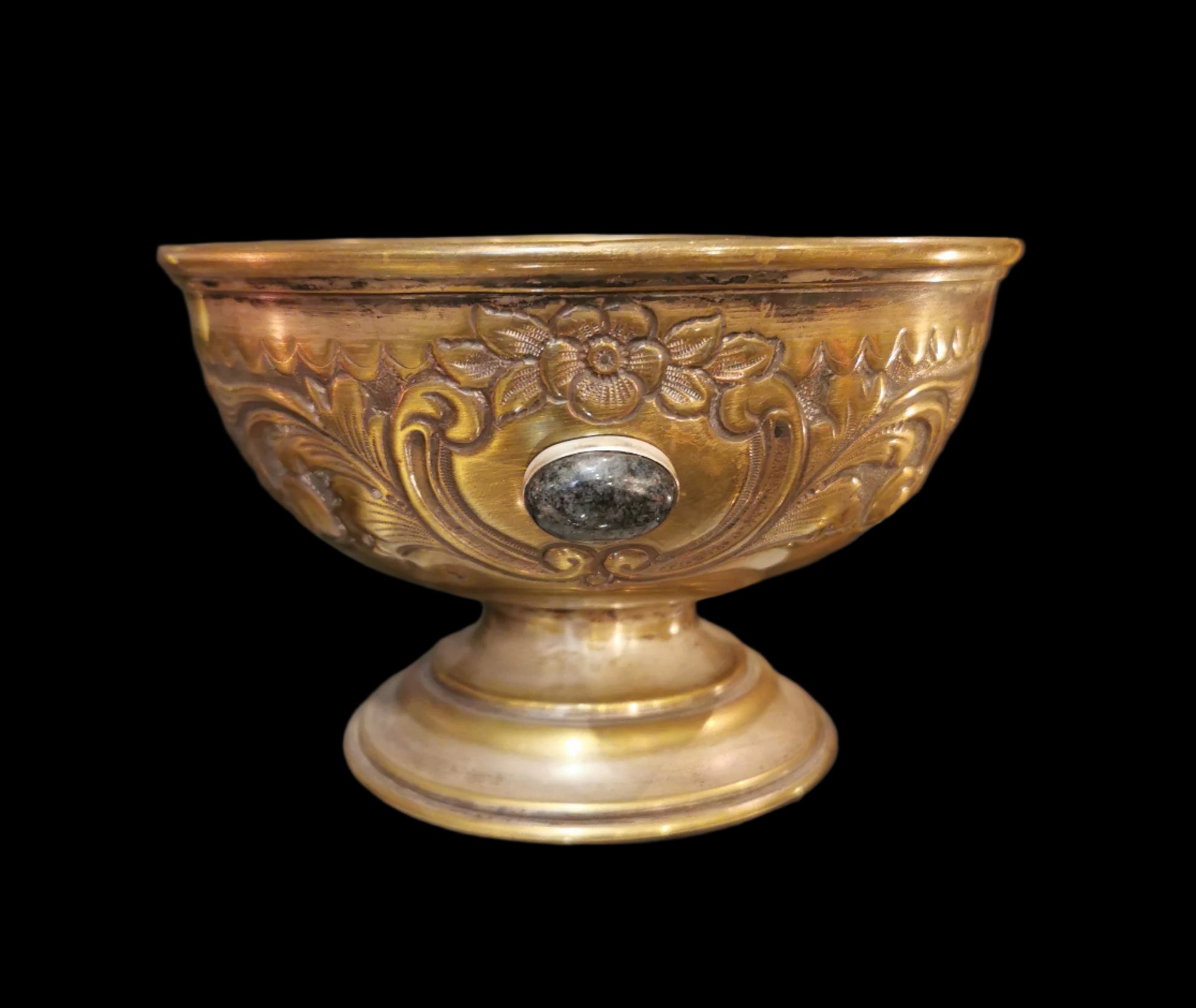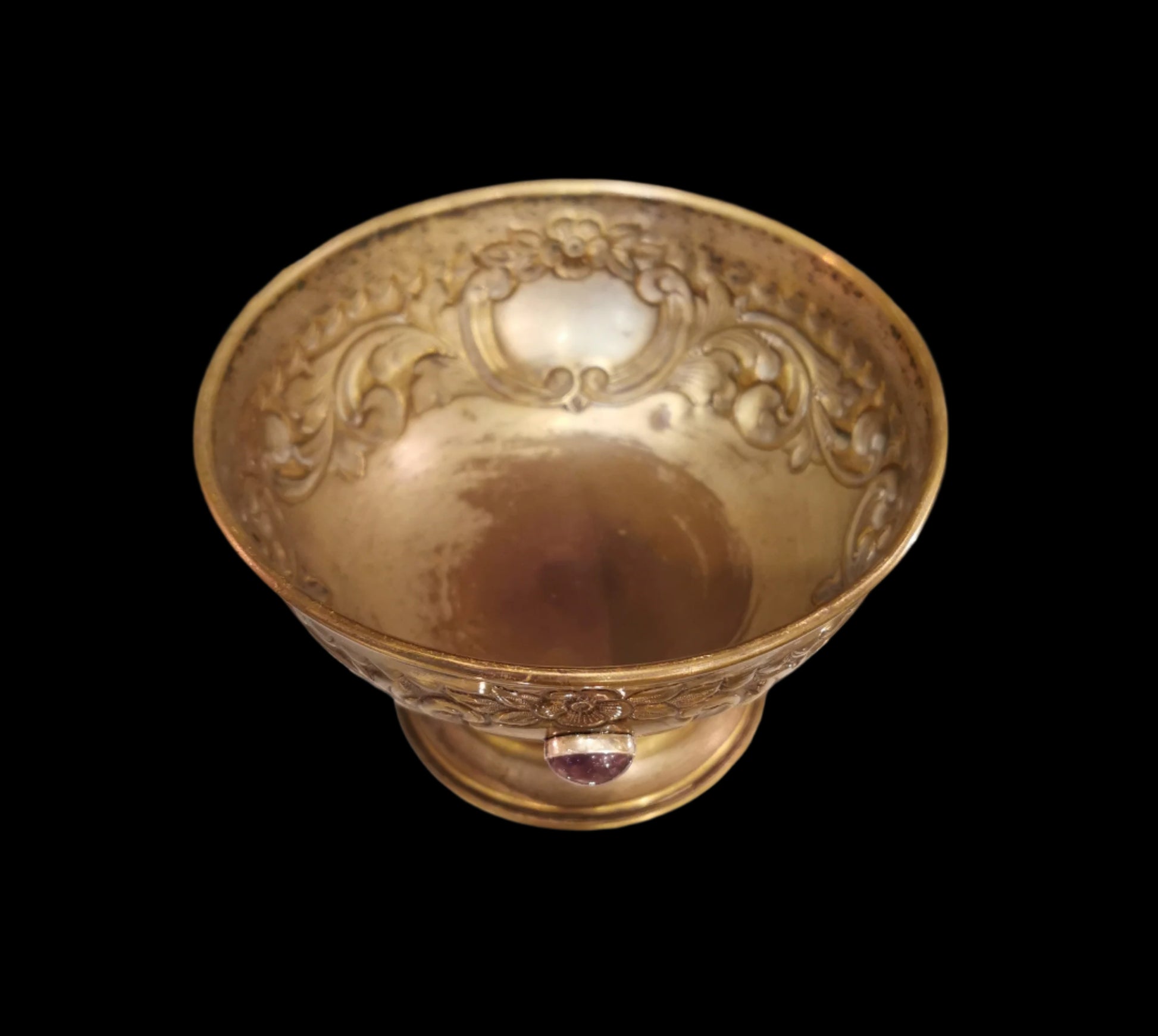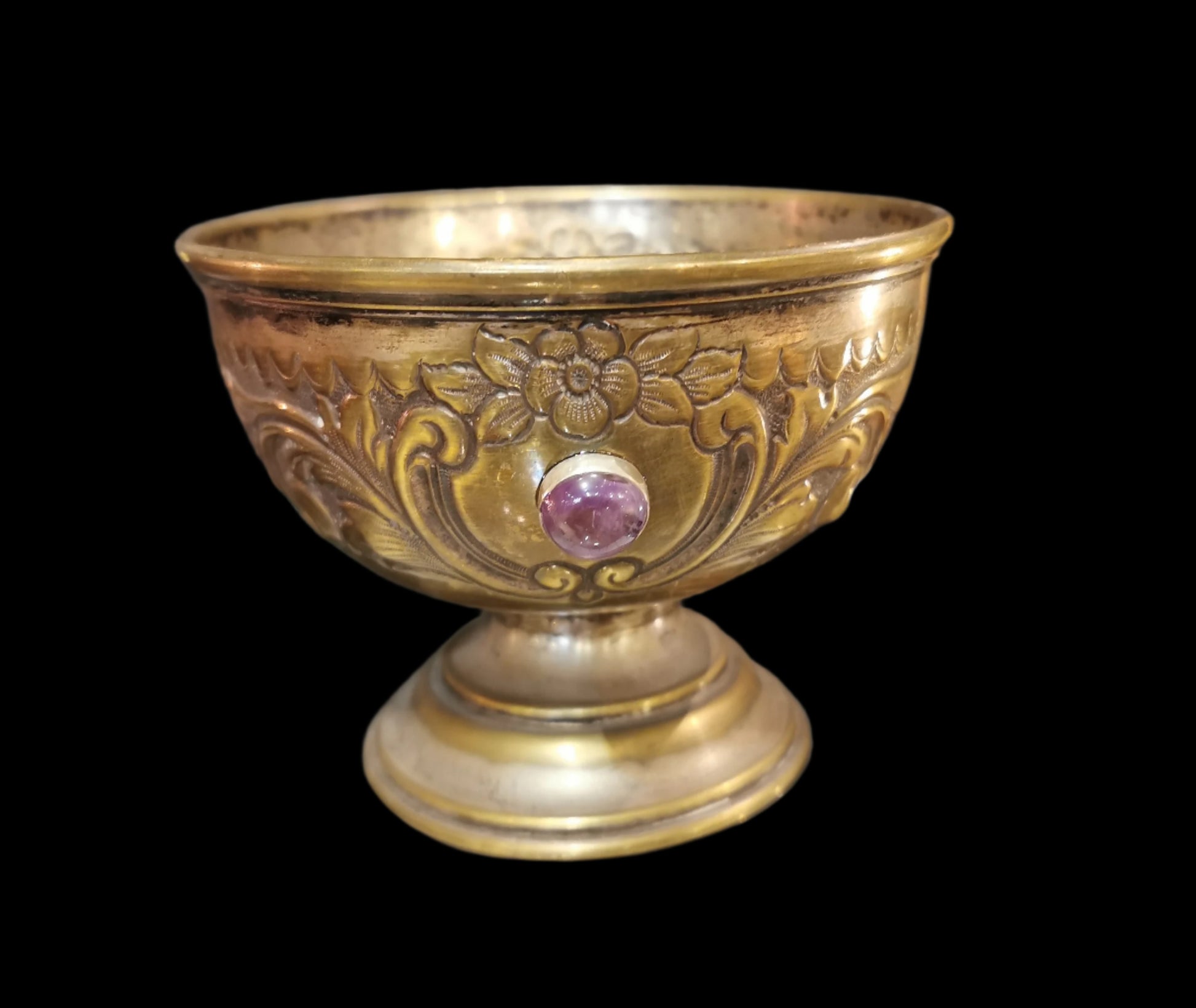 Ref.CH0019 - Brass ceremonial bowl with amethyst, and lapis lazuli gemstones.