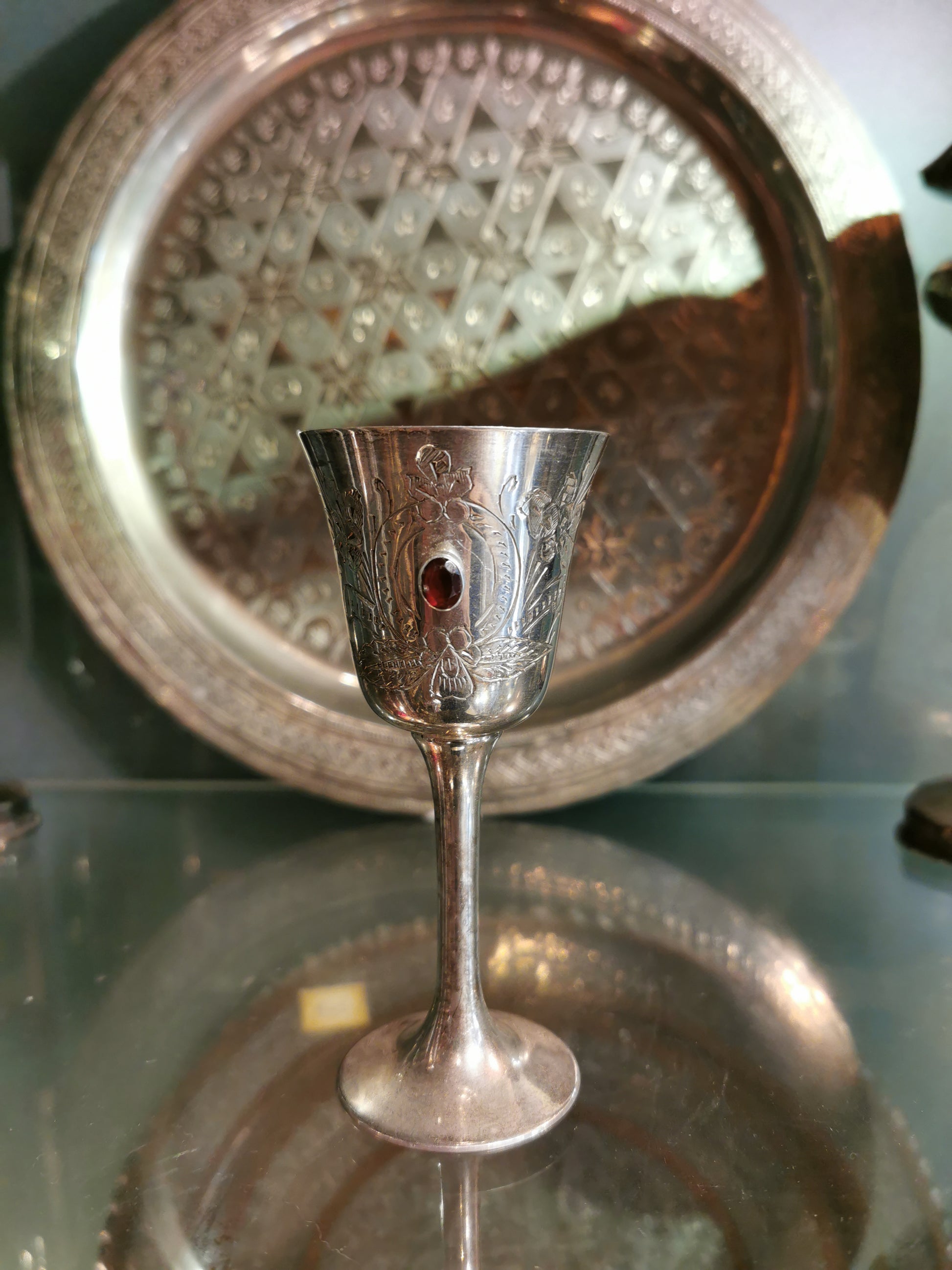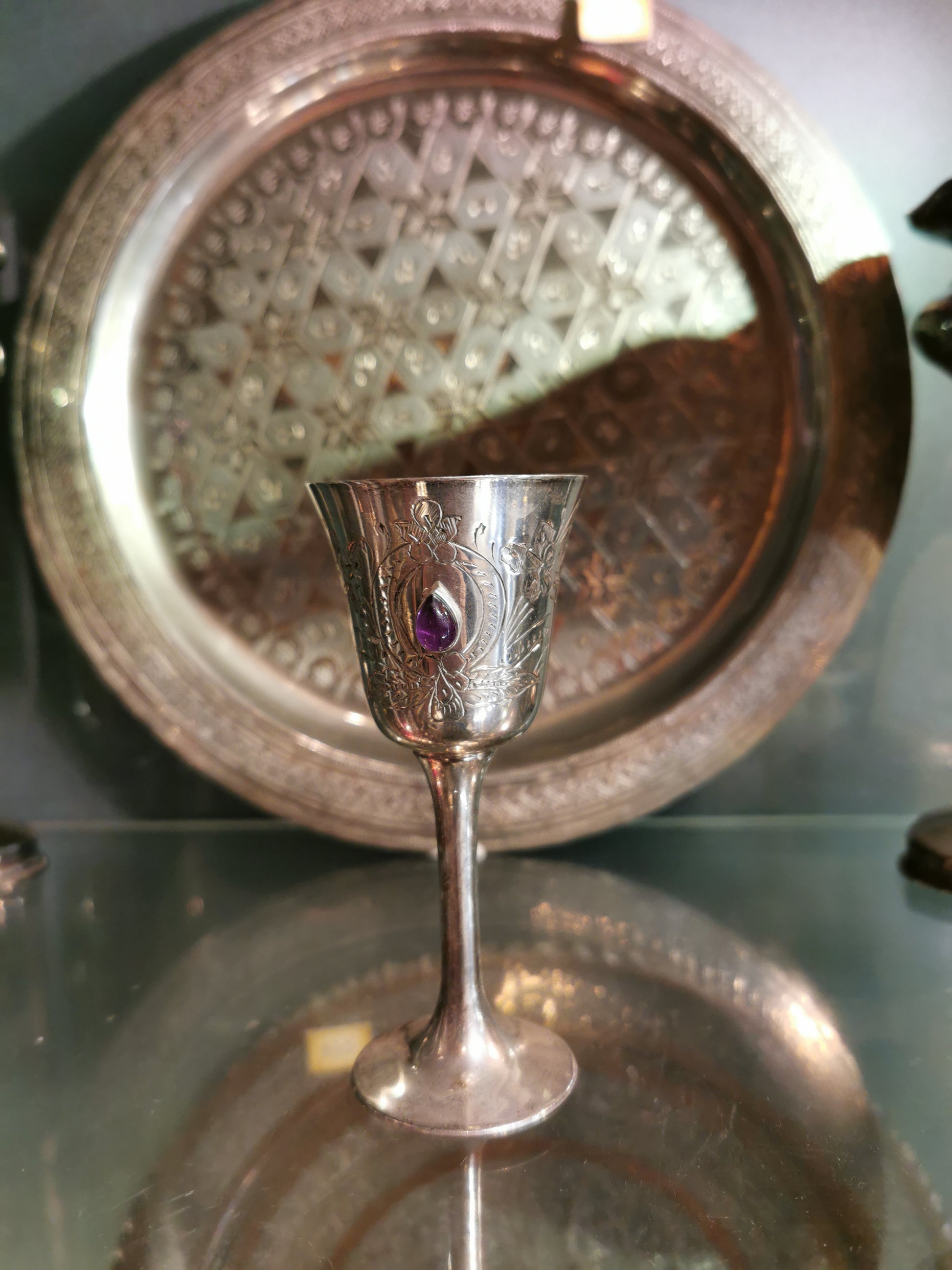 Ref.CH0149 - Silver plated goblet with garnet, and amethyst gemstones.