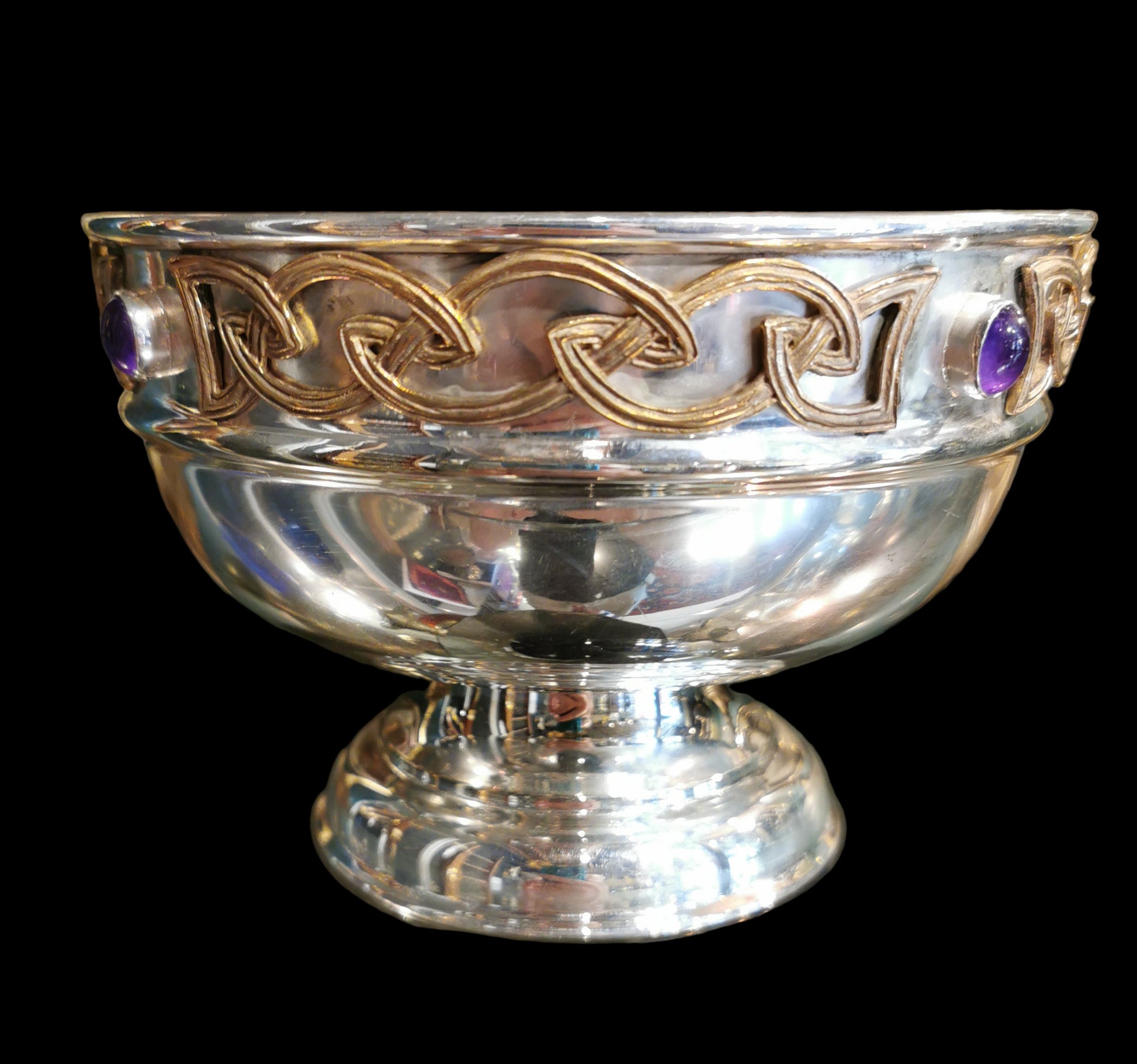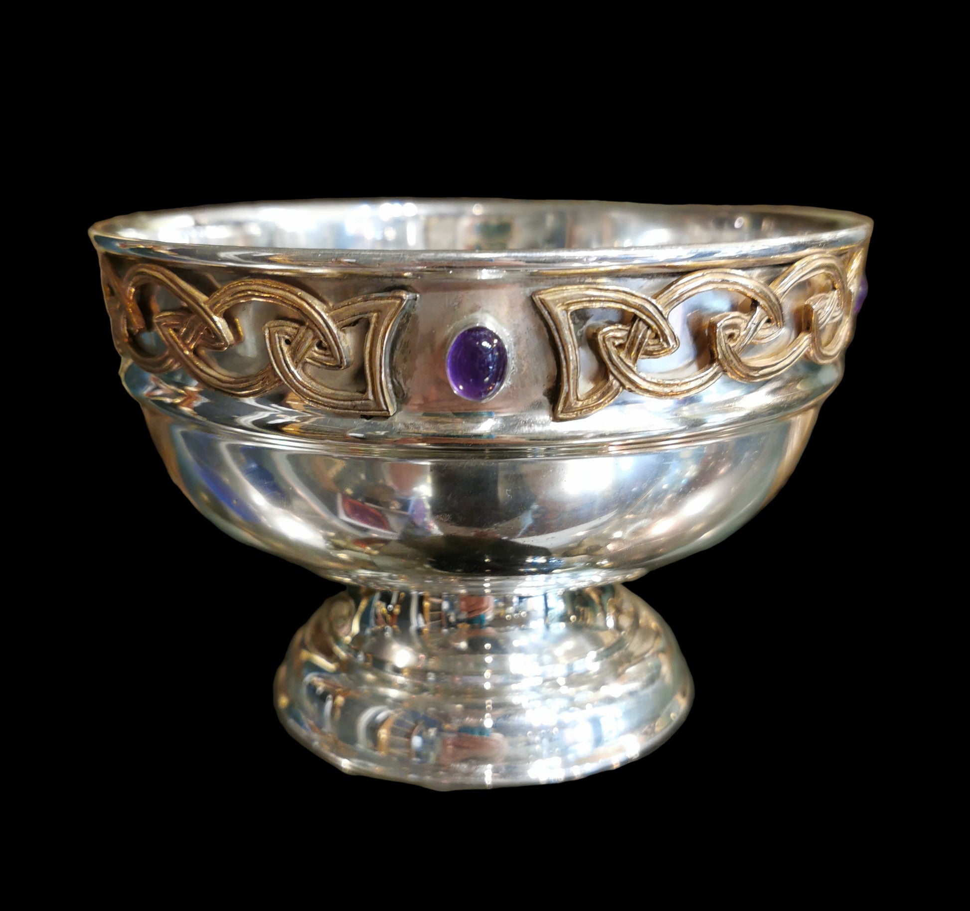 Ref.CH0194 - Silver plated bowl with Celtic decorations in brass, and amethyst gems.