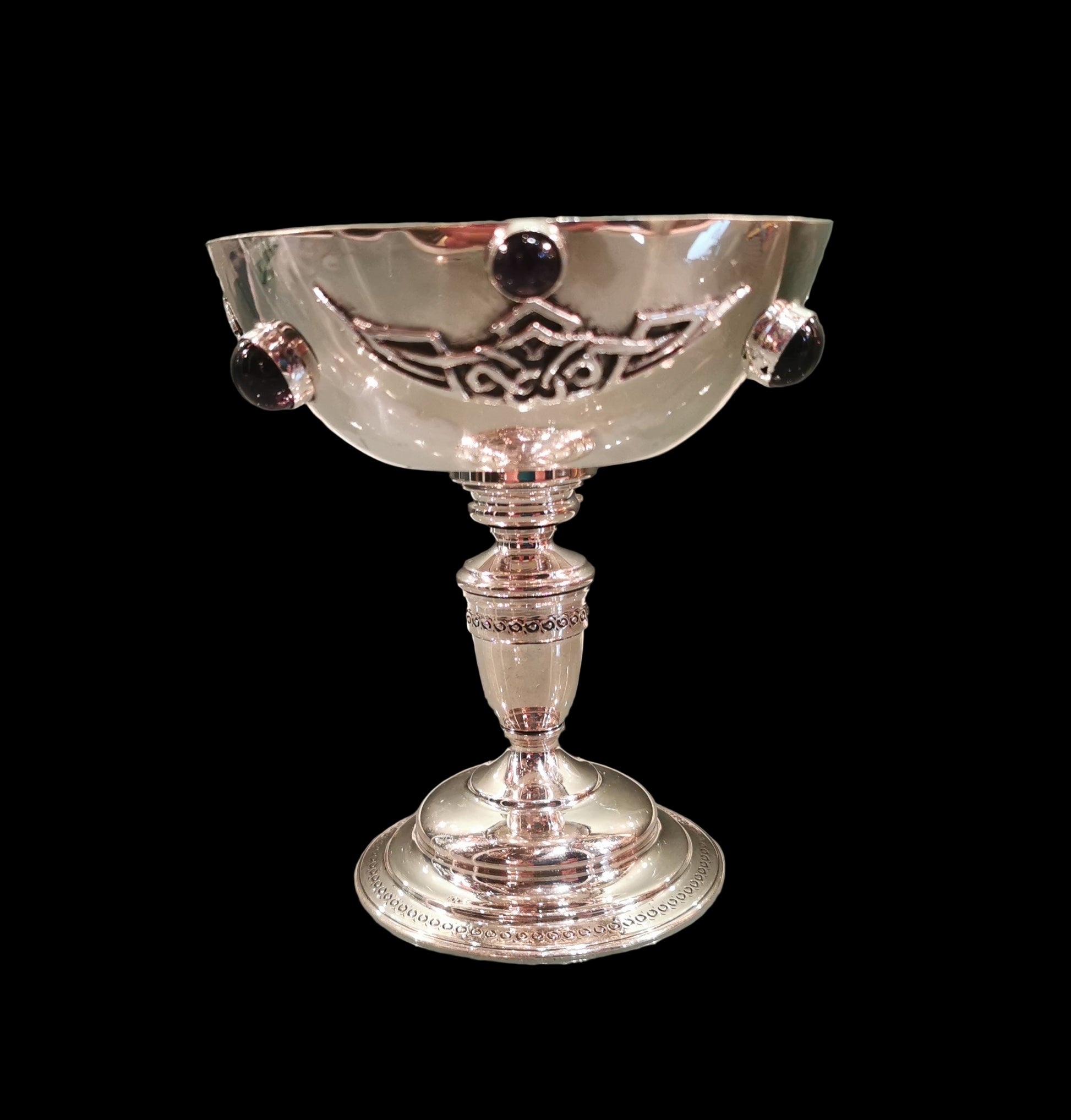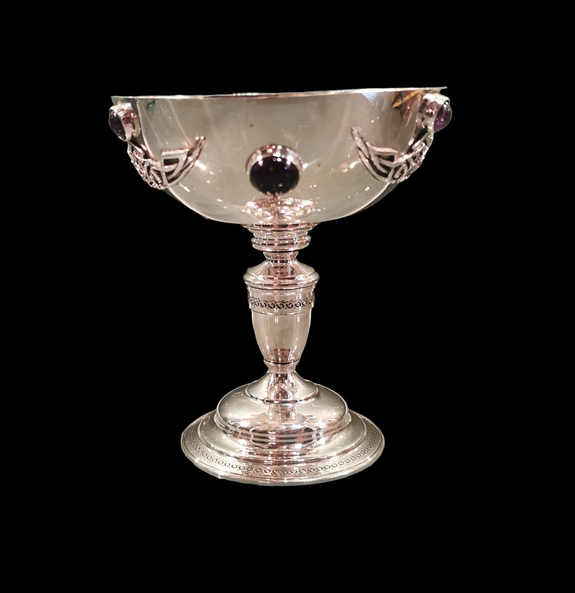 Ref.CH0200 - Silver goblet with amethyst gemstones. The cup is silver plated.