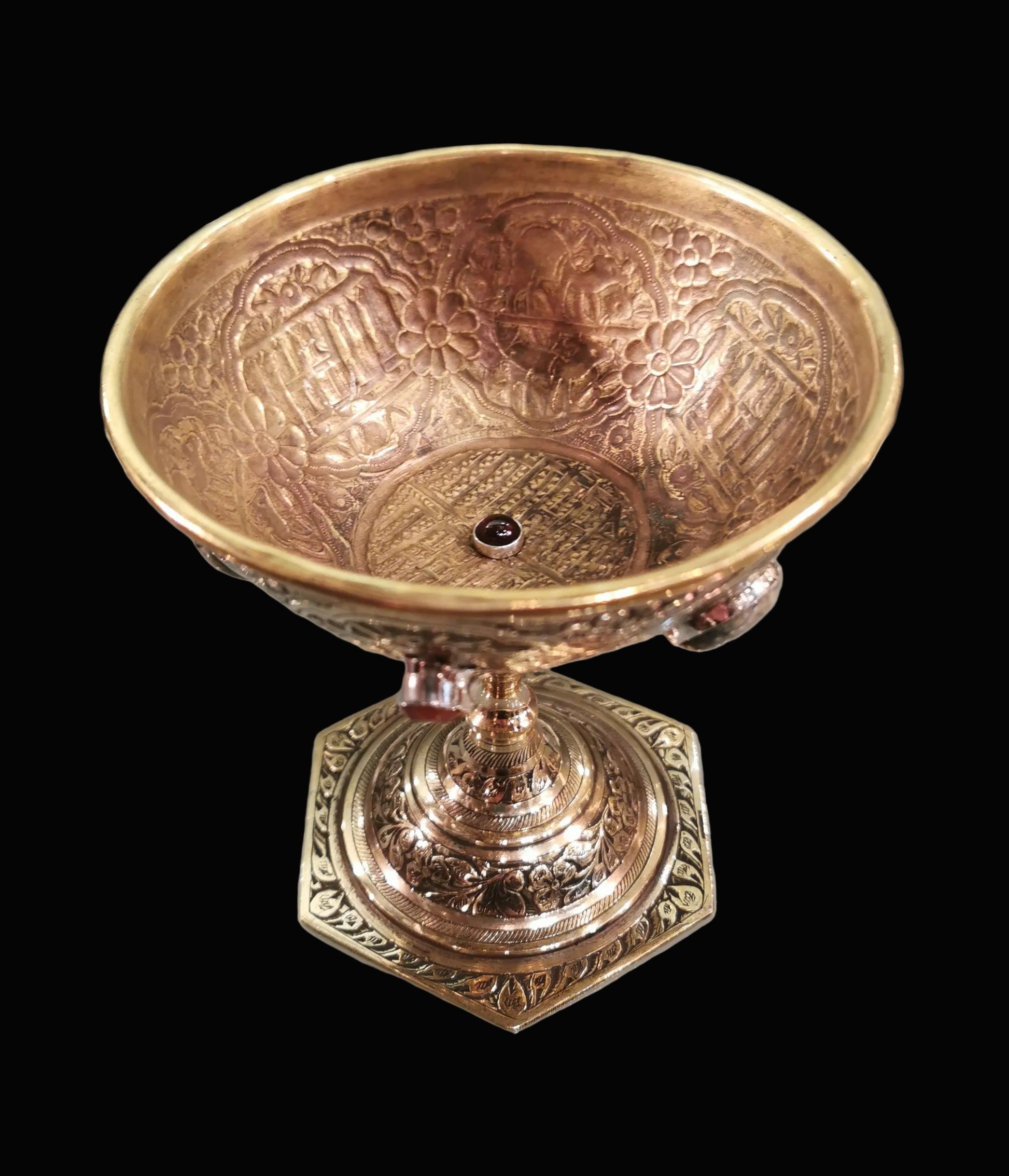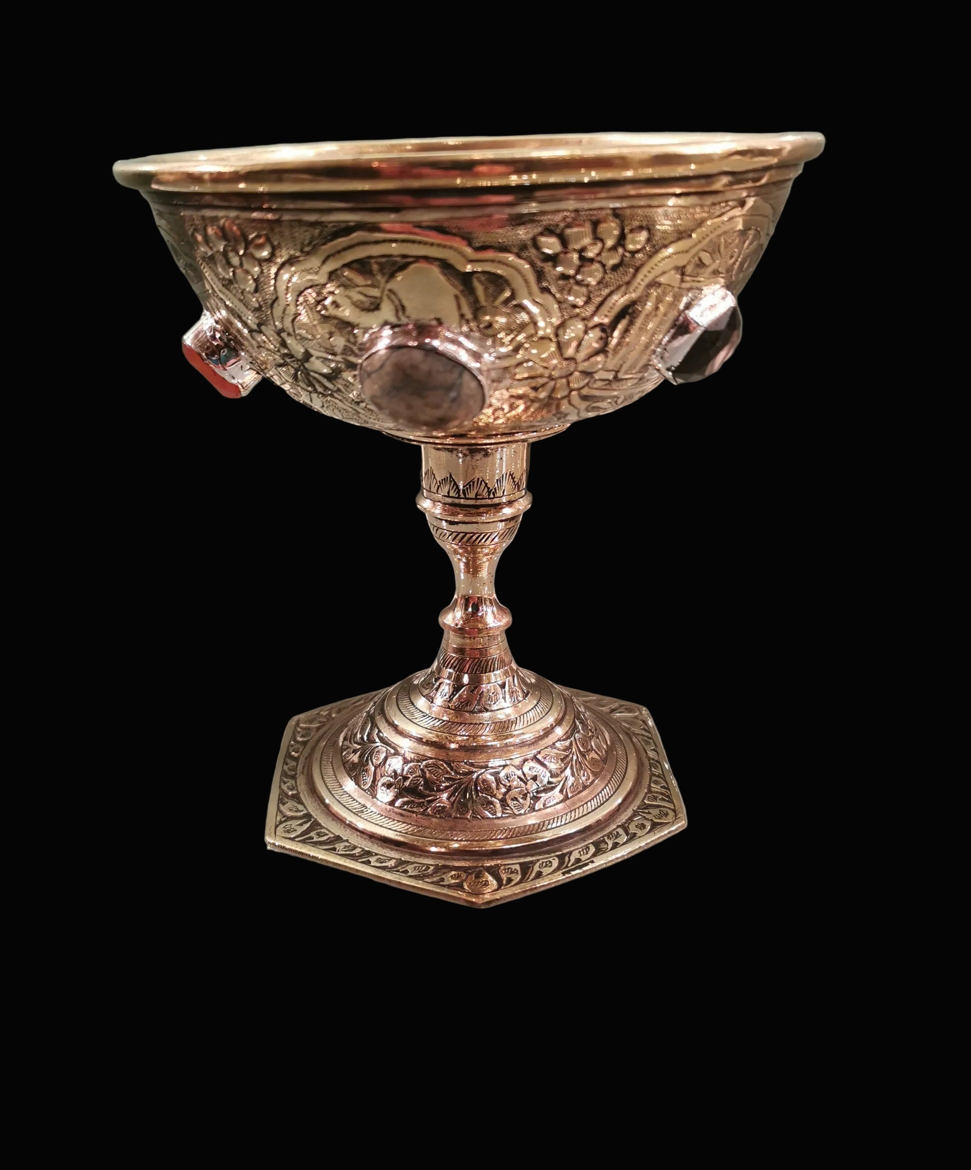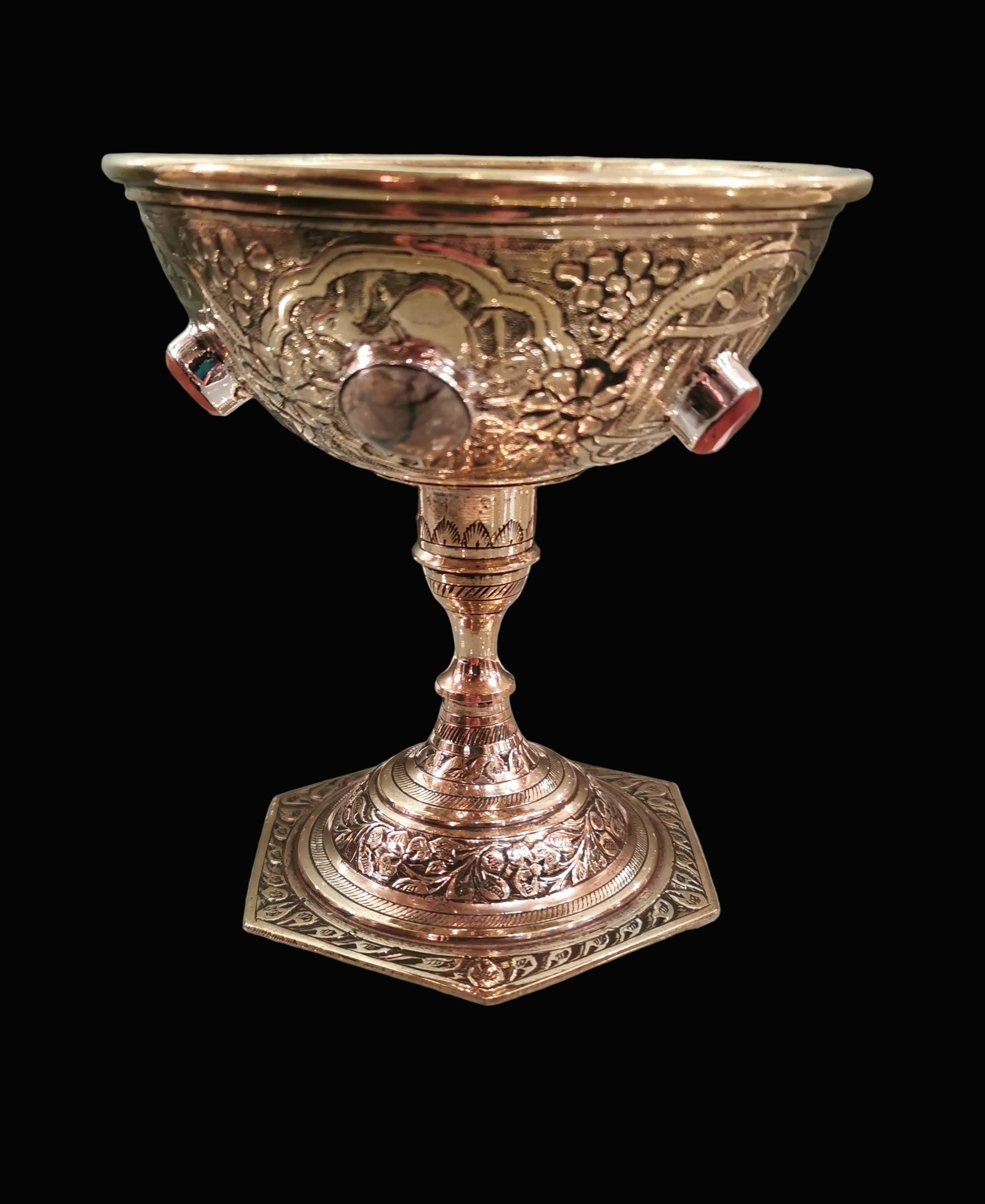 Ref.CH0206 - Brass goblet with carnelian, labradorite, howlite , and amethyst gemstones.