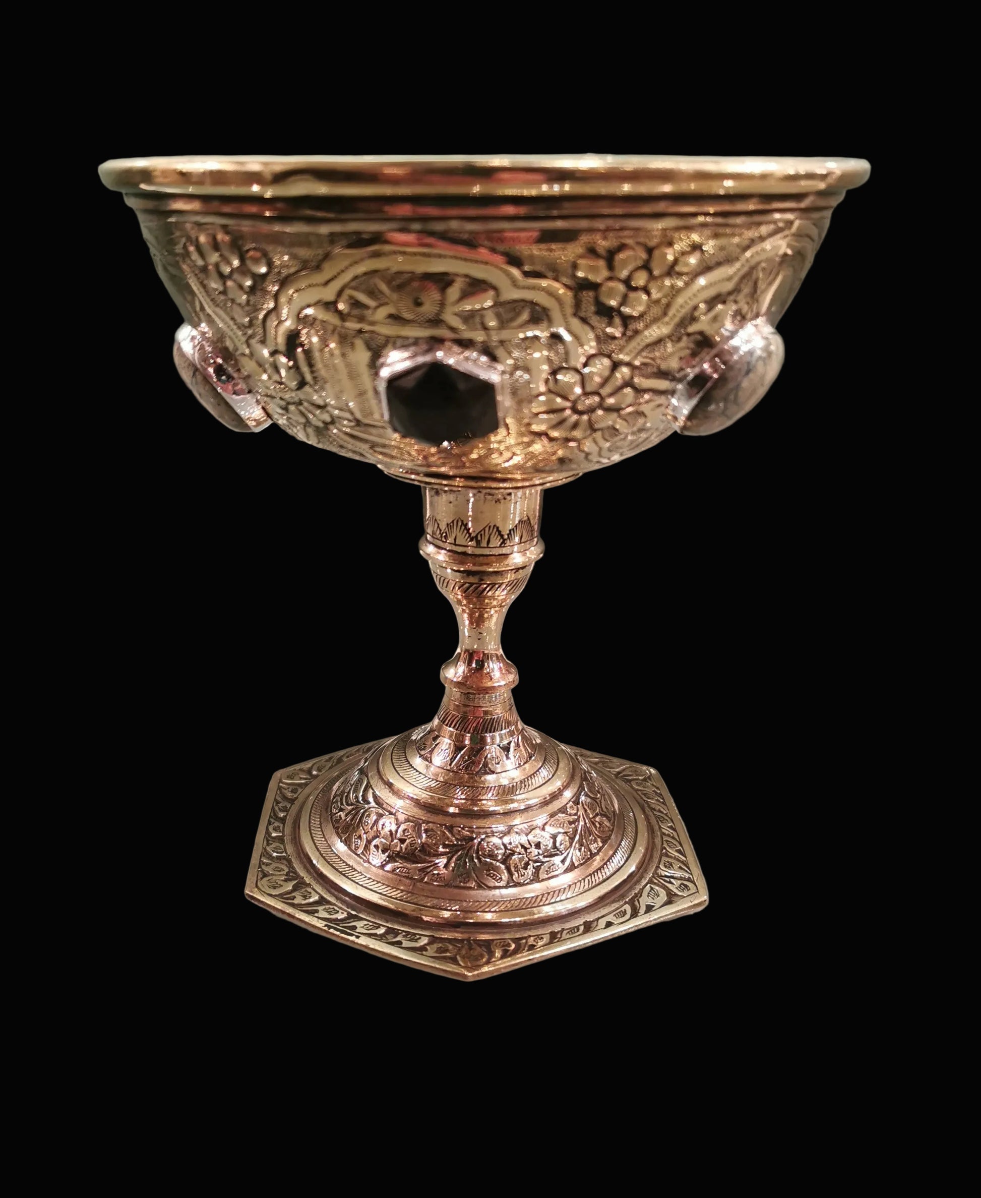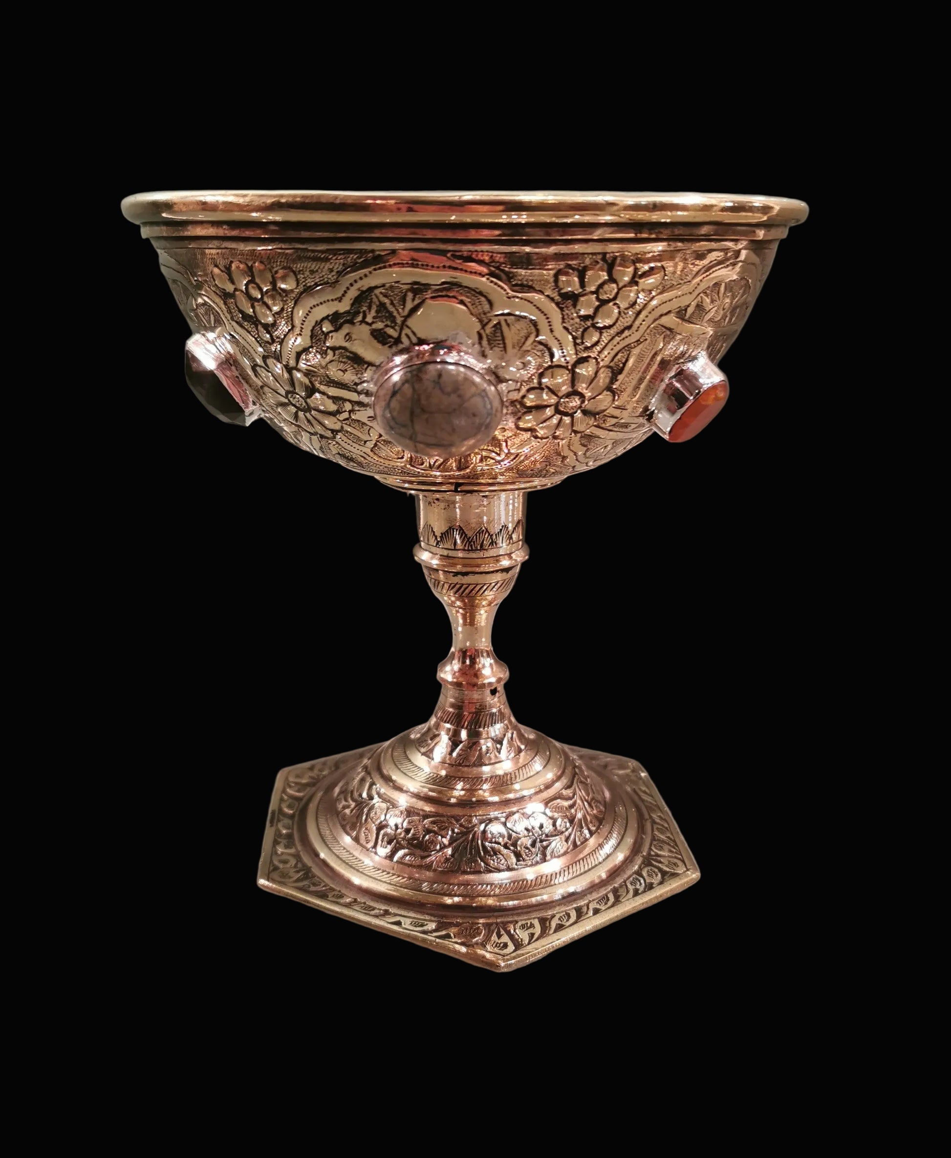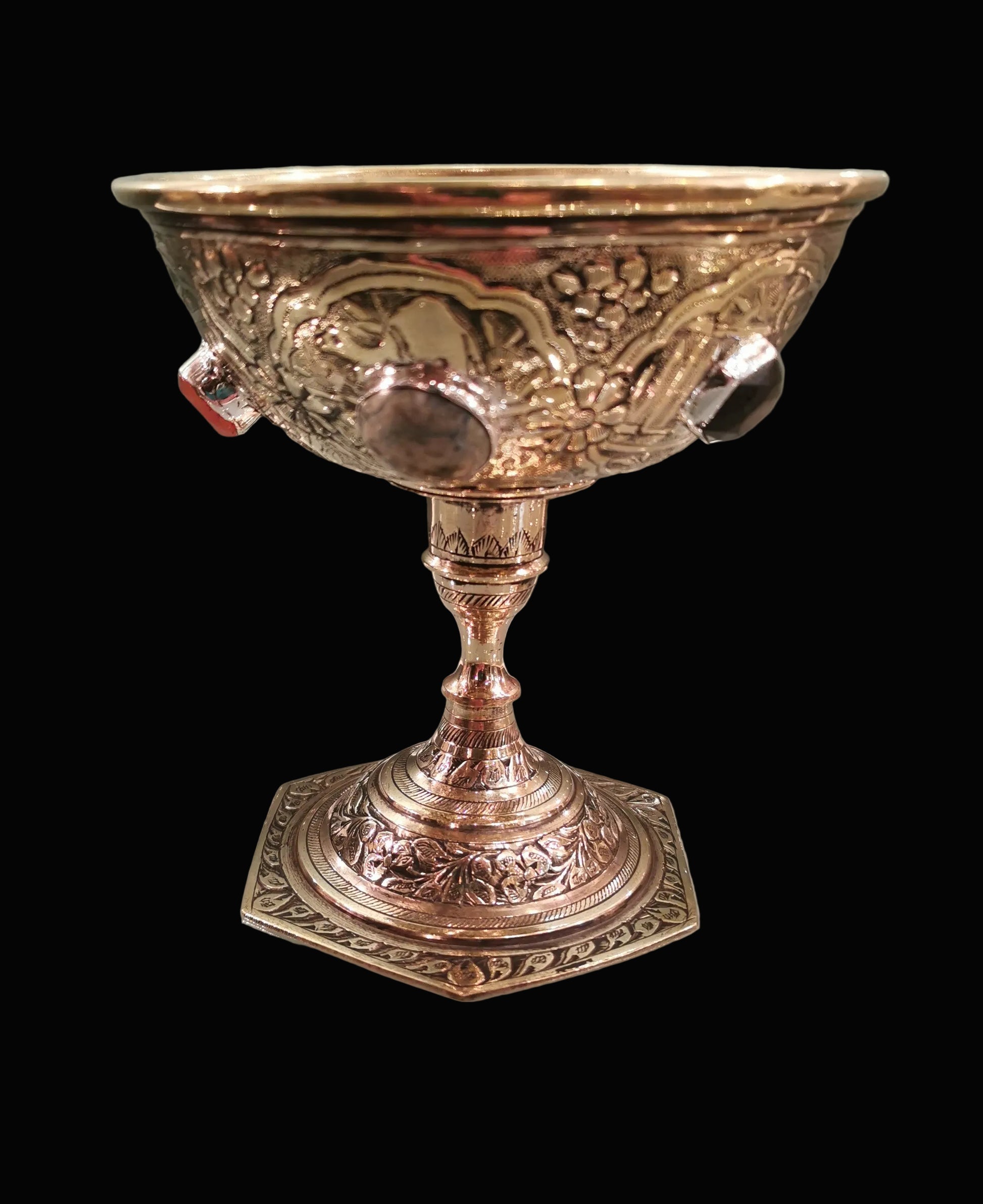Ref.CH0206 - Brass goblet with carnelian, labradorite, howlite , and amethyst gemstones.