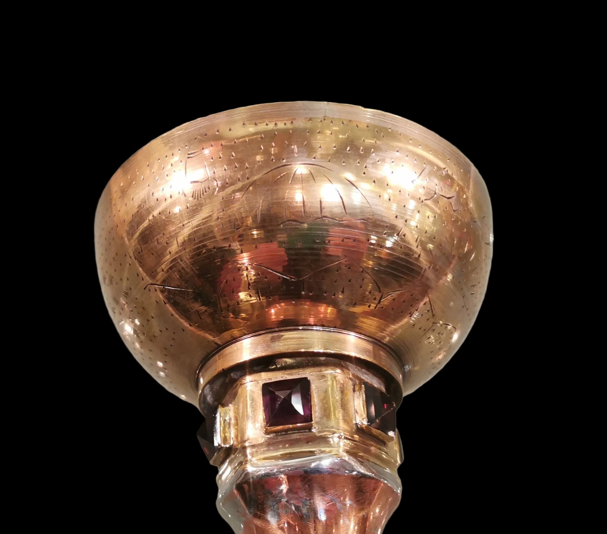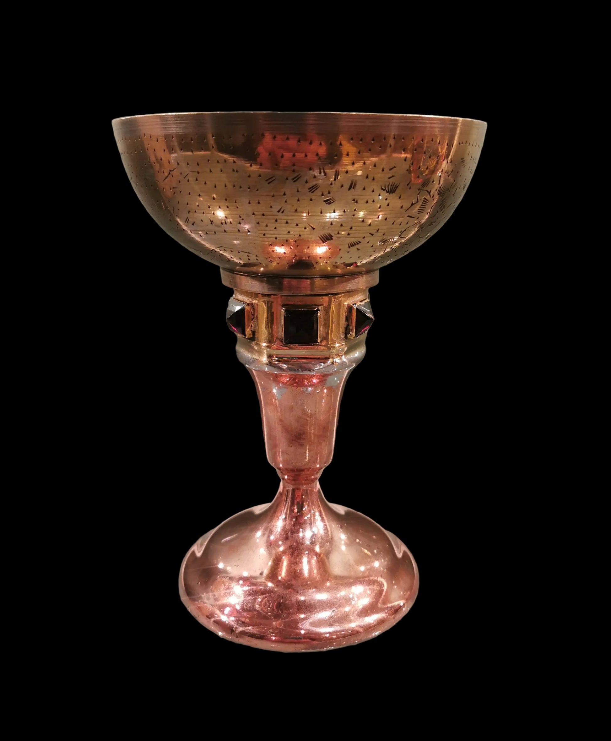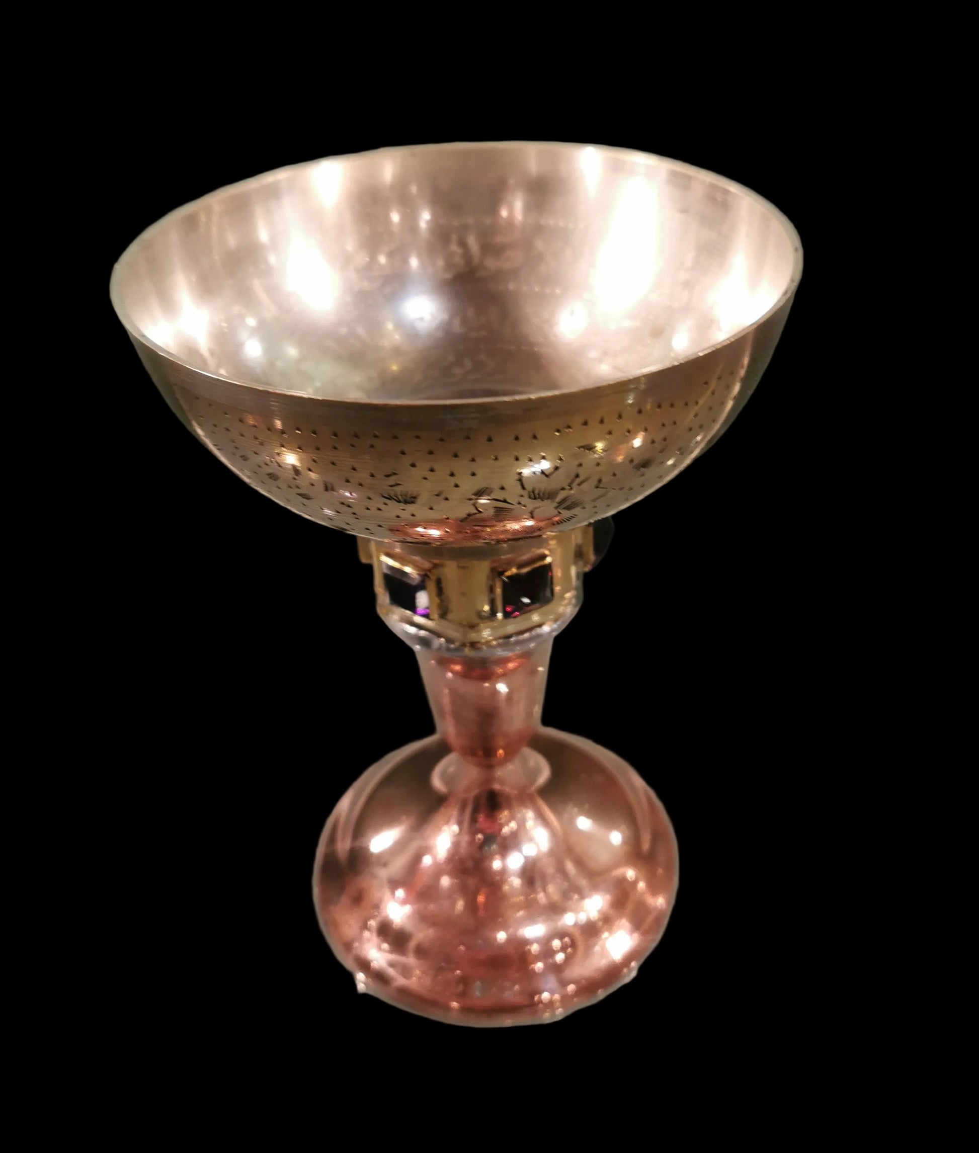 Ref.CH0207 - Brass/copper goblet with amethyst, and garnet gemstones.