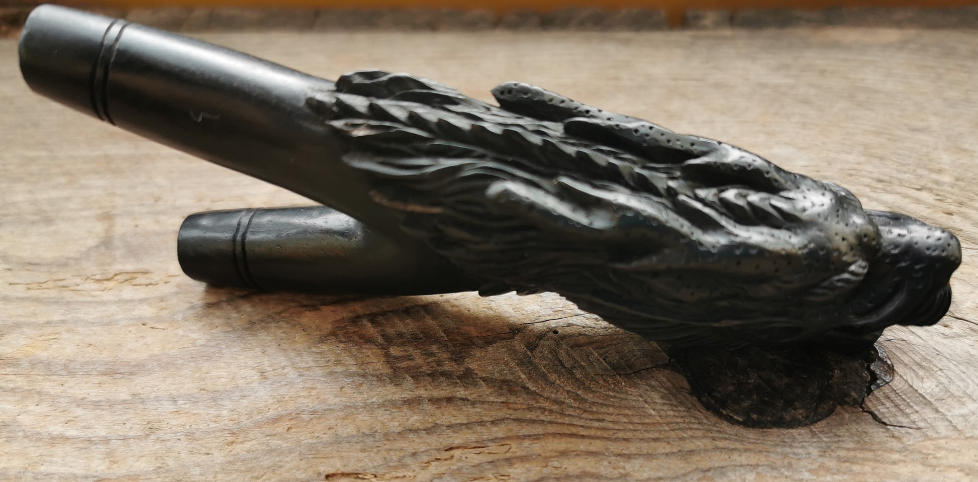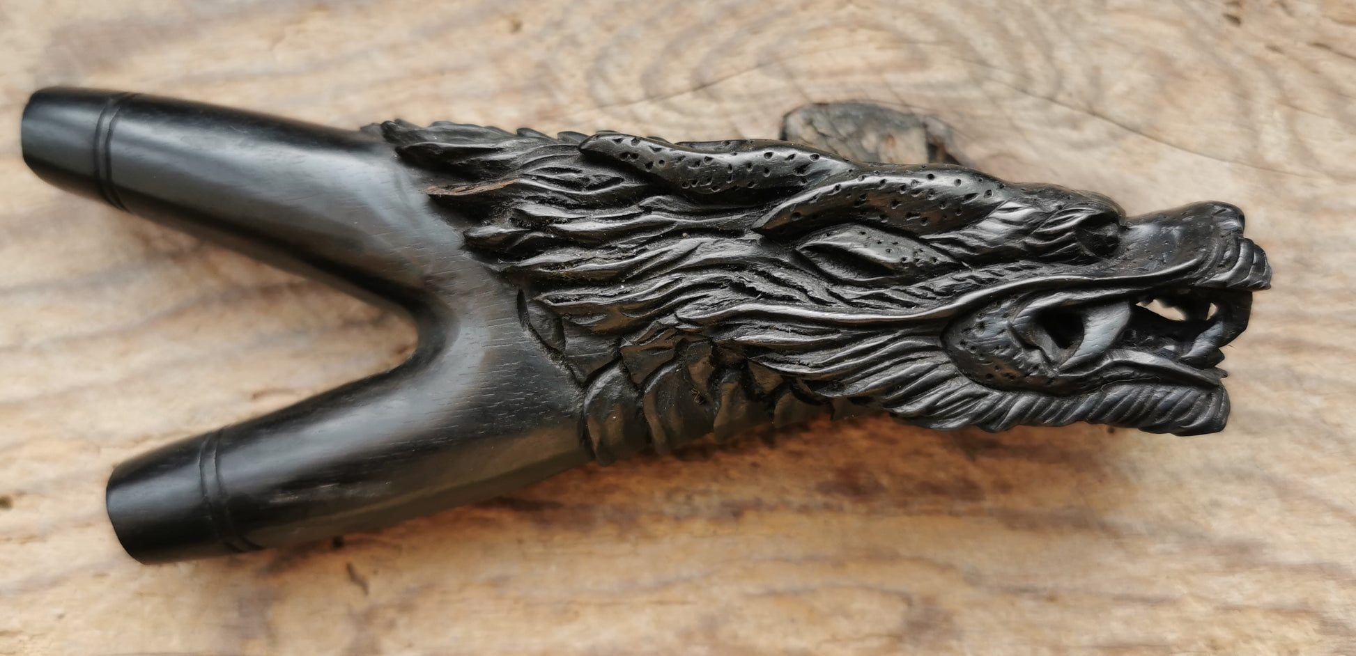 Ref.CR0106 - Dragon decorated iron wood snort pipe.