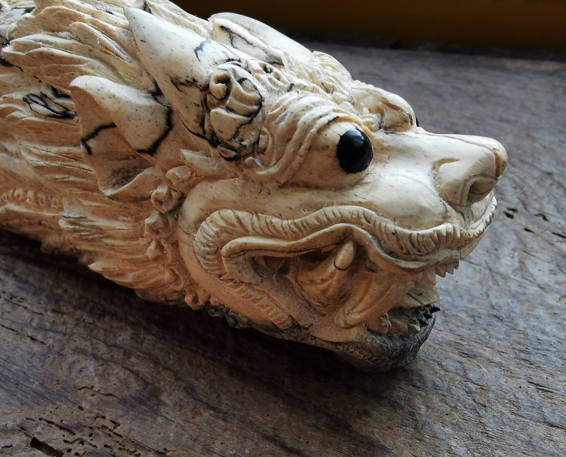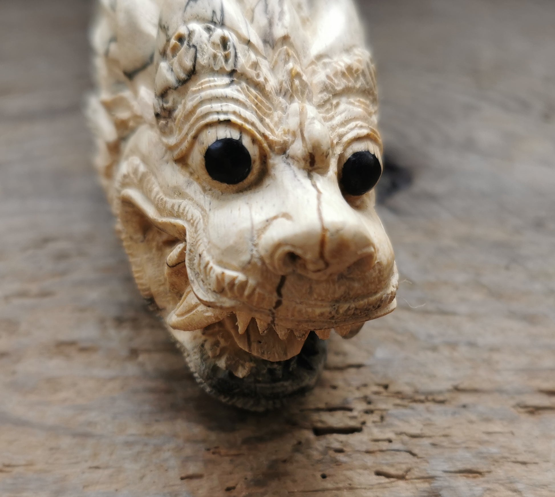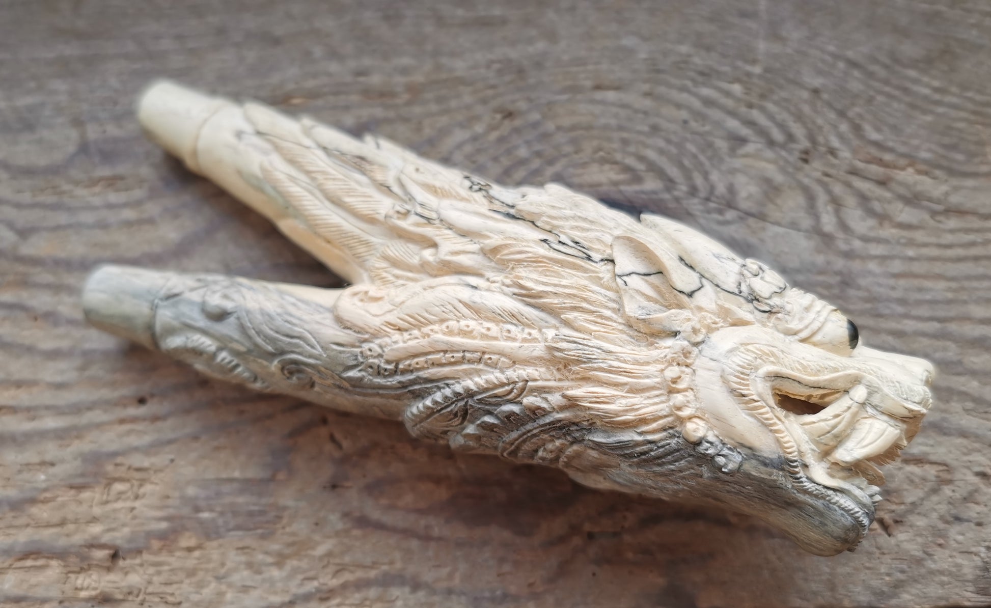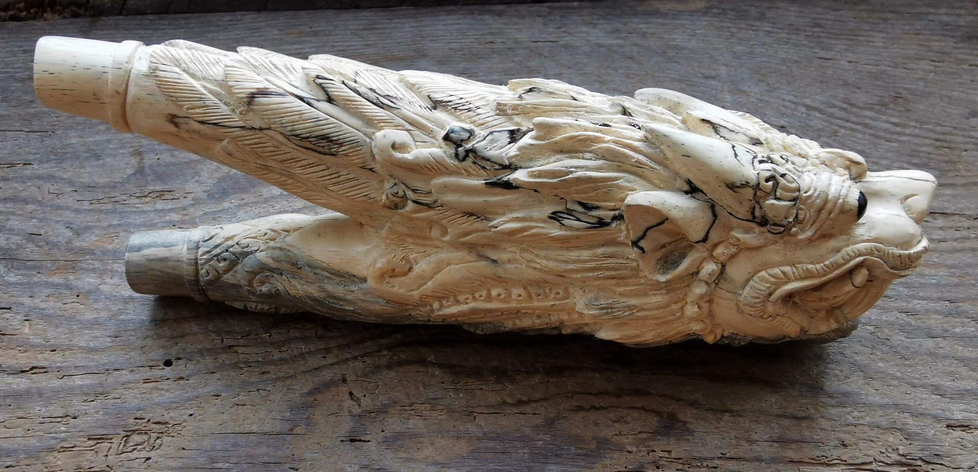 Ref.CR0107 - Dragon decorated spalted wood snort pipe.