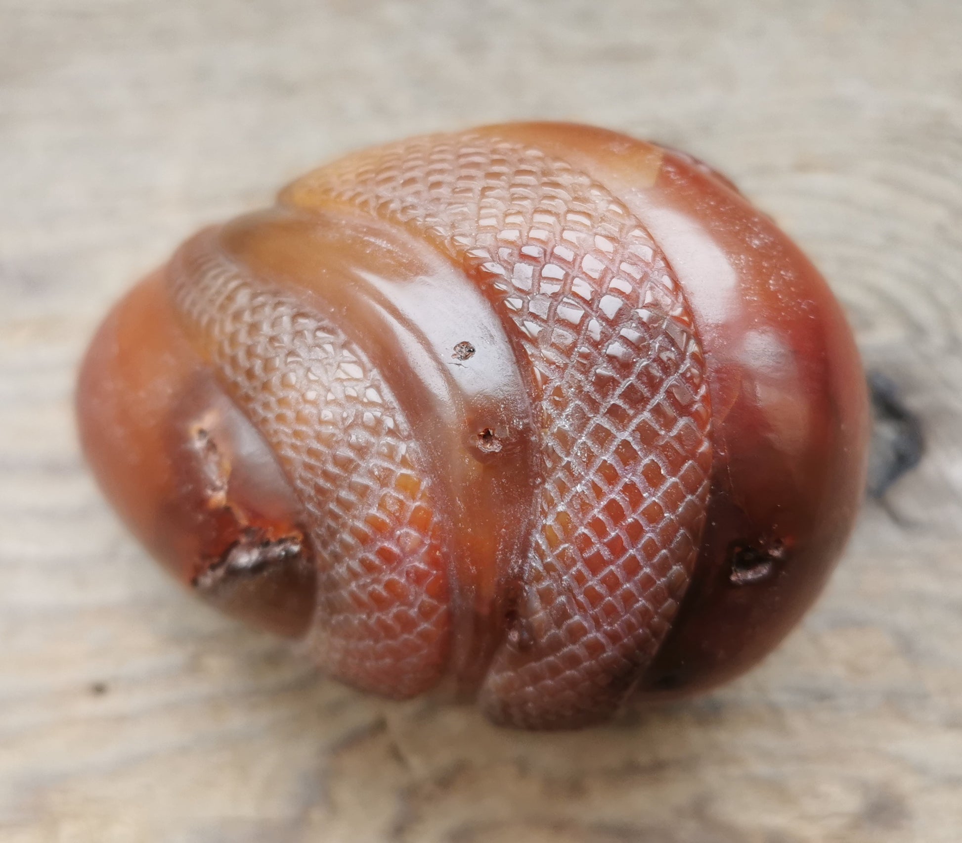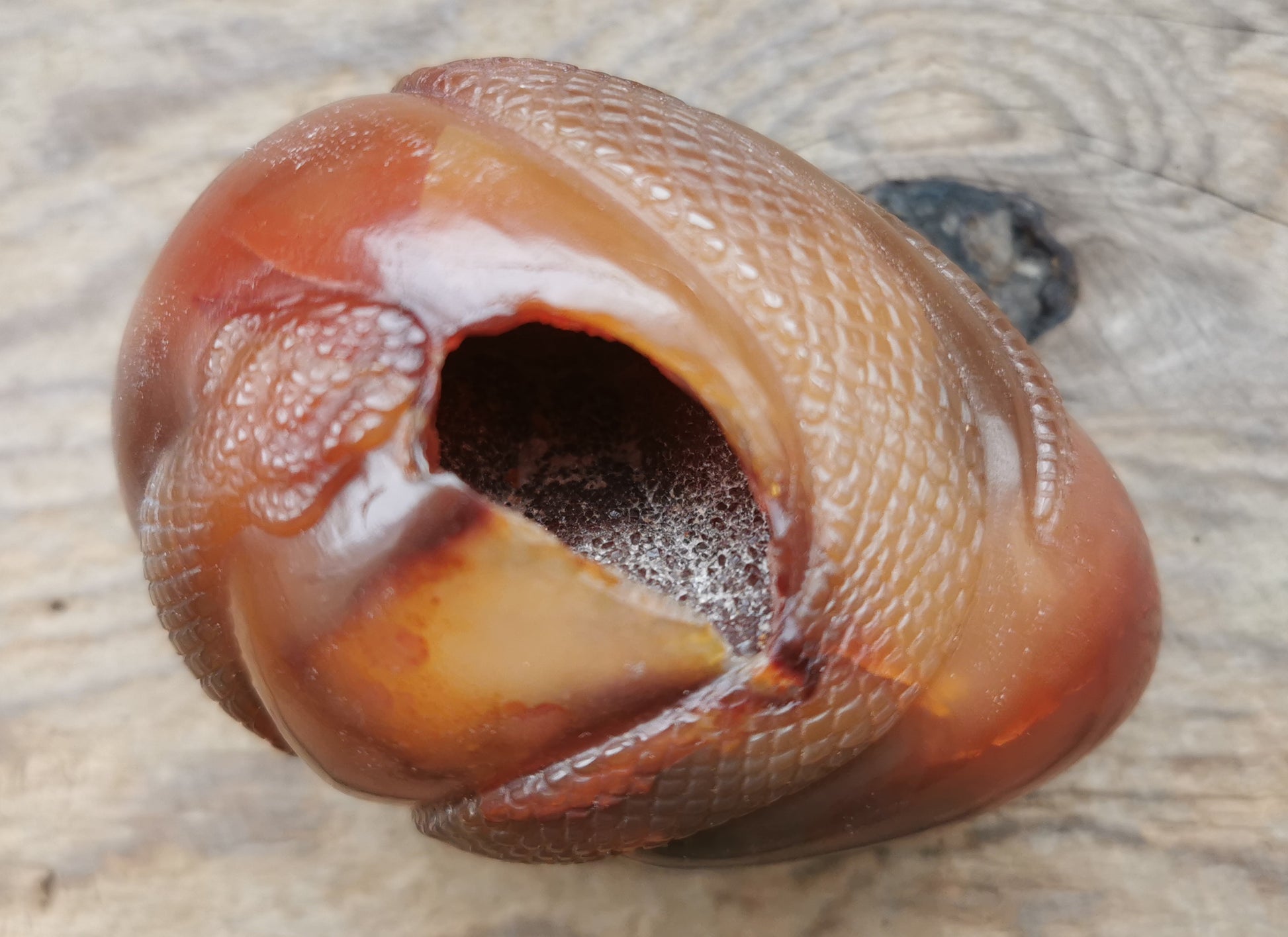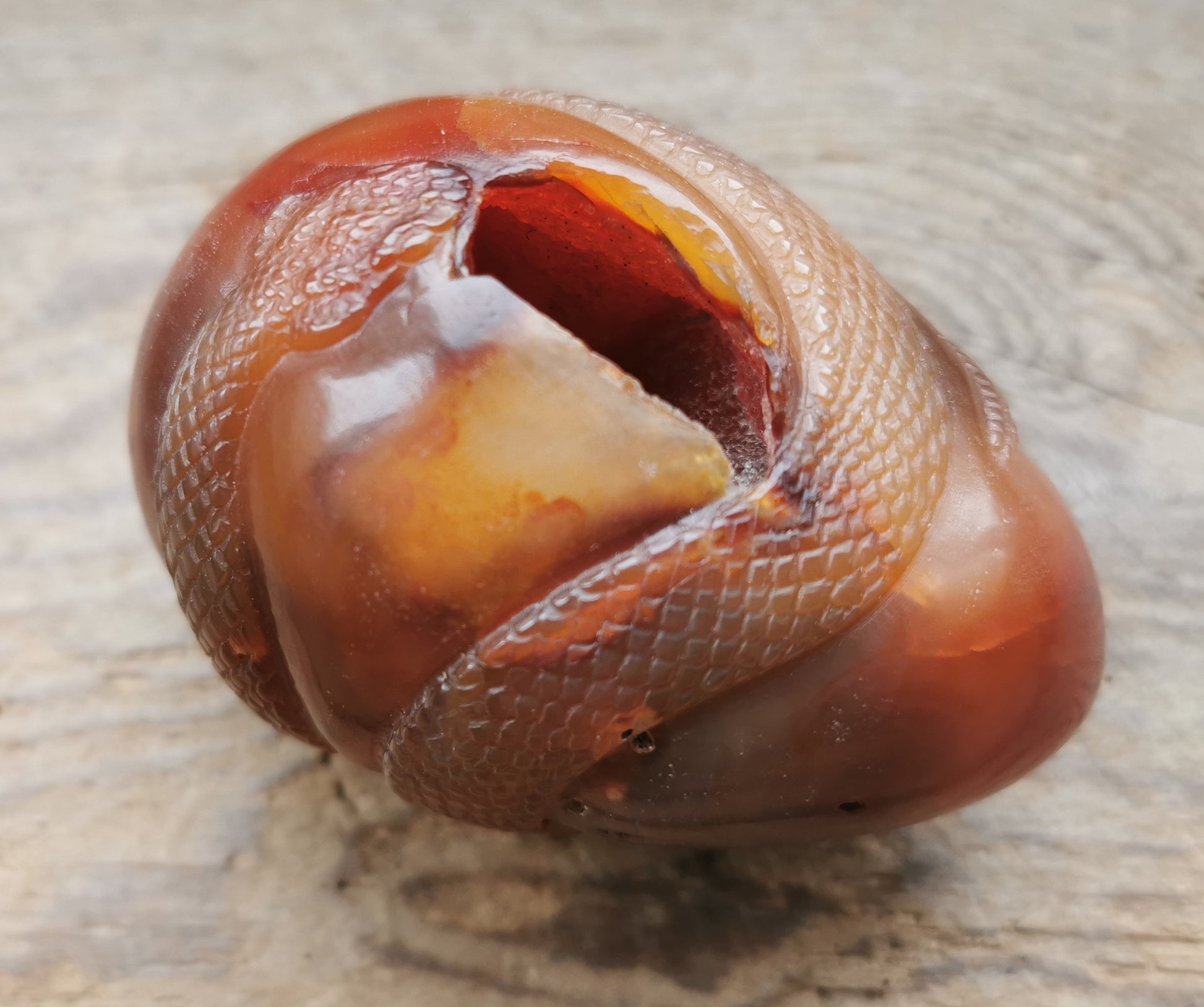 Ref.CR0119 - Druzy carnelian gemstone carved snake & egg.