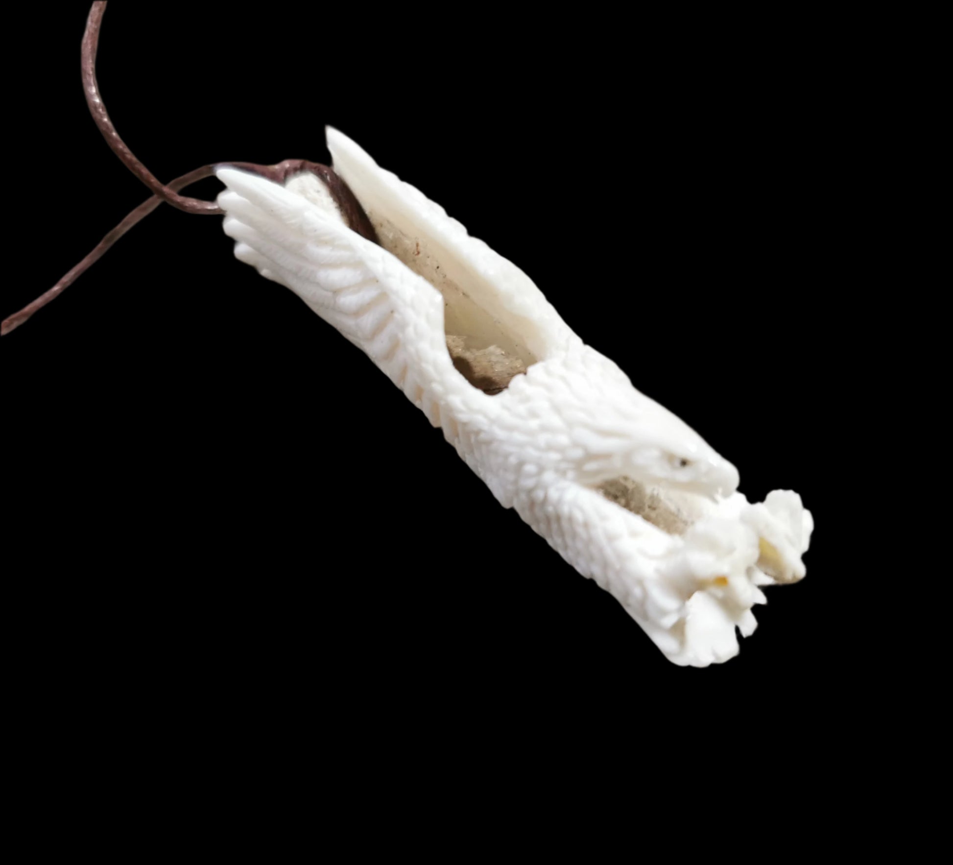 Ref.CR0129 - Ecologically sourced deer horn carved eagle pendant.