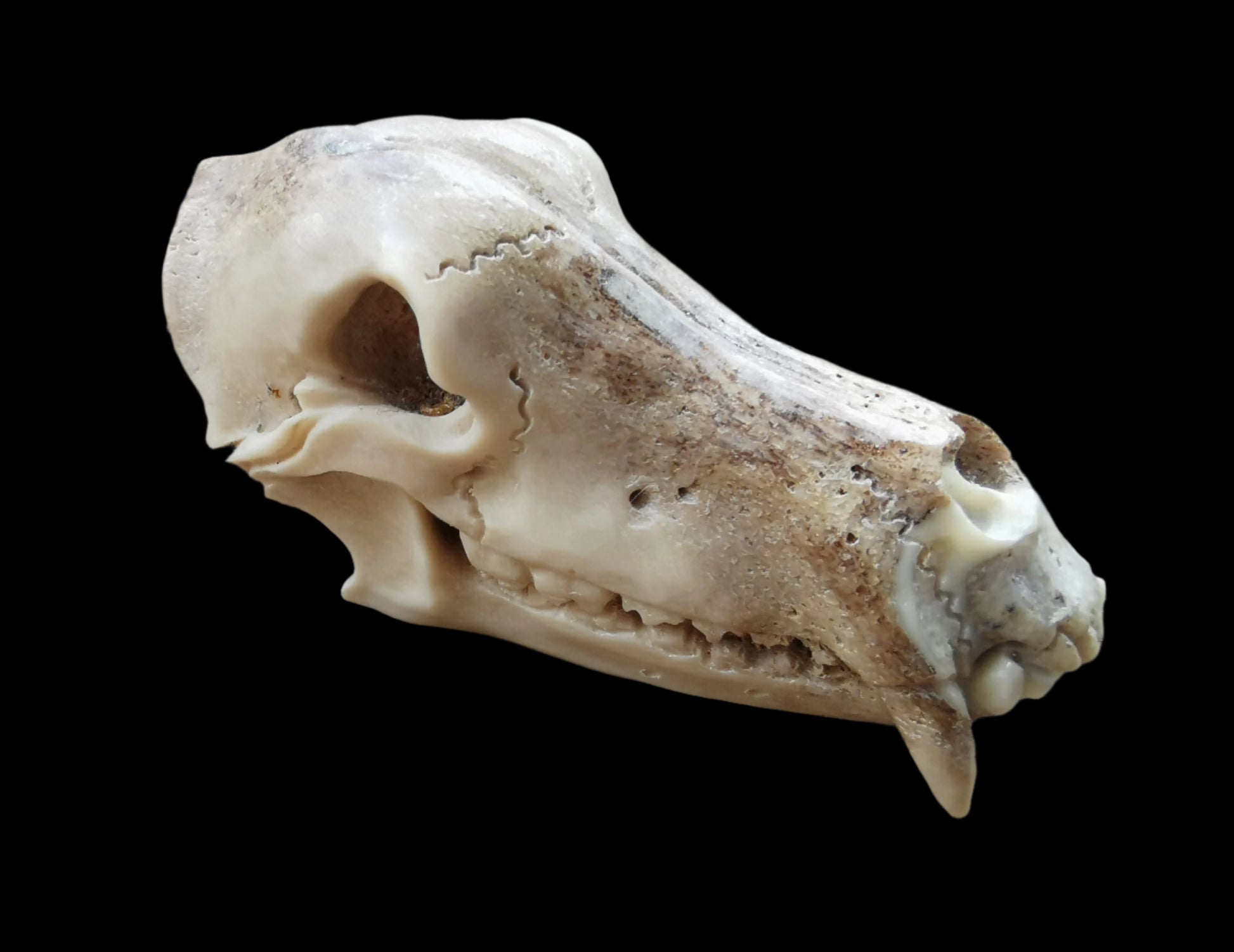 Ref.CR0135 - Ecologically sourced deer horn carved wolf skull.