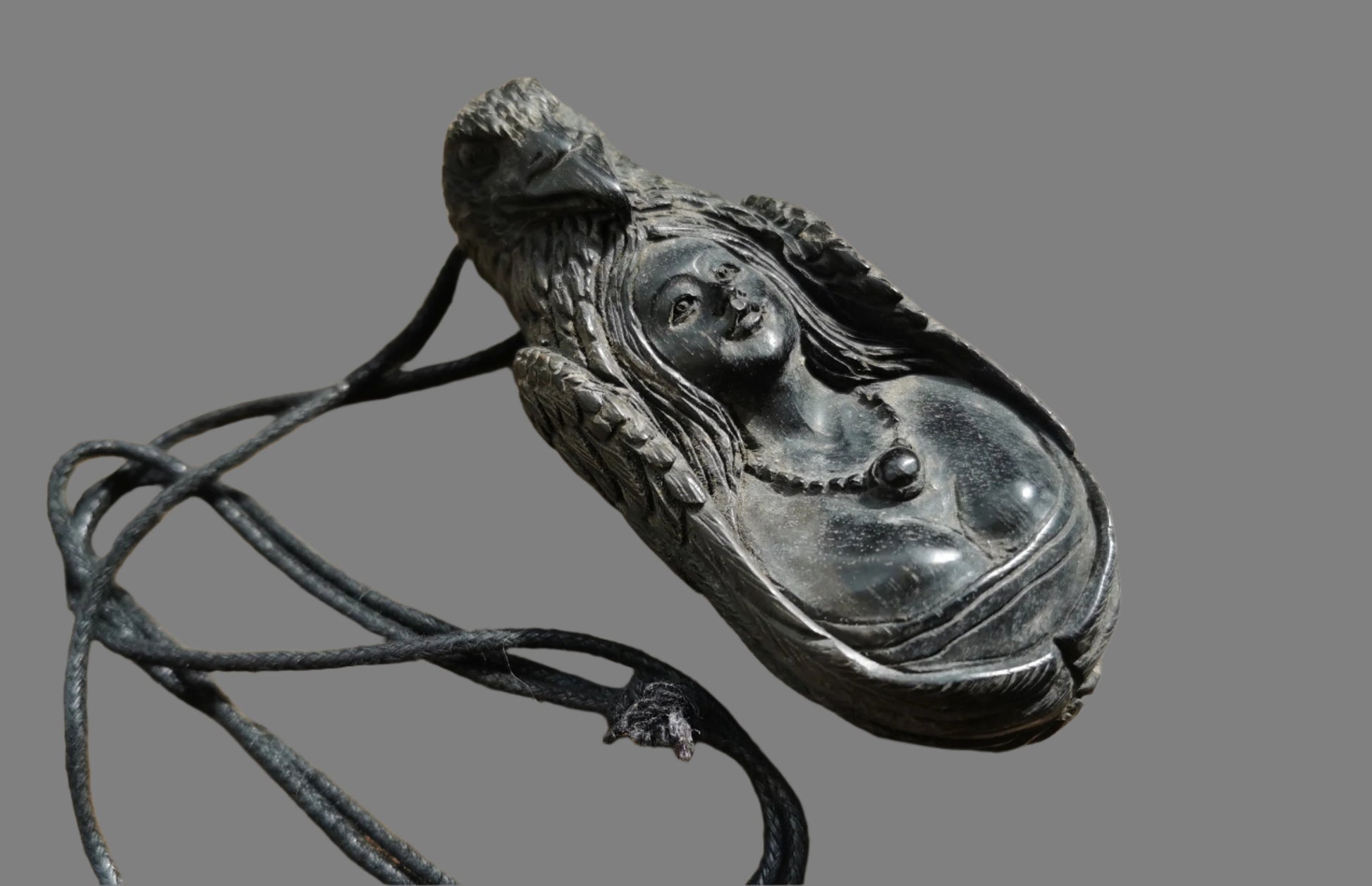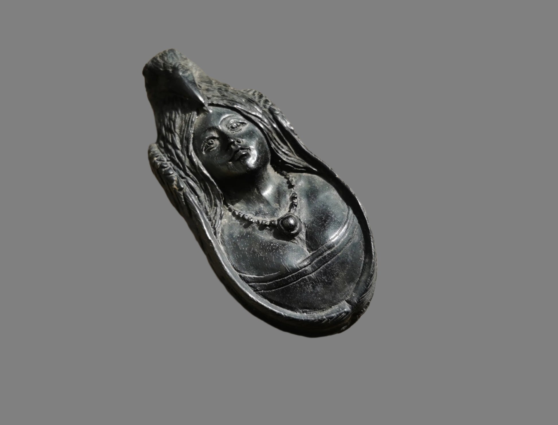 Ref.CR0144 - Pendant with arang wood carved Indian woman w/ animal totem