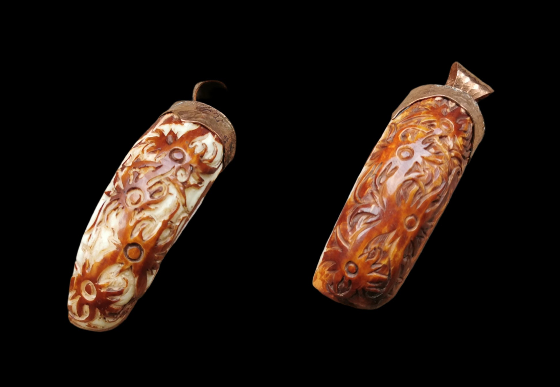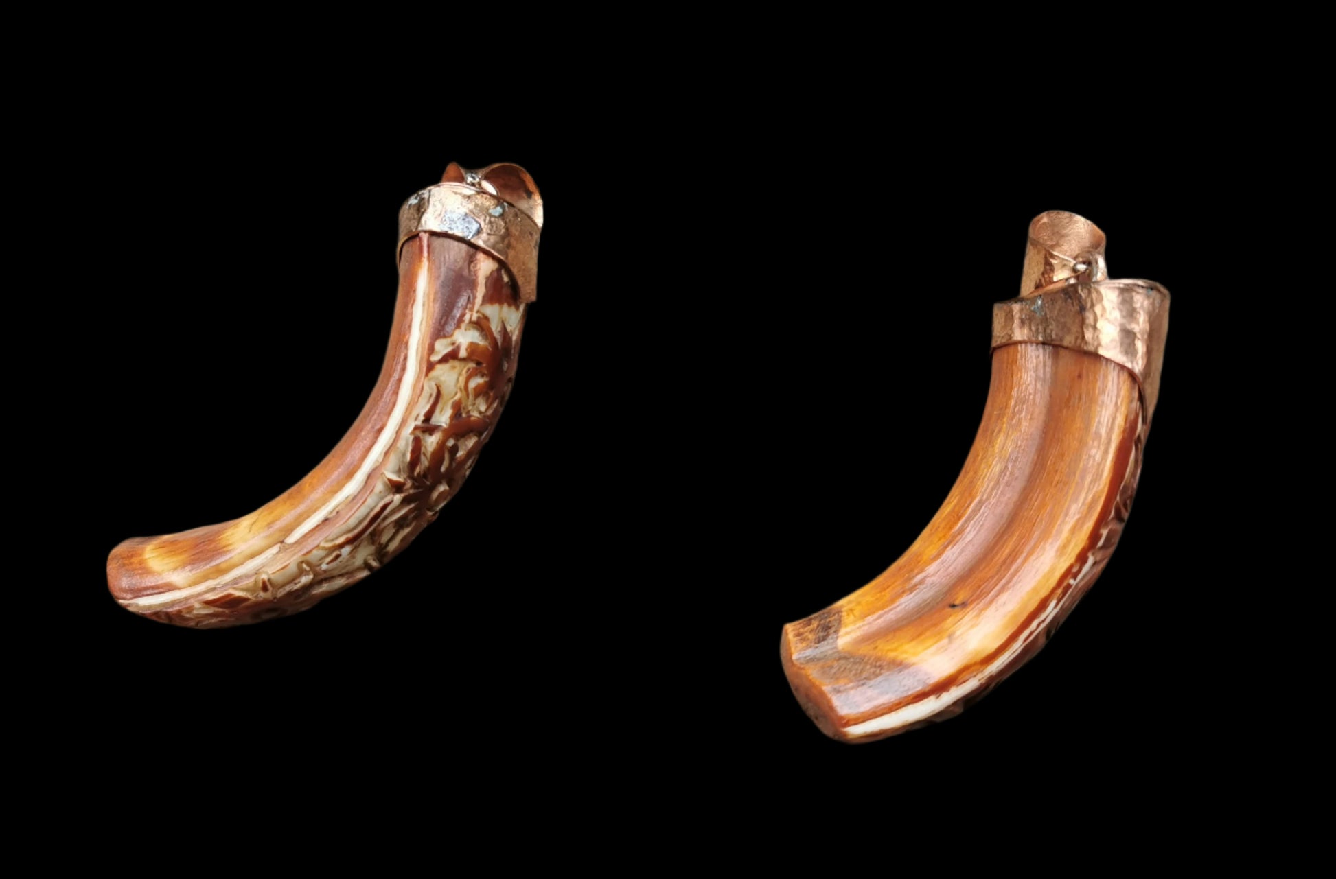Ref.CR0148 - Boar tooth pendant in copper setting with Borneo design.