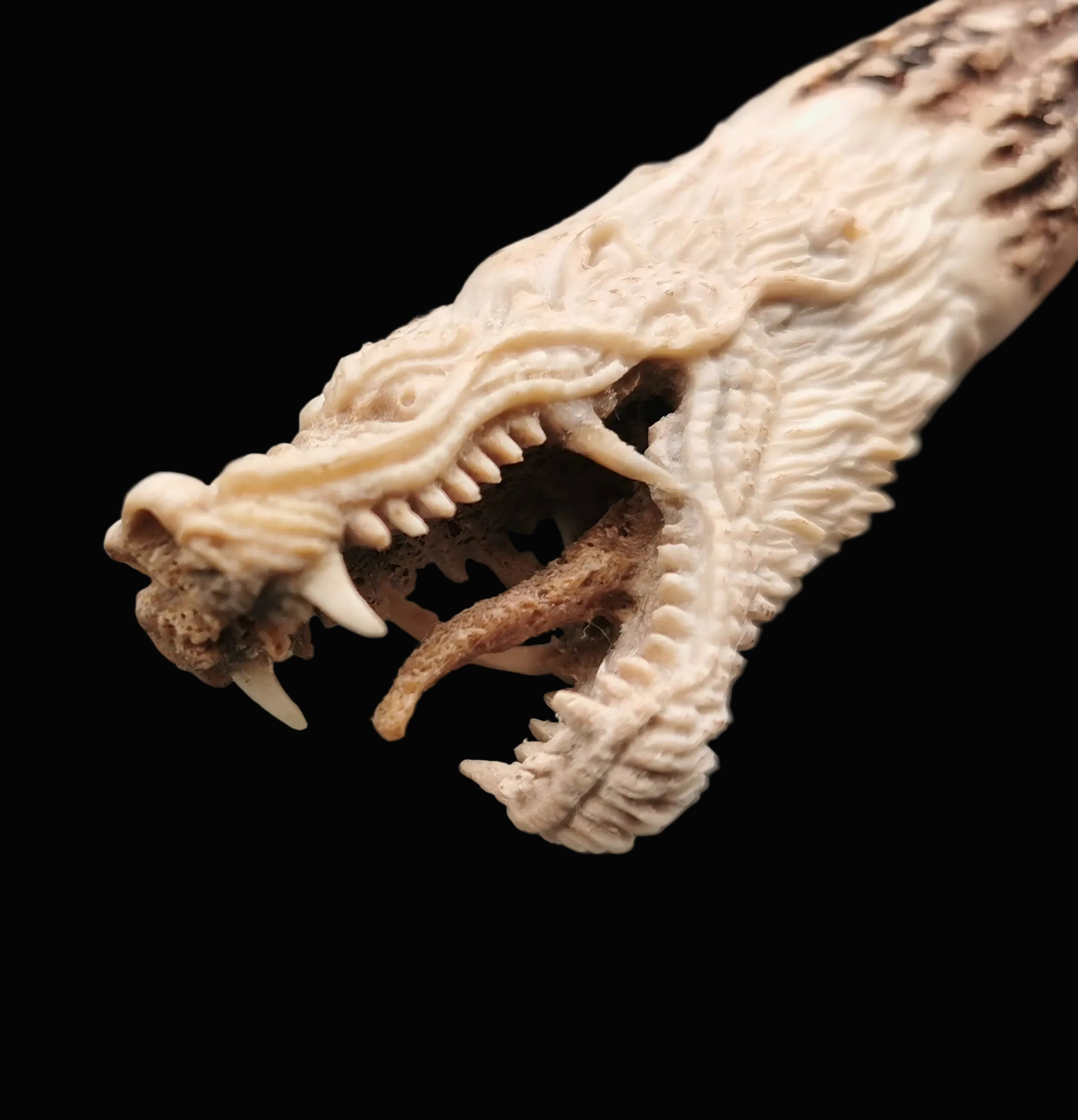 Ref.CR0164 - Ecologically sourced deer horn carved dragon.
