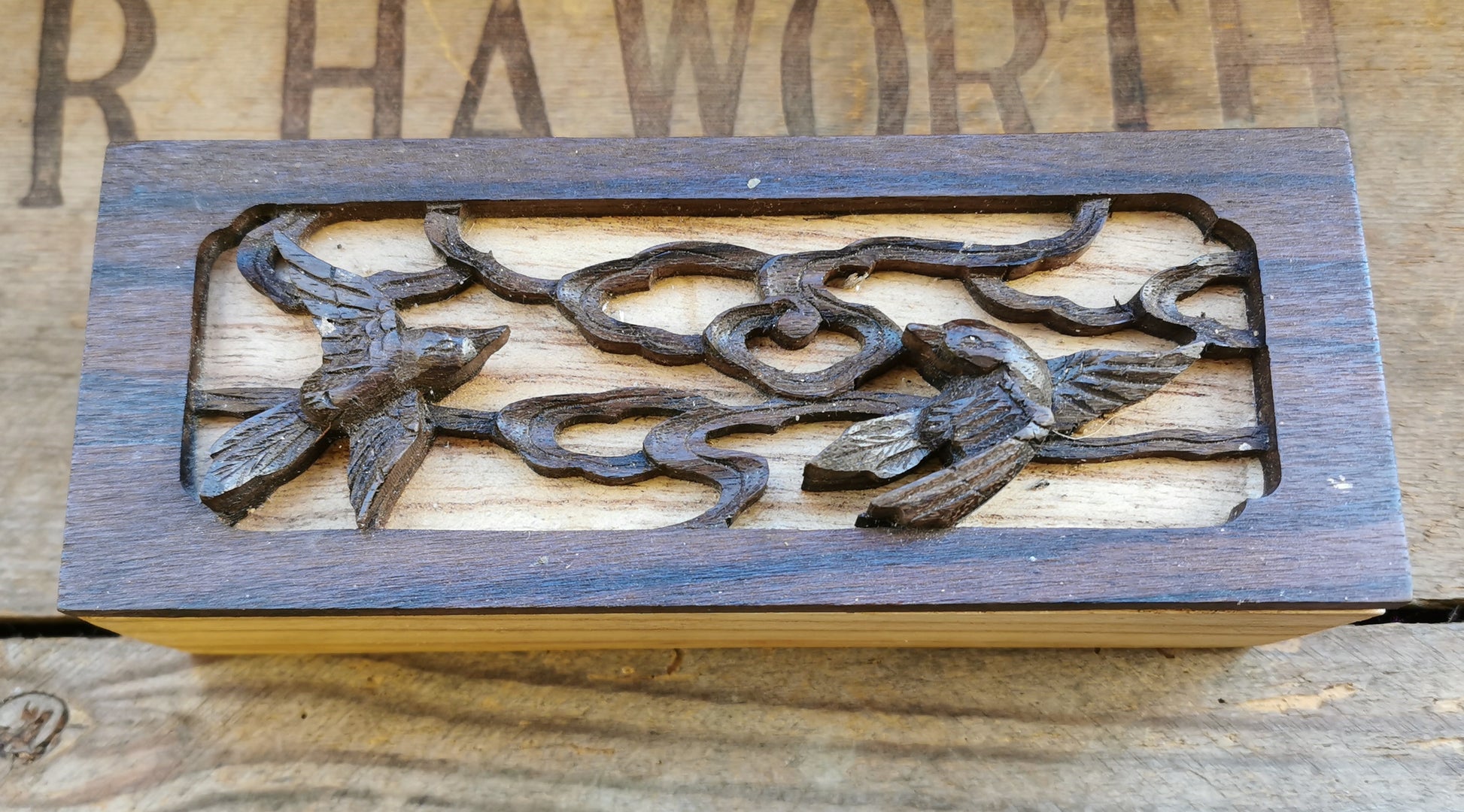 Ref.DV0032 - Box with birds motif made of mahogany & black sono woods.