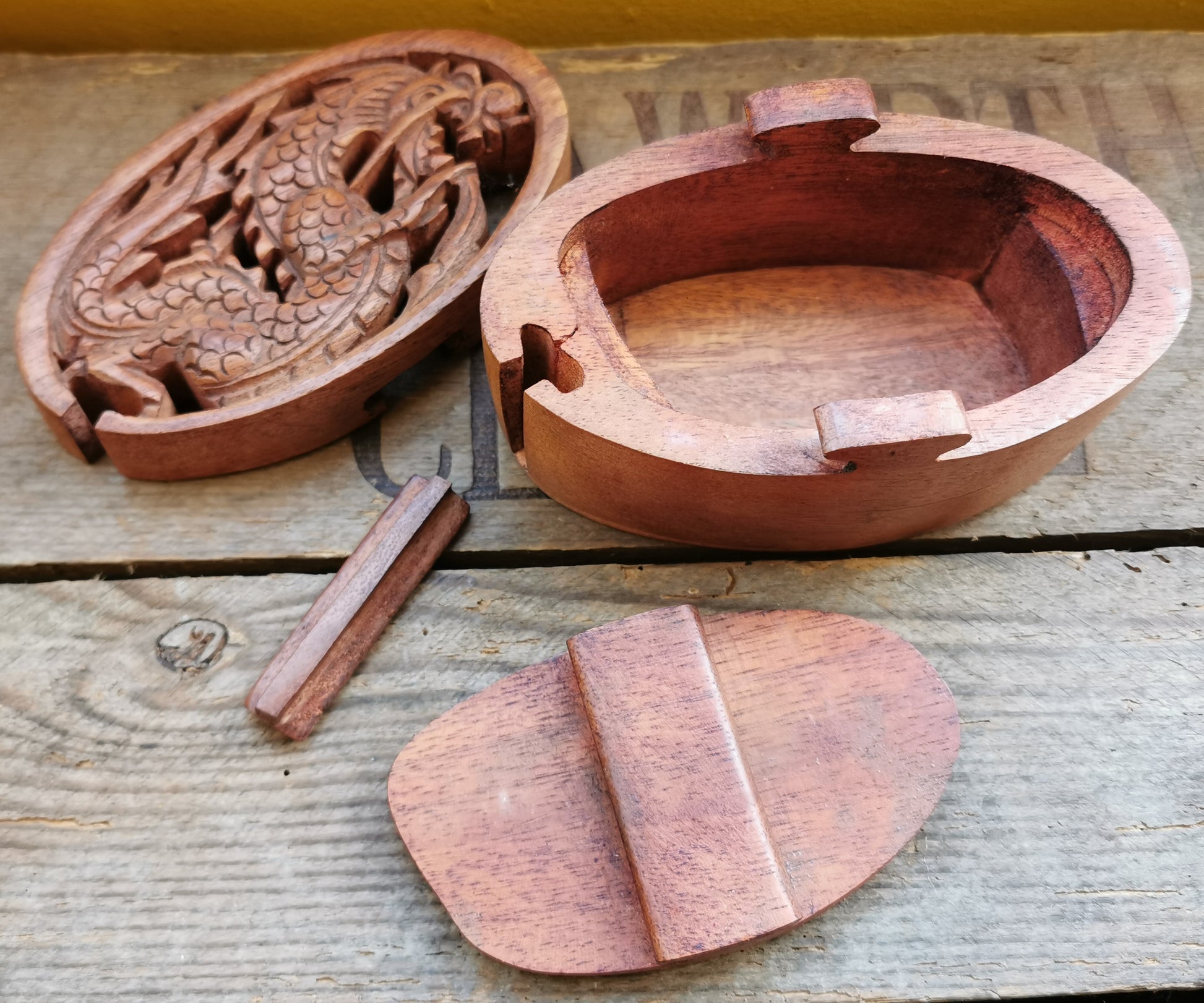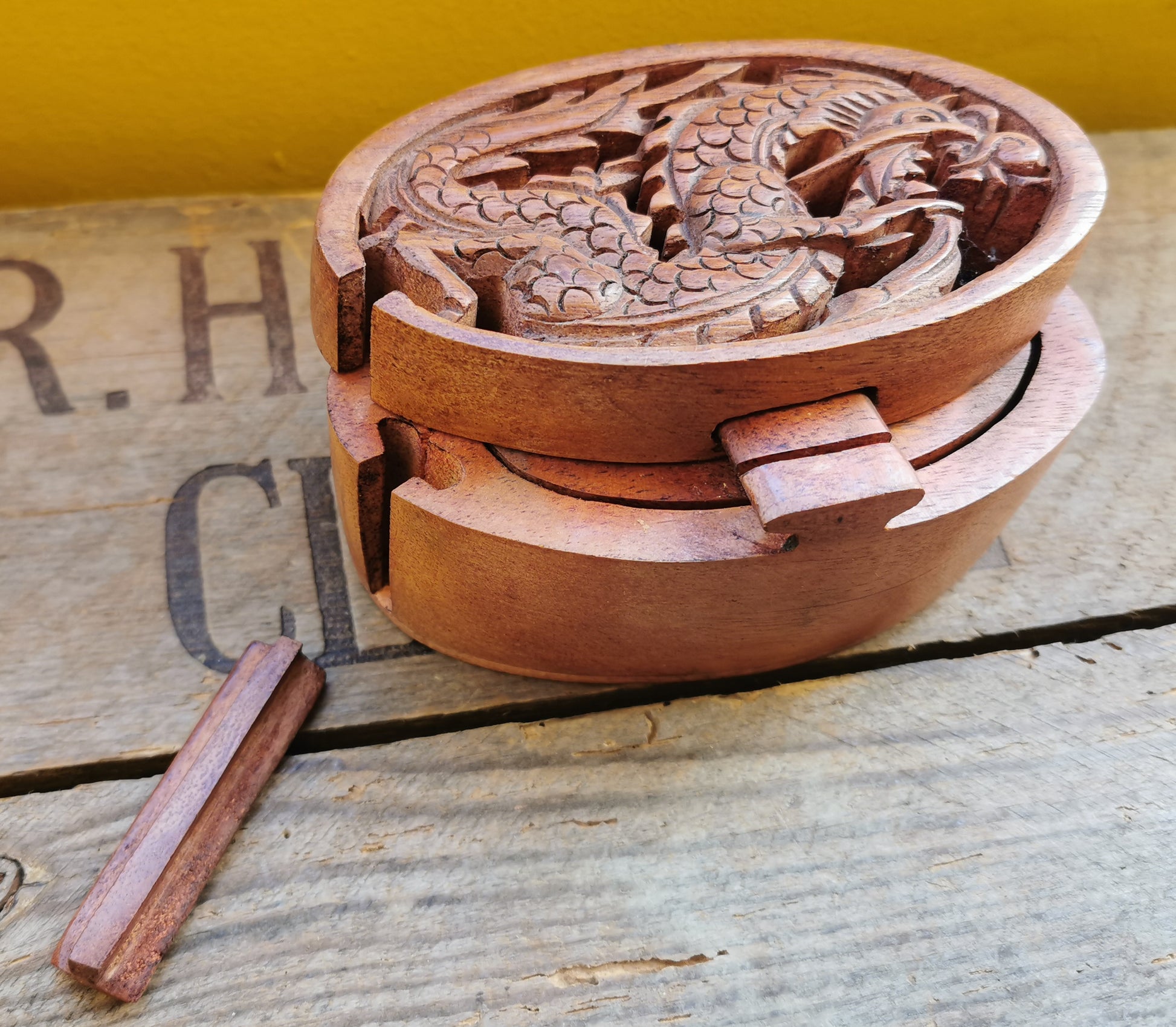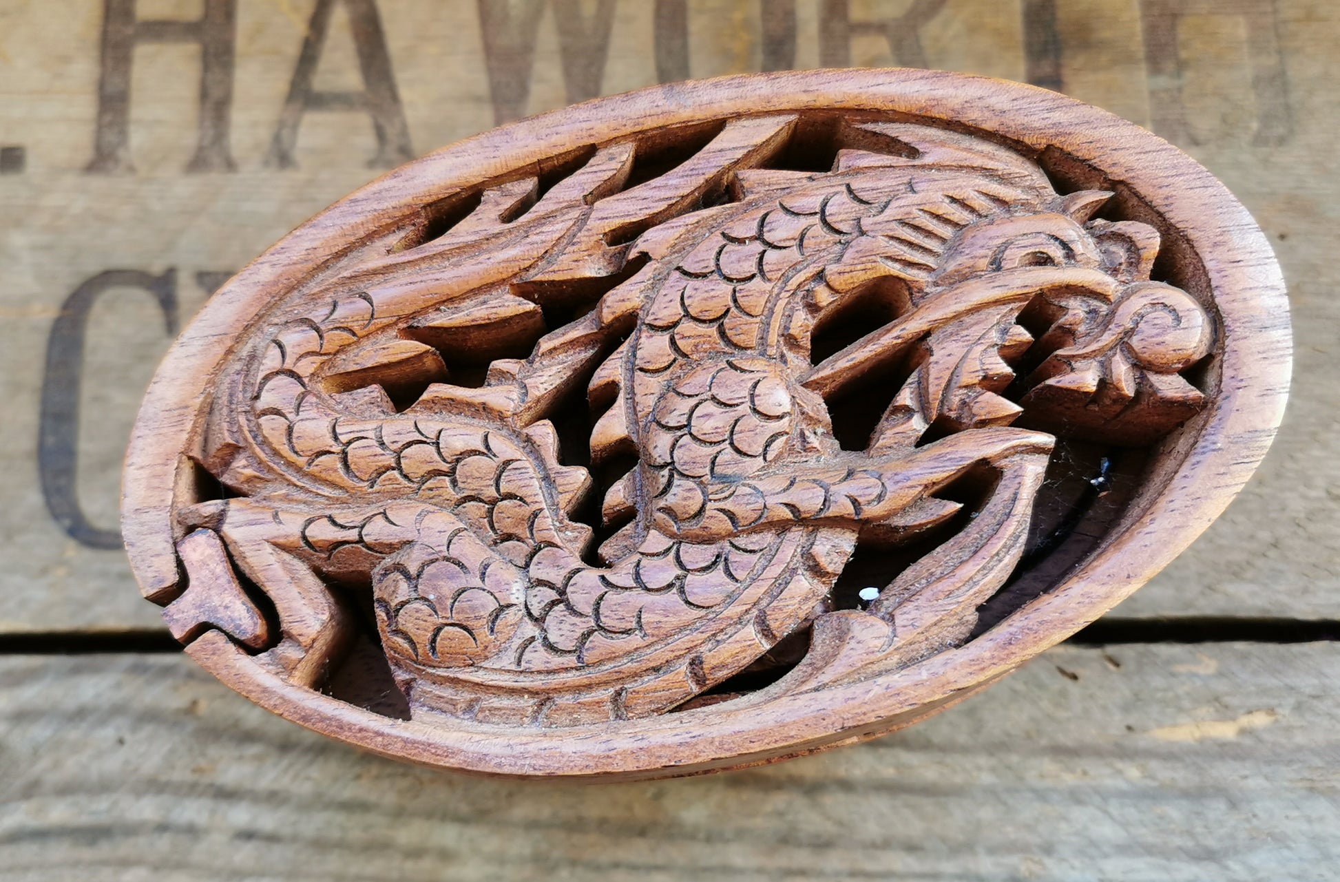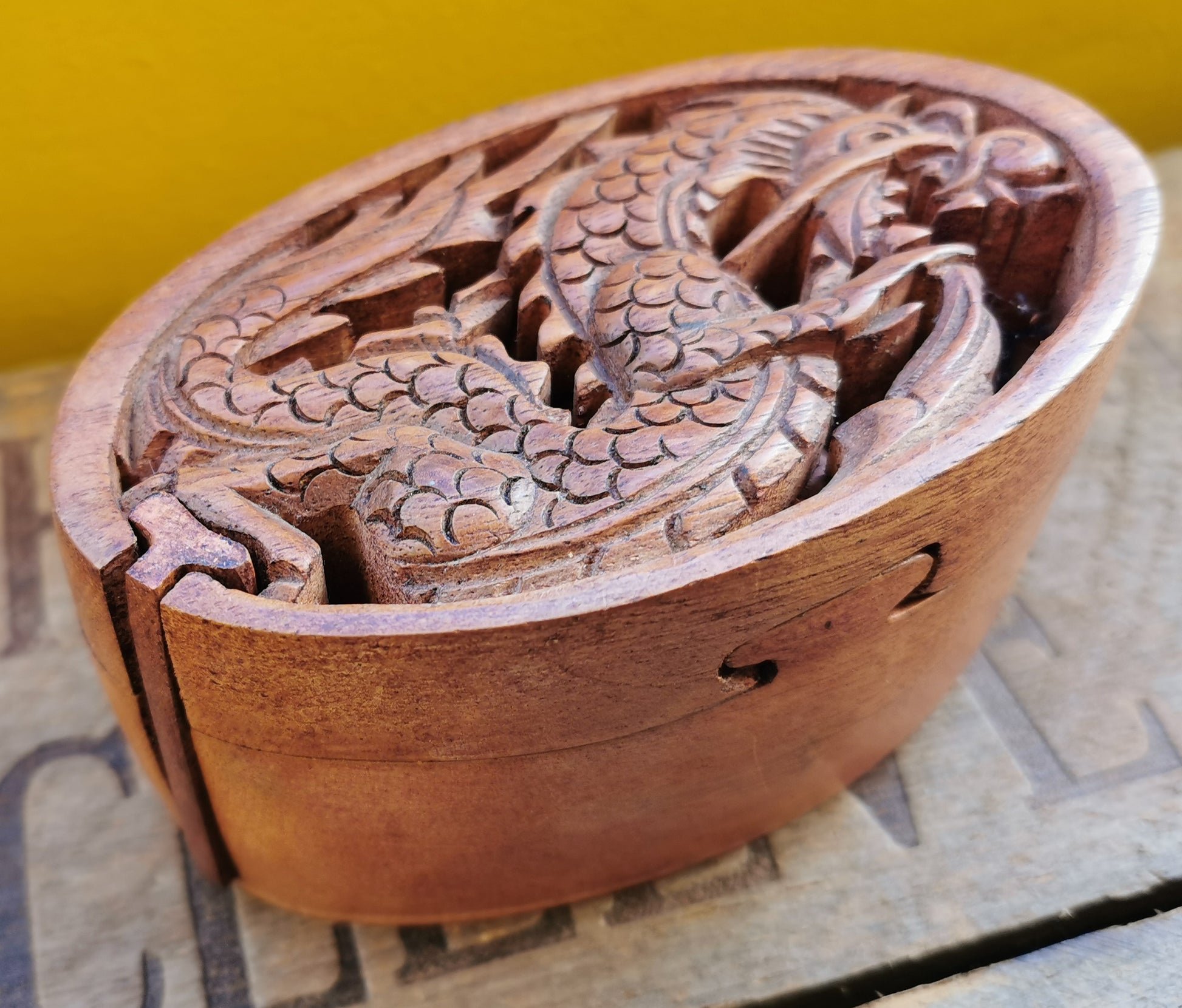 Ref.DV0033 - Box with dragon motif made of suar wood and wooden lock.