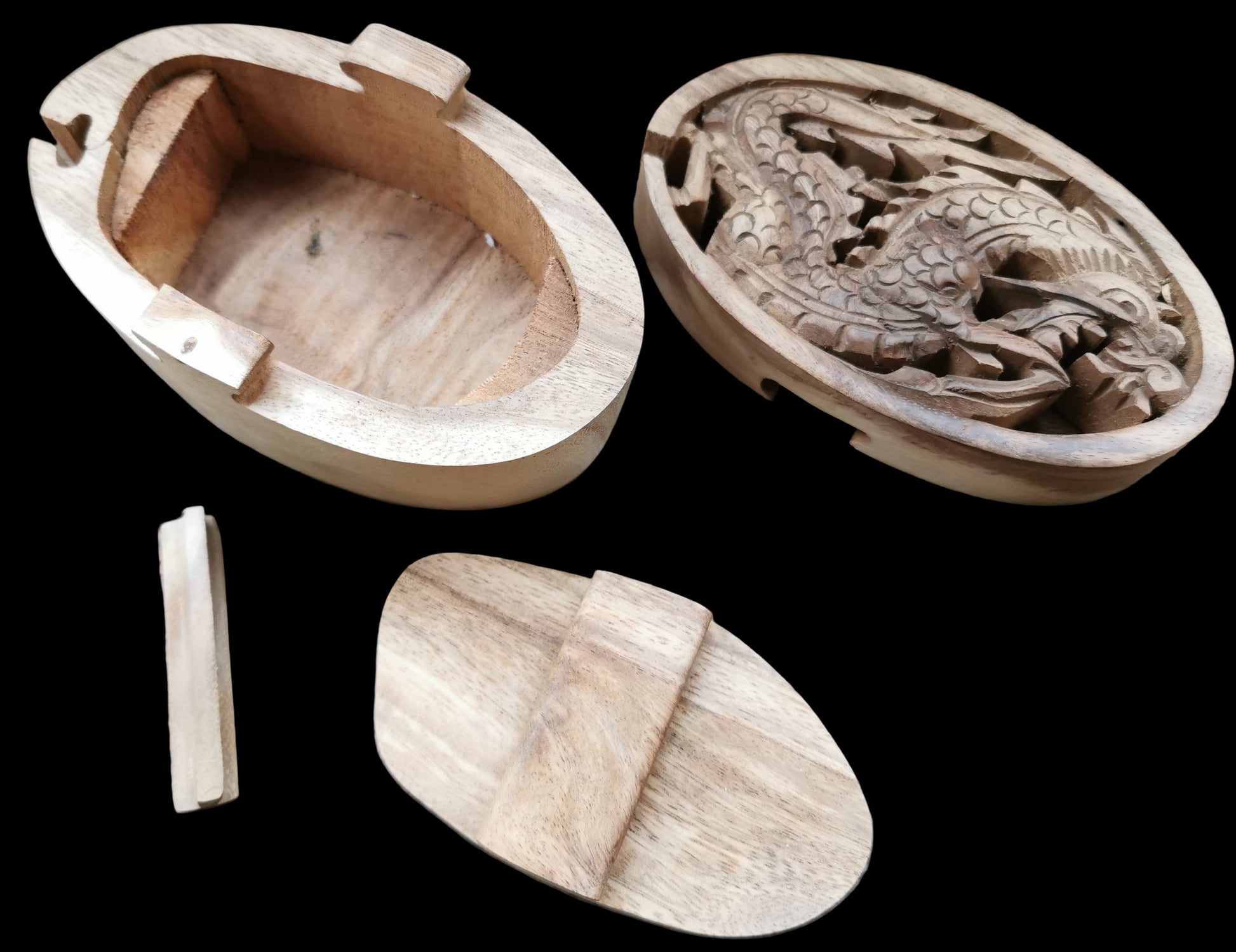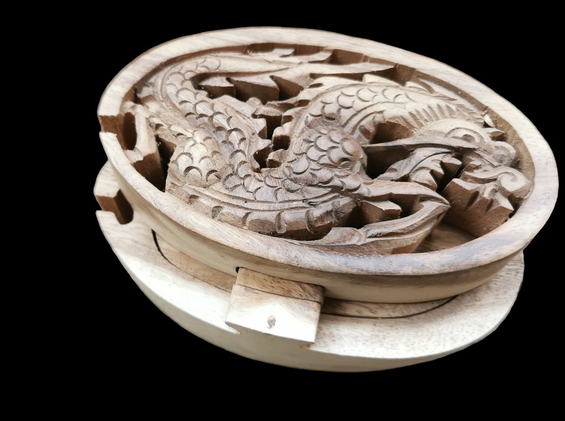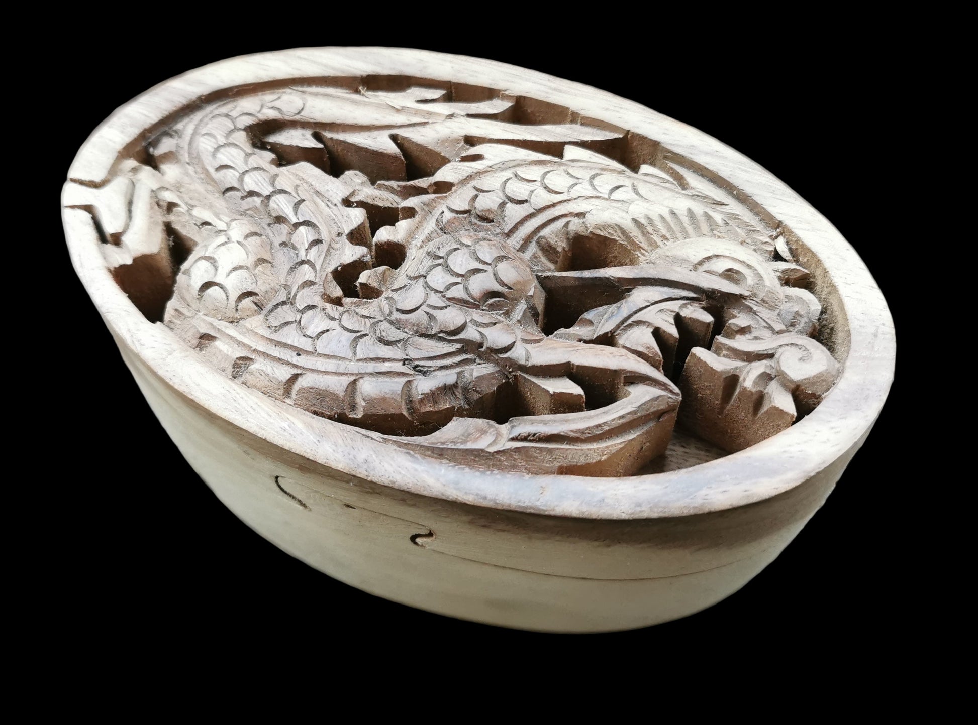 Ref.DV0034 - Box with dragon motif made of suar wood and wooden lock.