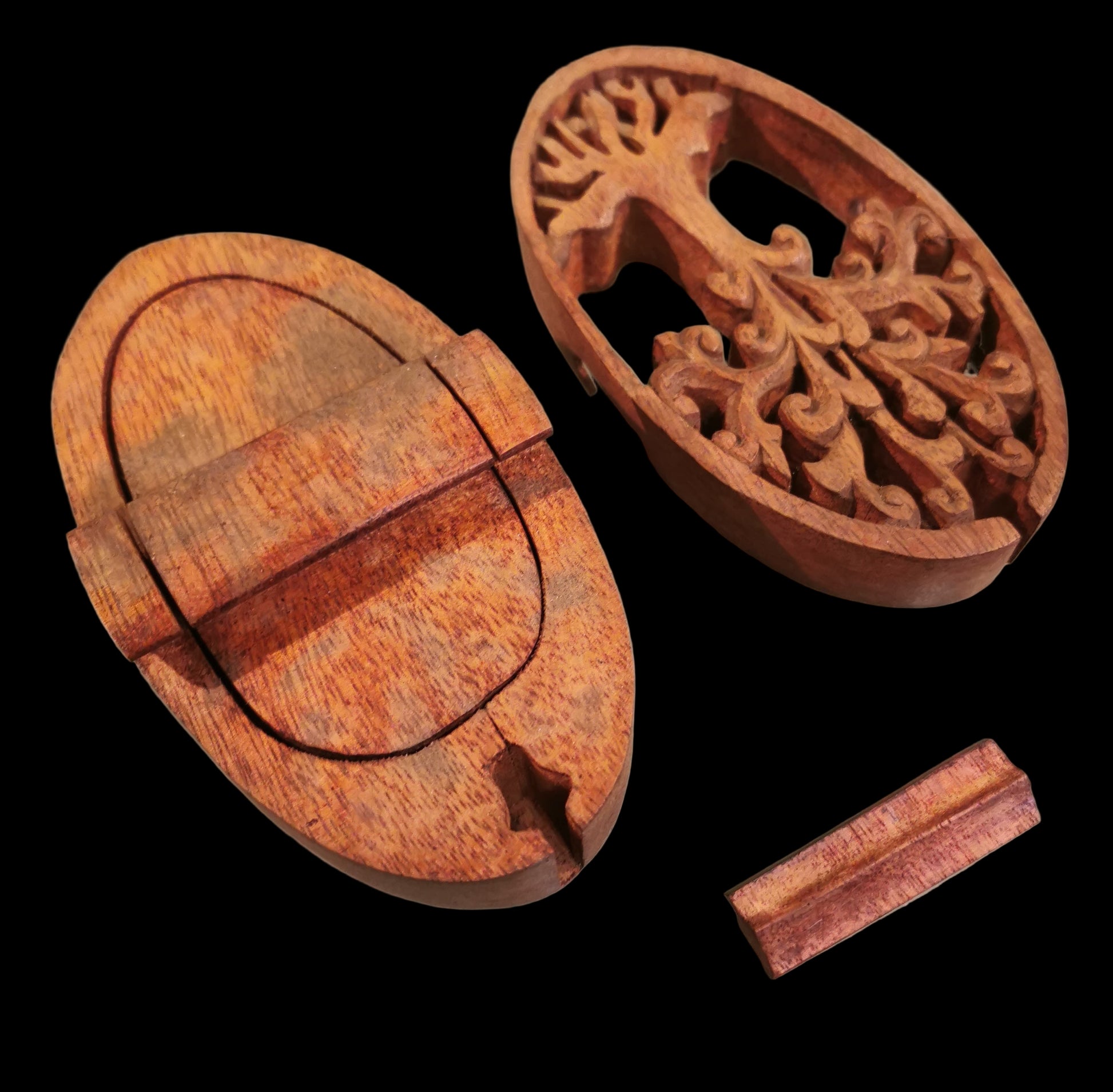 Ref.DV0035 - Box with tree motif made of suar wood and wooden lock.