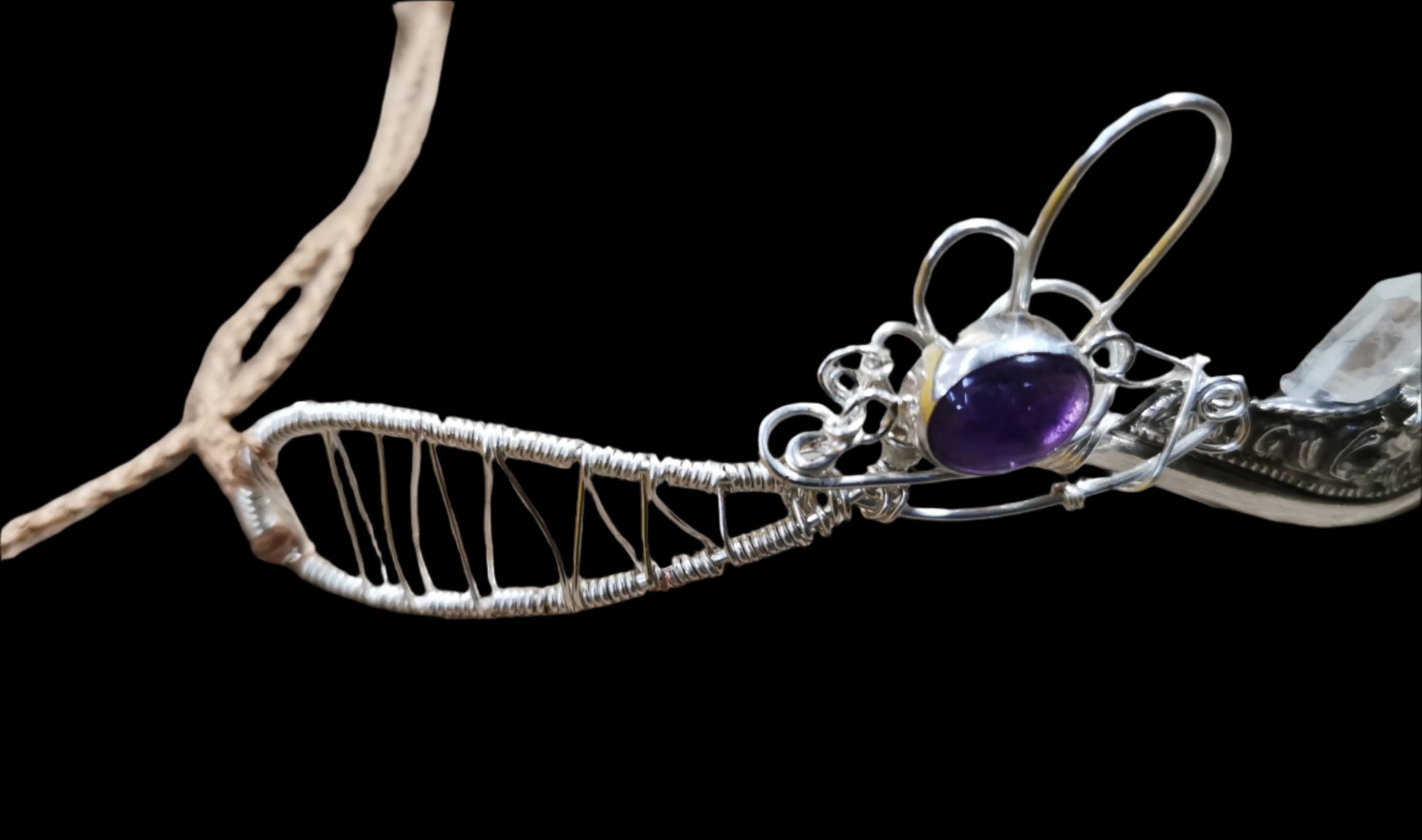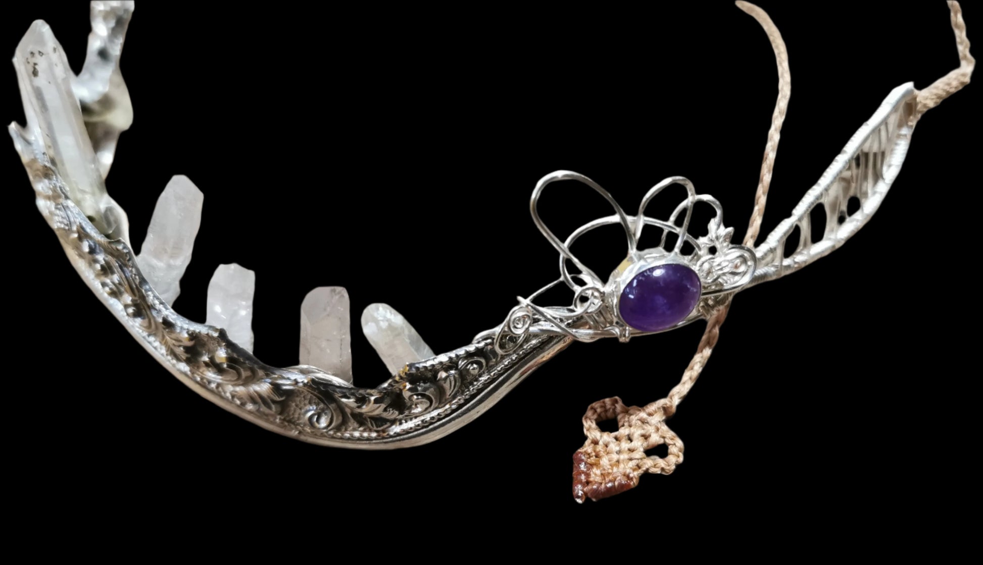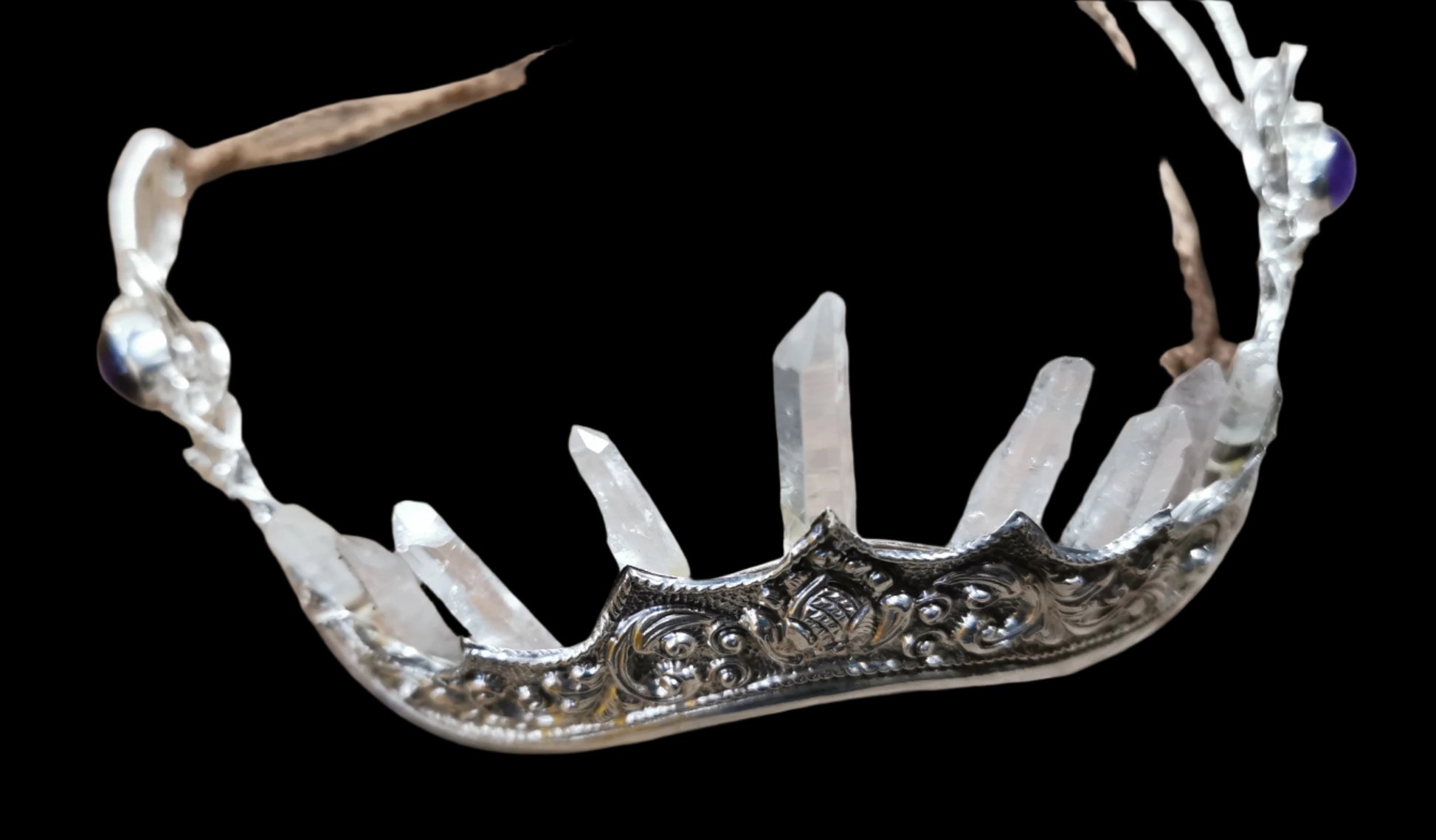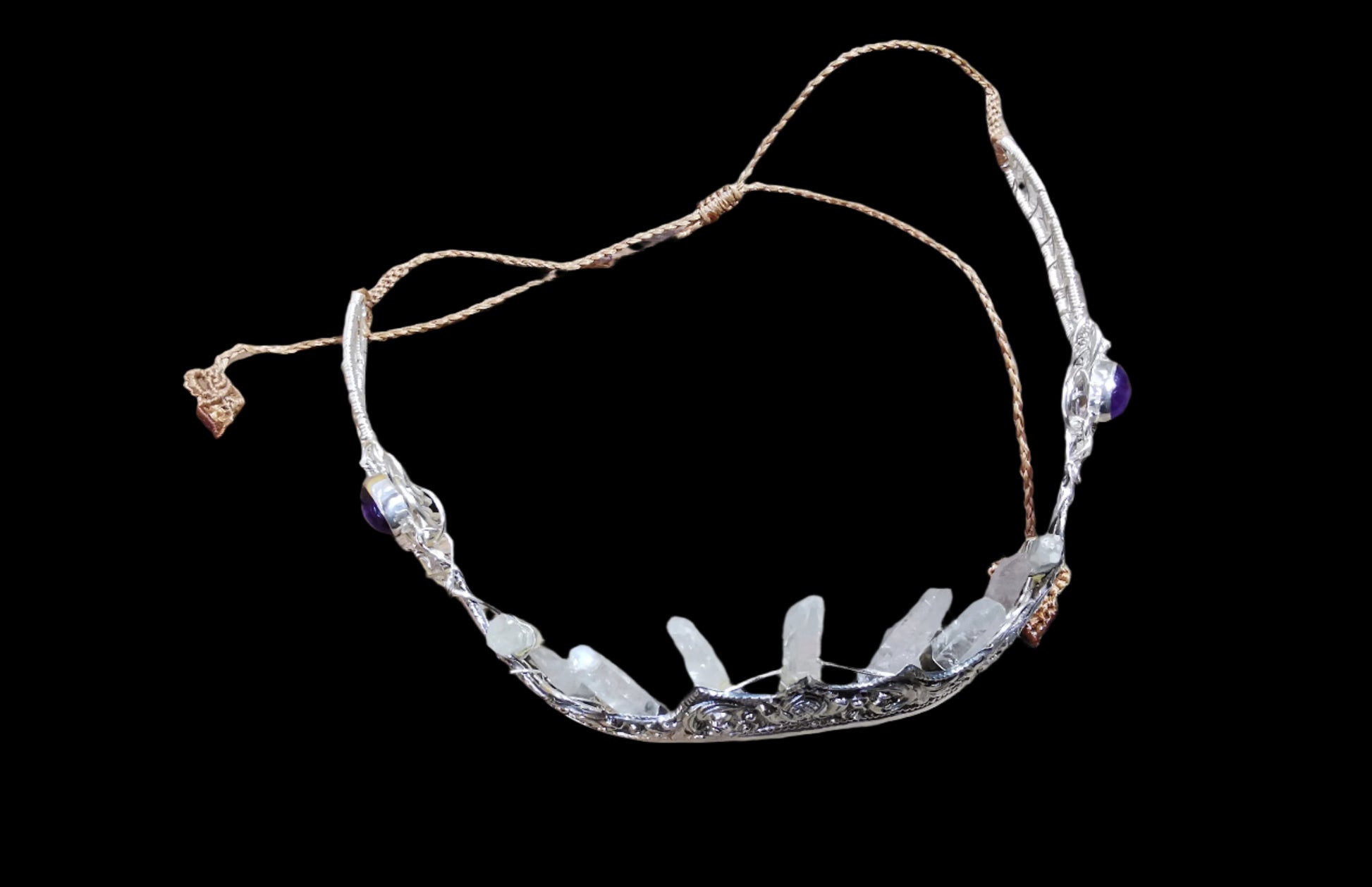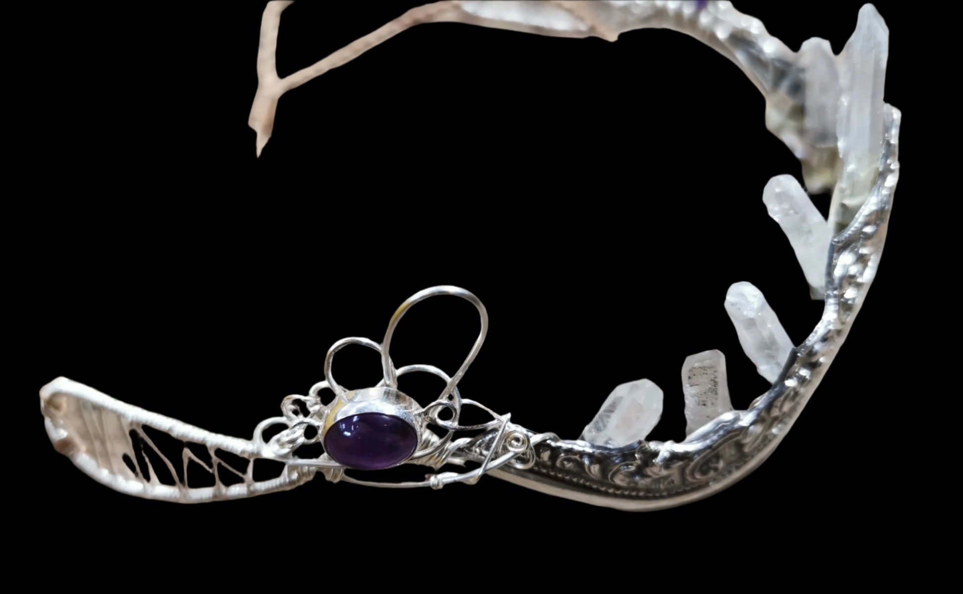 Ref.DV0036 - Silver plated tiara with laser quartz crystals, and amethyst gemstones.