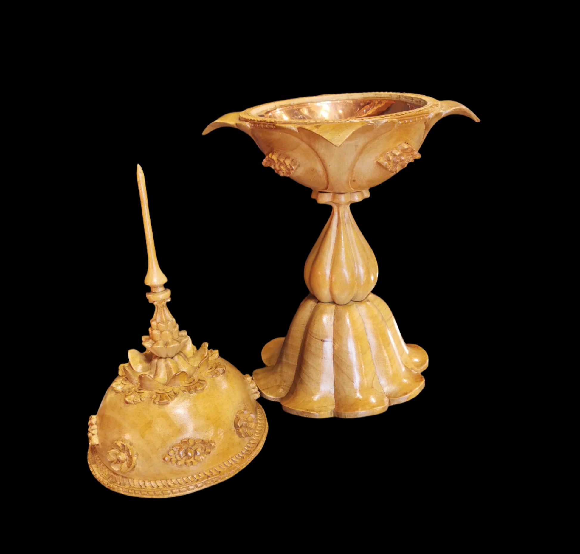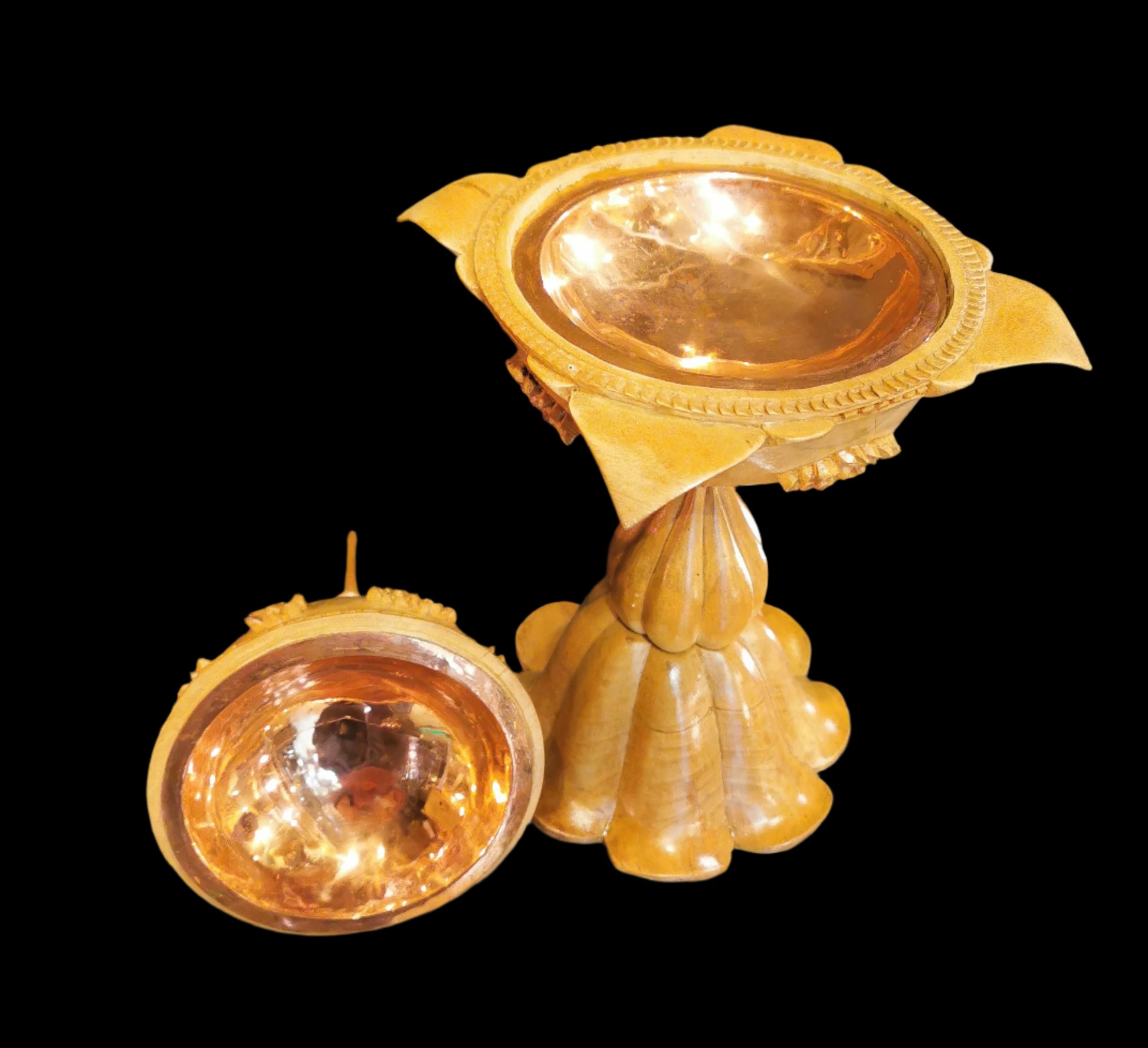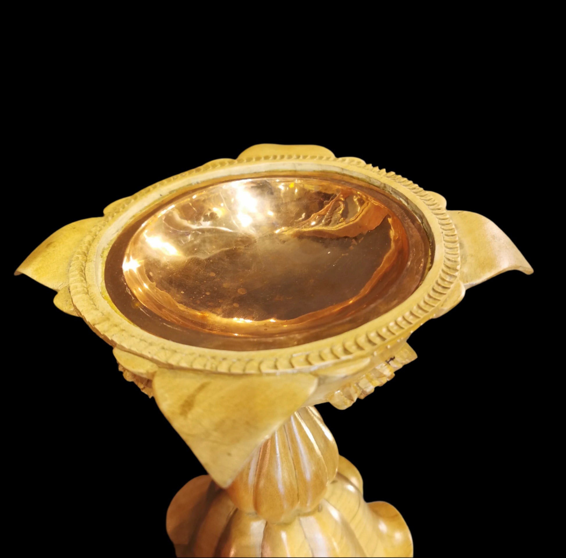 Ref.DV0045 - Balinese temple sacred water bowl in crocodile wood with copper coated insides.