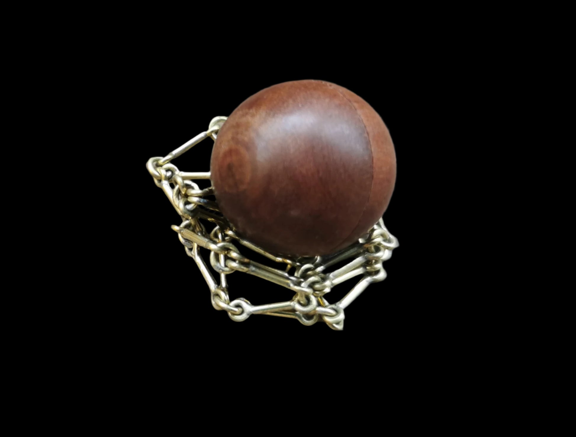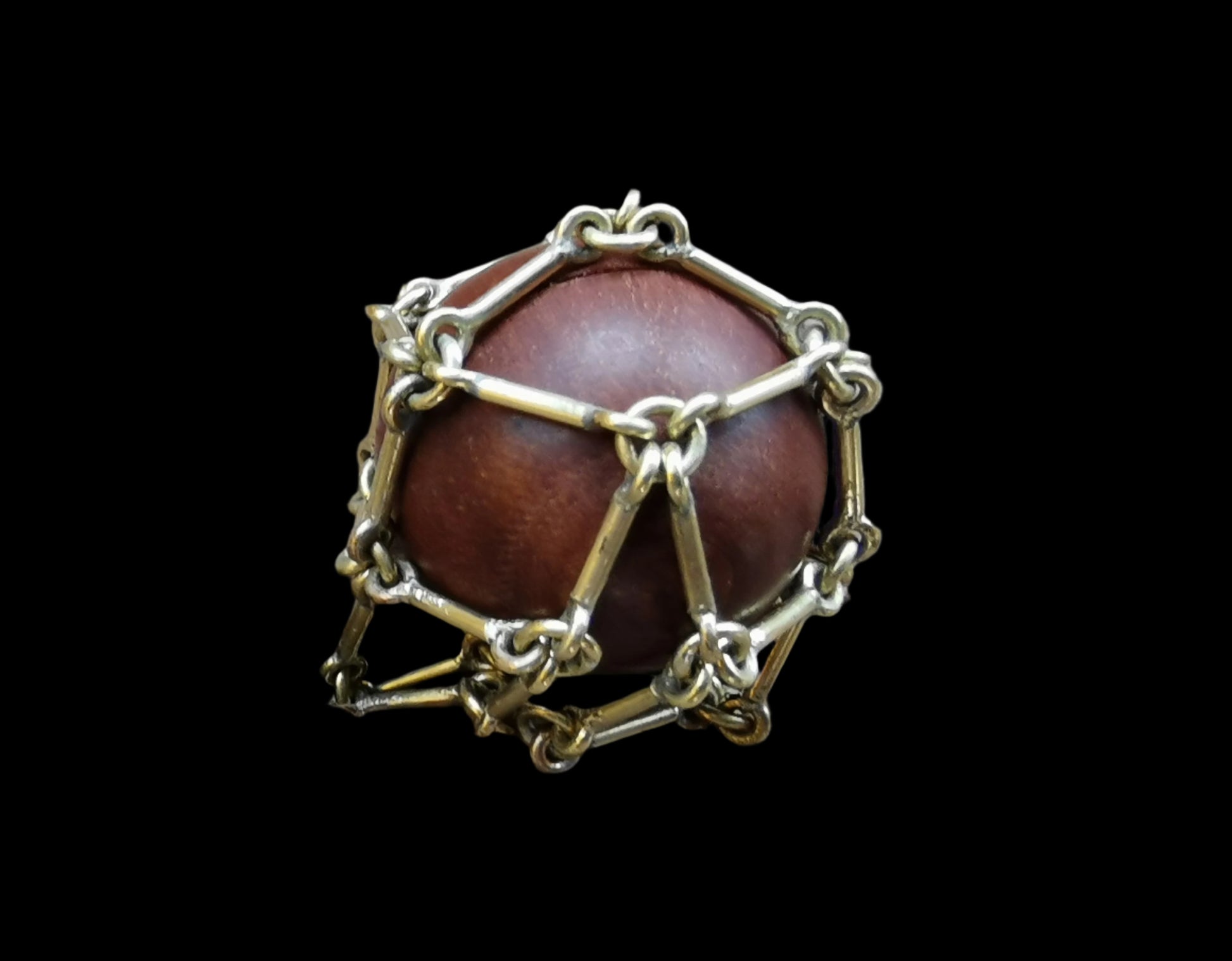 Ref.DV0046 - Brass mesh for carrying crystal/gemstone (wooden sphere as example).