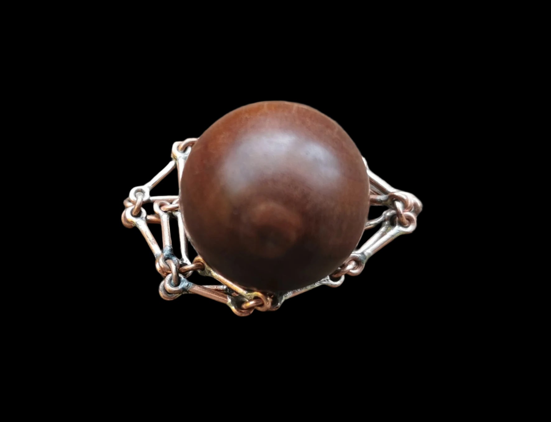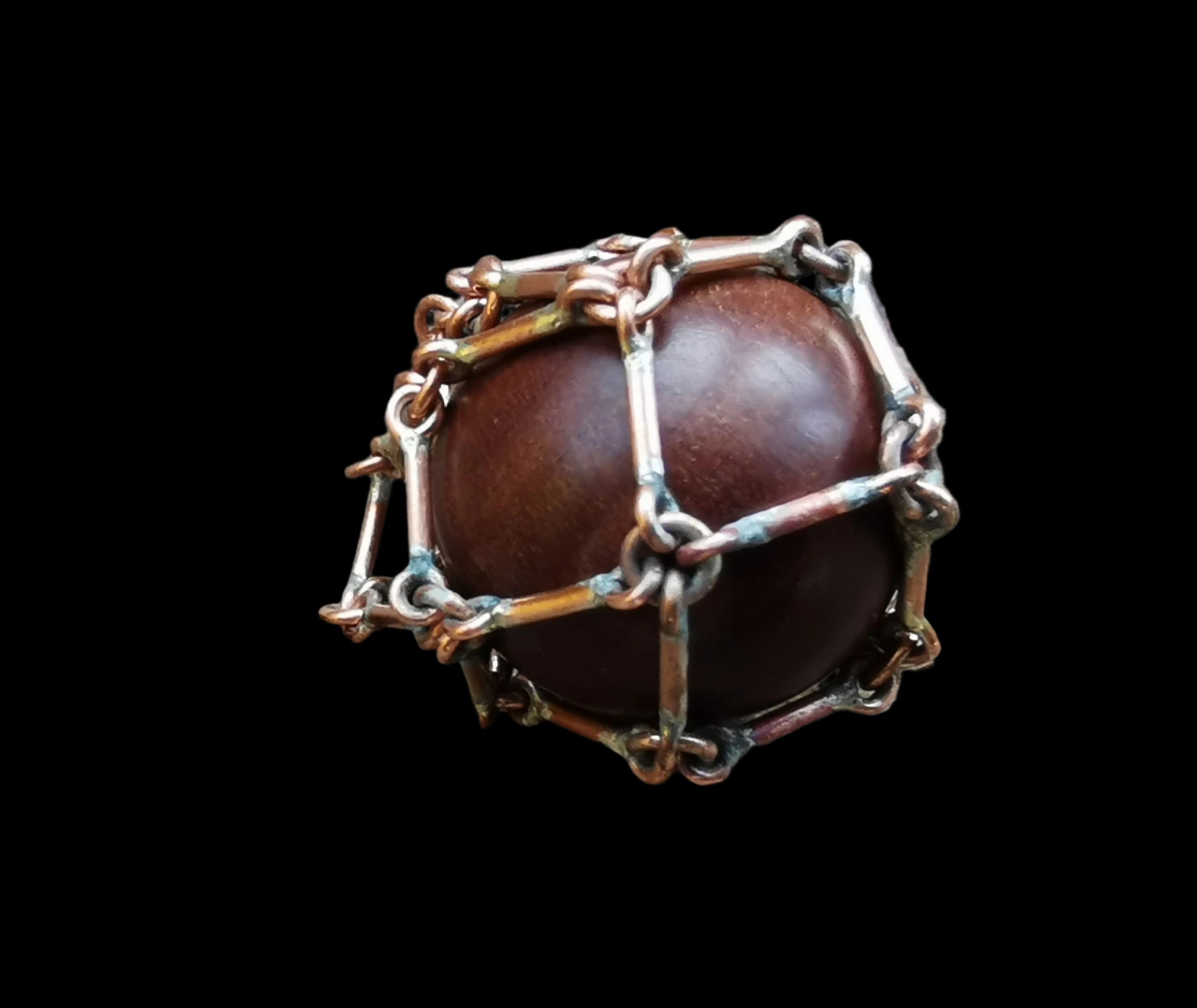 Ref.DV0047 - Copper mesh for carrying crystal/gemstone (wooden sphere as example).