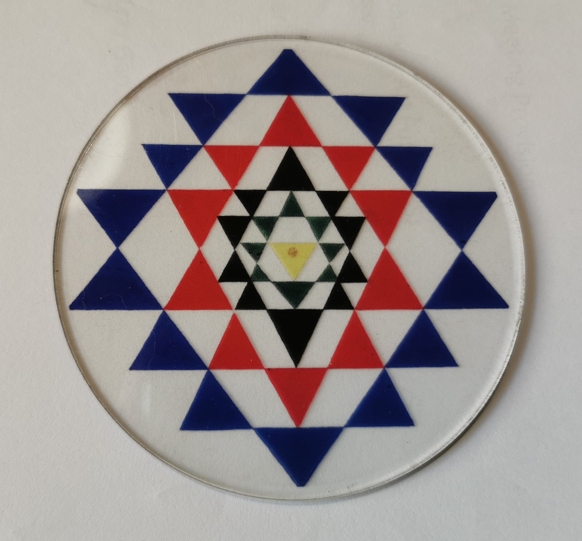 Ref.DV0051 - Acrylic coaster with Sri Yantra motif in the 7 chakra colors