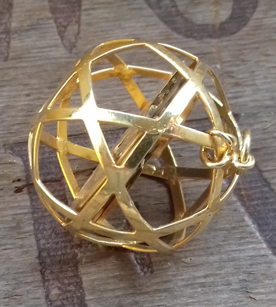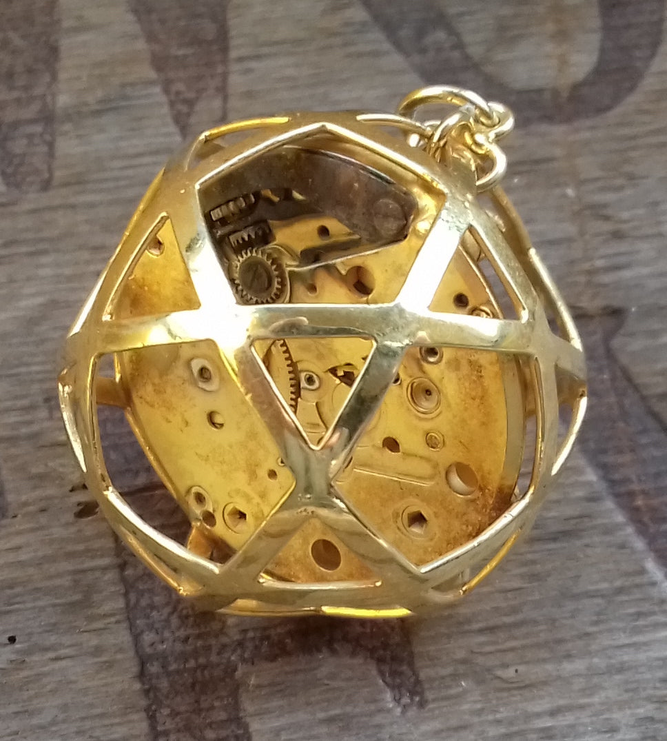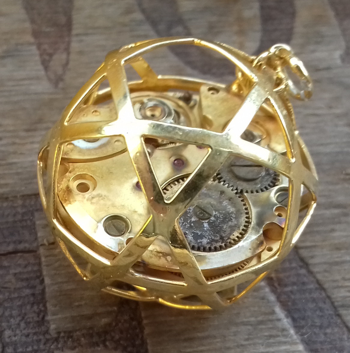 Ref.PD0070 - Gold plated on silver pendant with Penta Sphere geometry, and old watch mechanism.