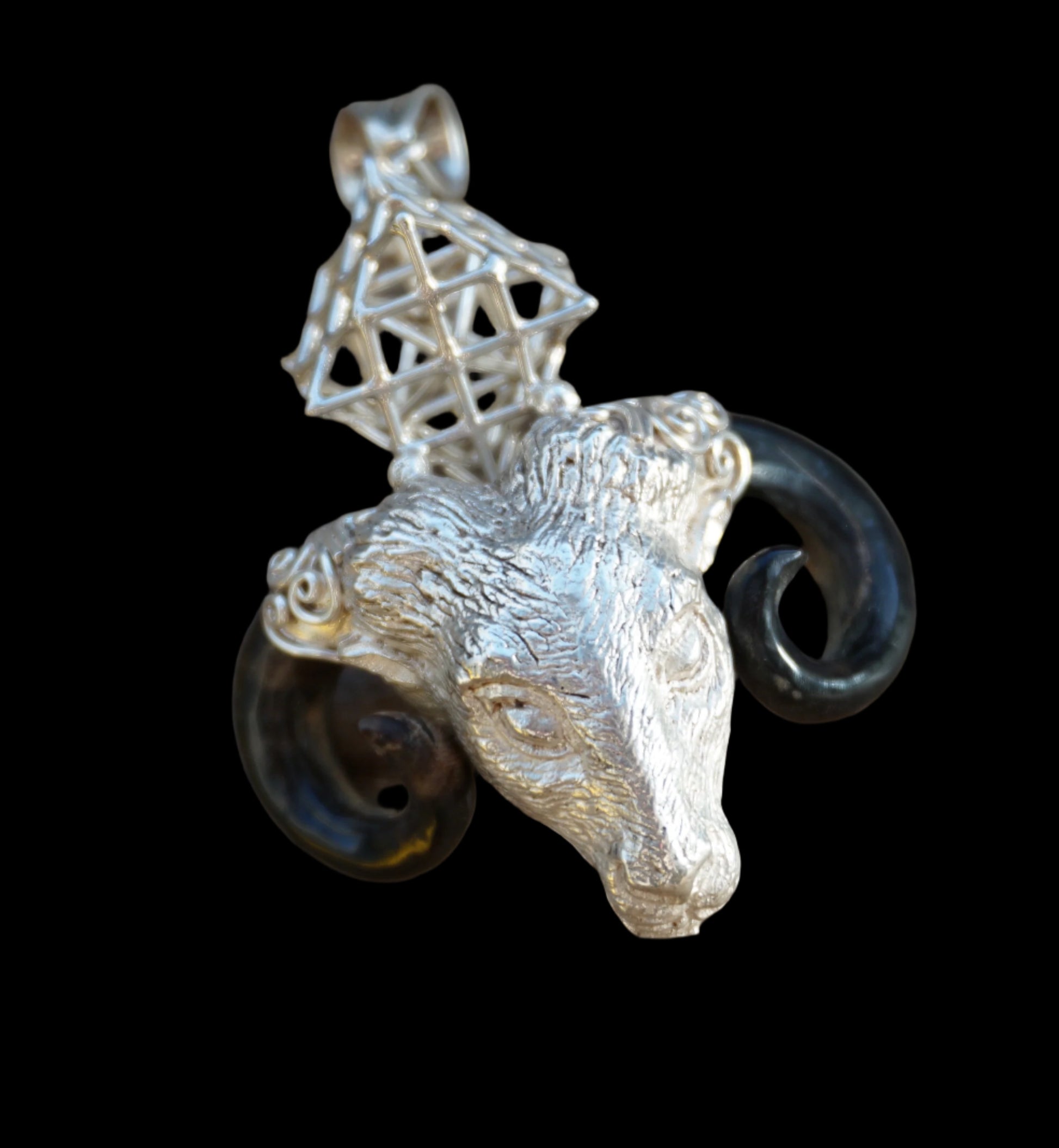 Ref.PD0316 - Silver pendant with Tantric Terra Prana geometry, and ram head.
