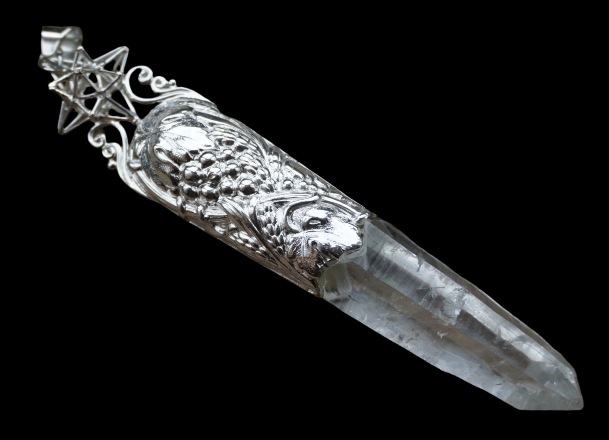 Ref.PD0446 - Silver plated pendant with silver sterling Heart Star geometry, and laser quartz crystal.