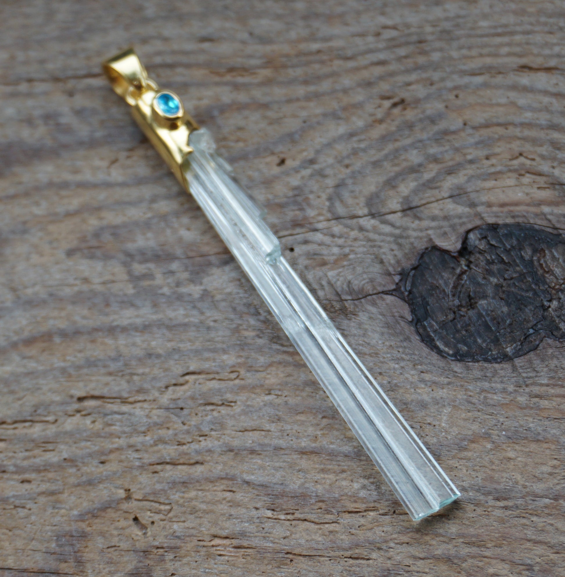 Ref.PD0483 - Gold plated on silver pendant with dioptase, and aquamarine gemstones.