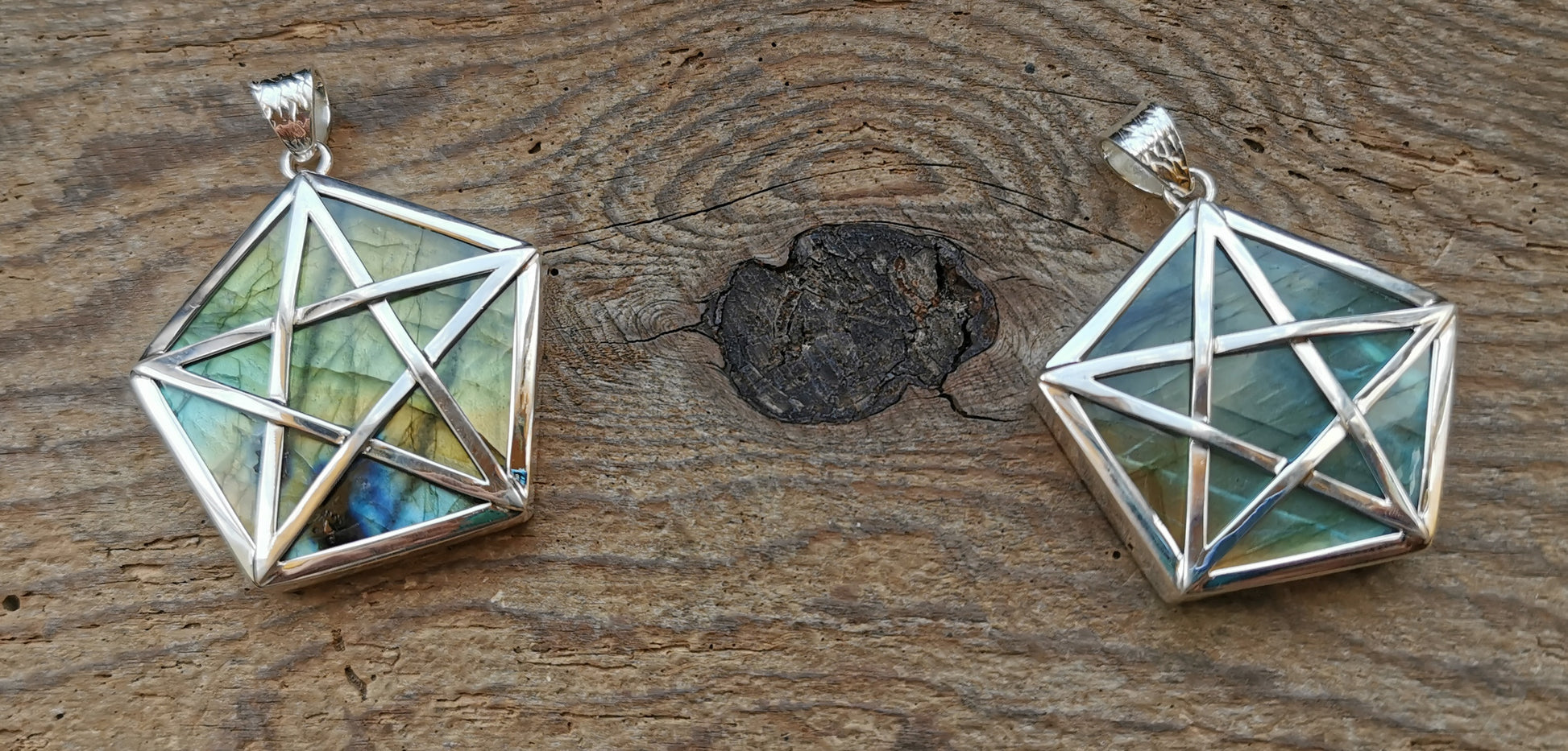 Ref.PD0572 - Silver pentagram with pentagonal labradorite gemstone.