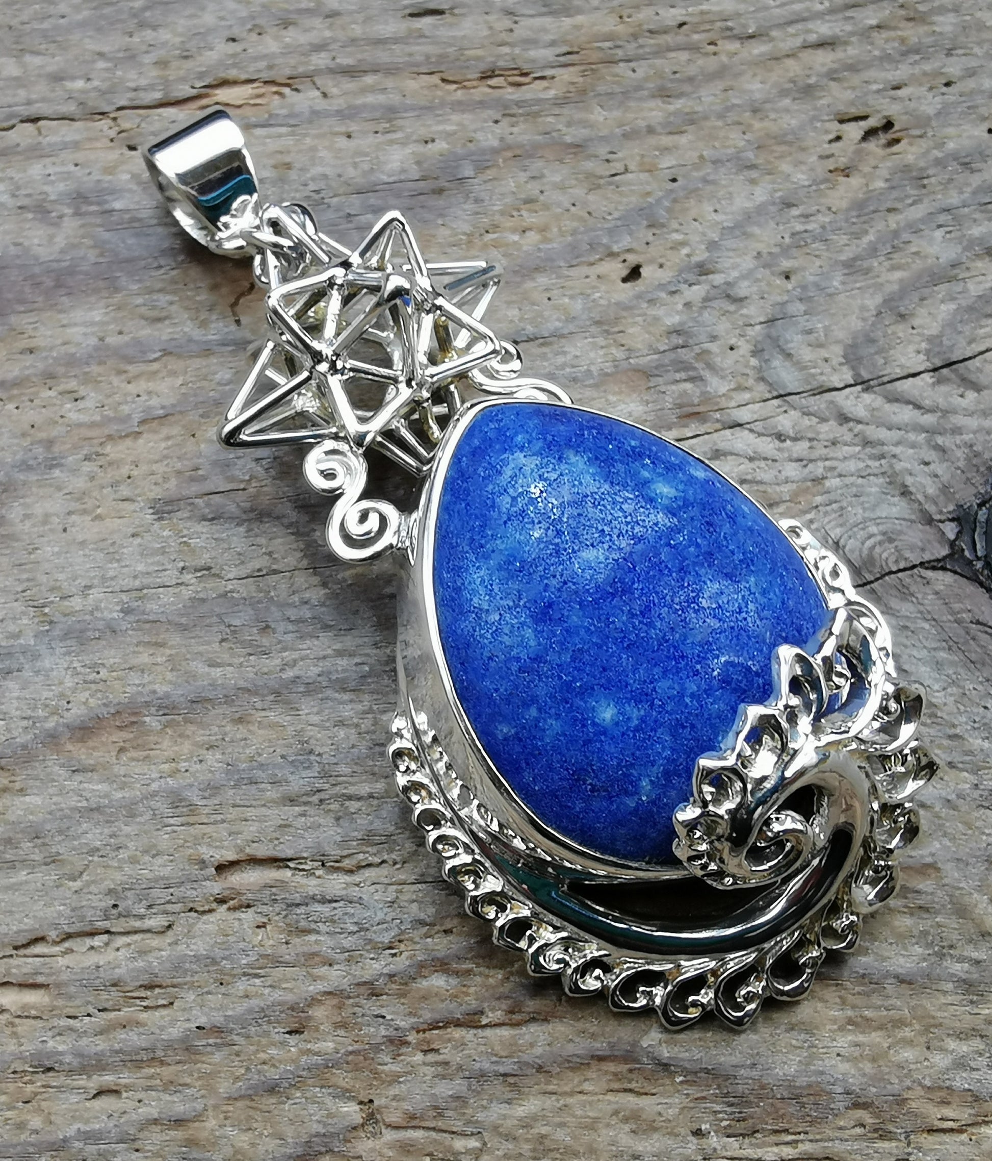 Ref.PD0736 - Silver pendant with Heart Star geometry, and lapis lazuli gemstone.