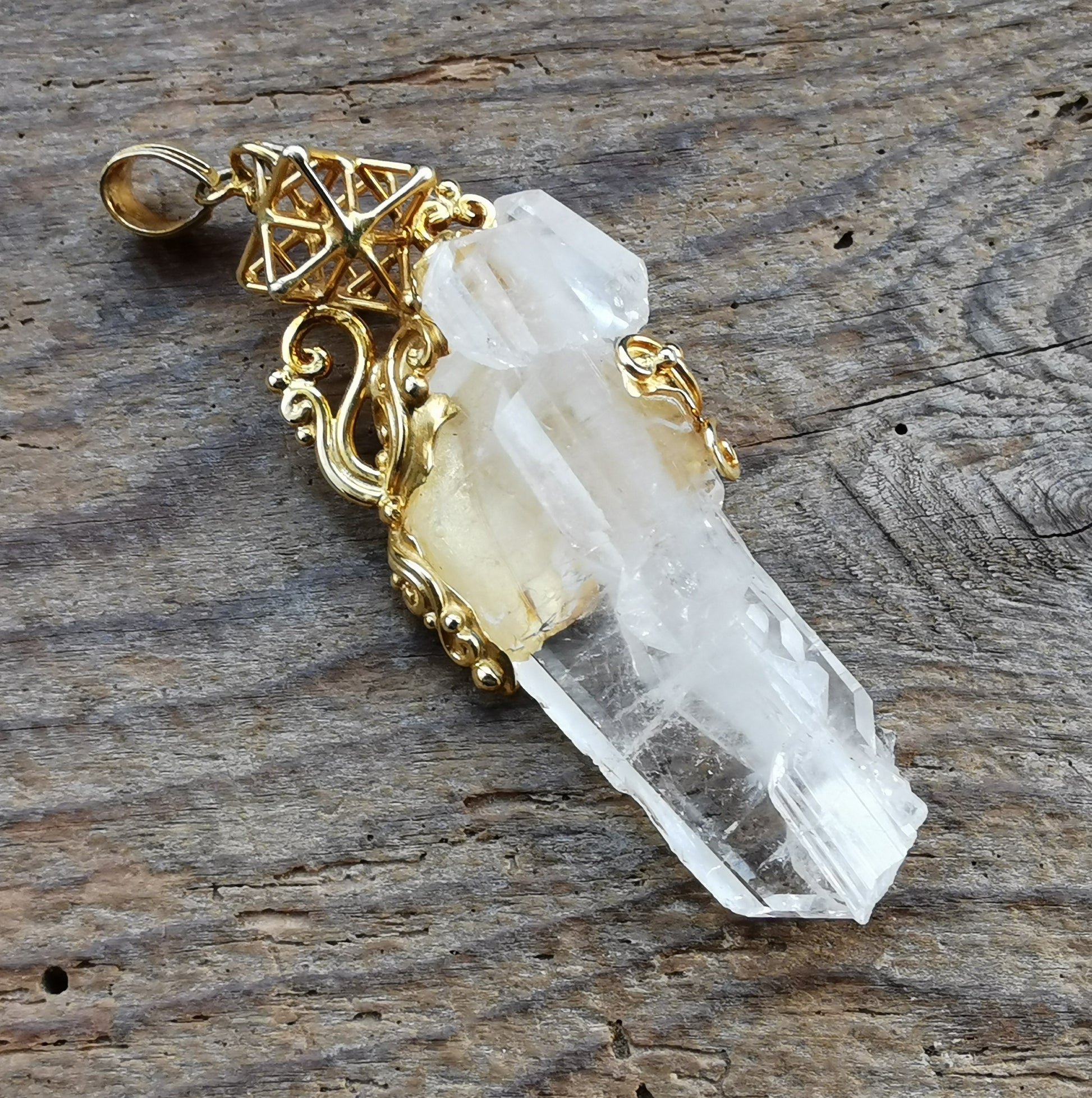 Ref.PD0766 - Gold plated on silver pendant with Tantric Star geometry, and quartz crystal.