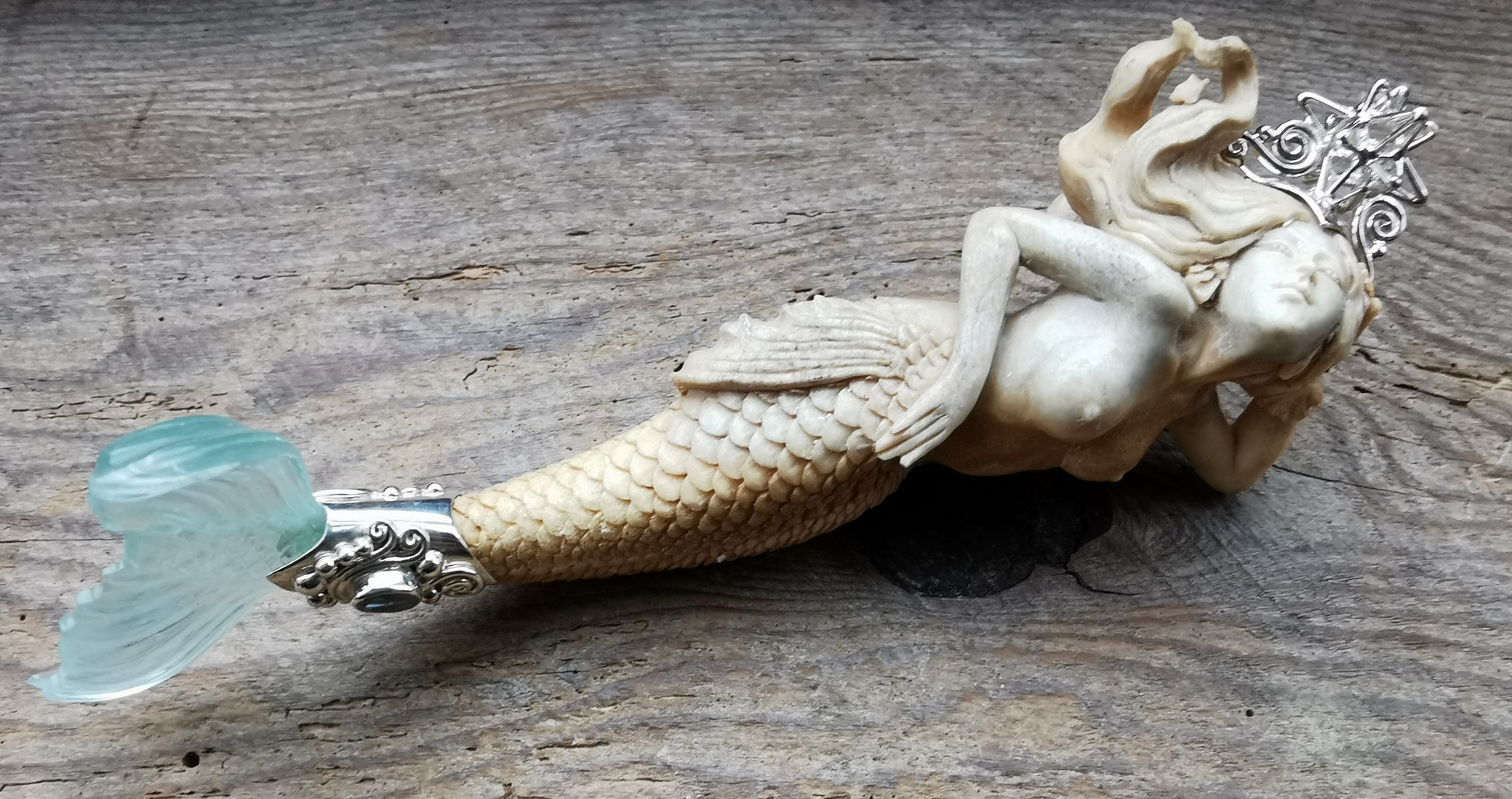 The mermaid symbolizes a bridge between the subconscious and the conscious, due to her ability to live underwater as well as being able to maintain herself above water by breathing air. Water and emotions go hand in hand and likewise she's also a powerful healing symbol.