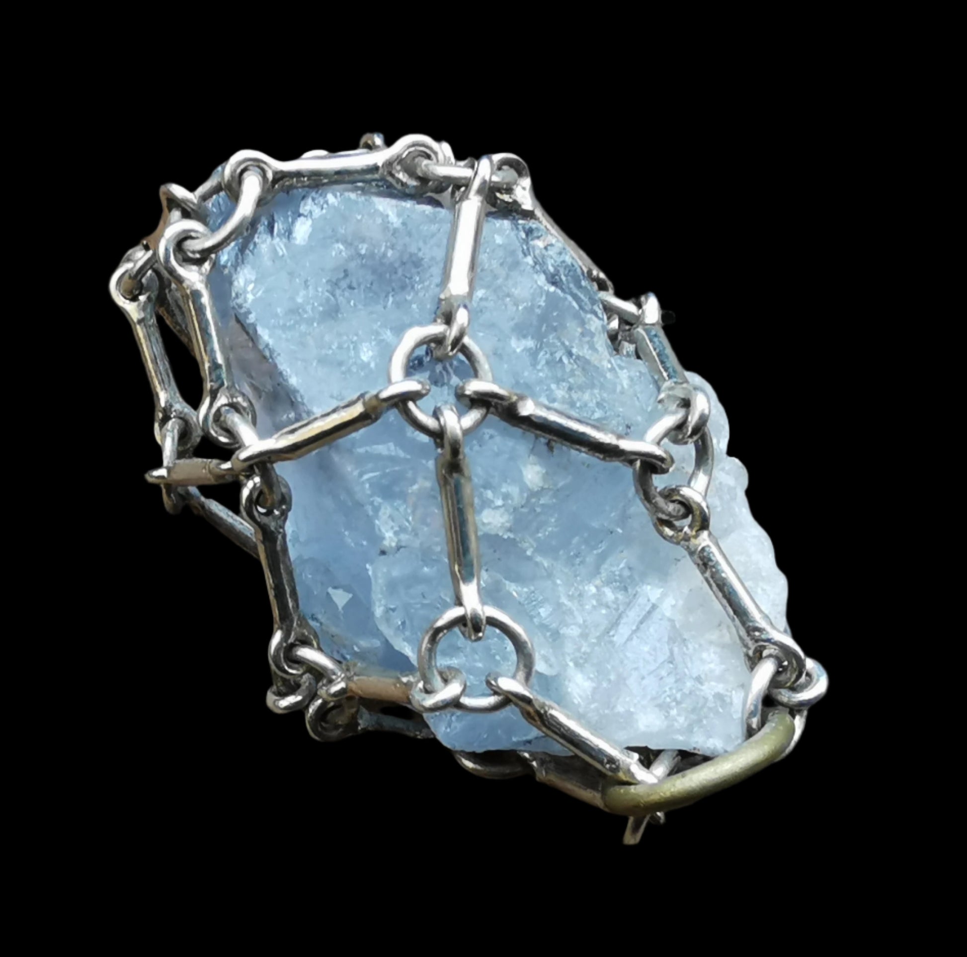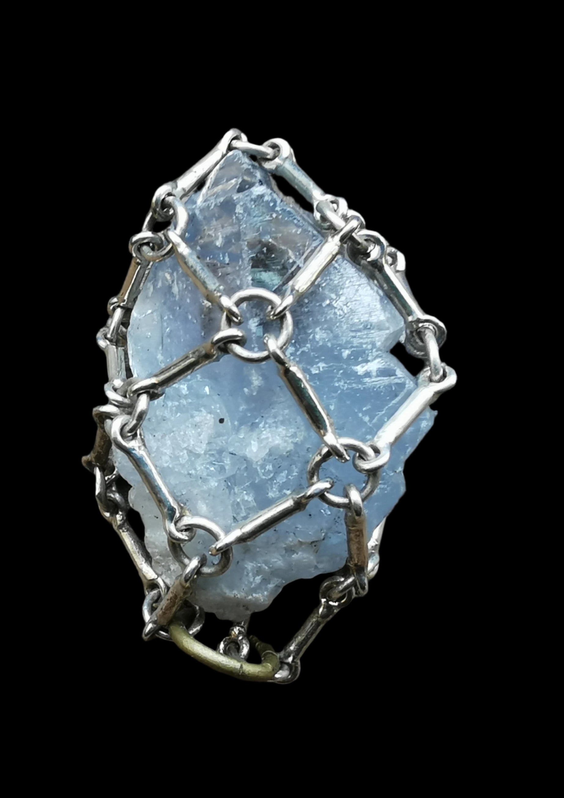 Ref.PD0799 - Silver pendant with blue calcite gemstone.