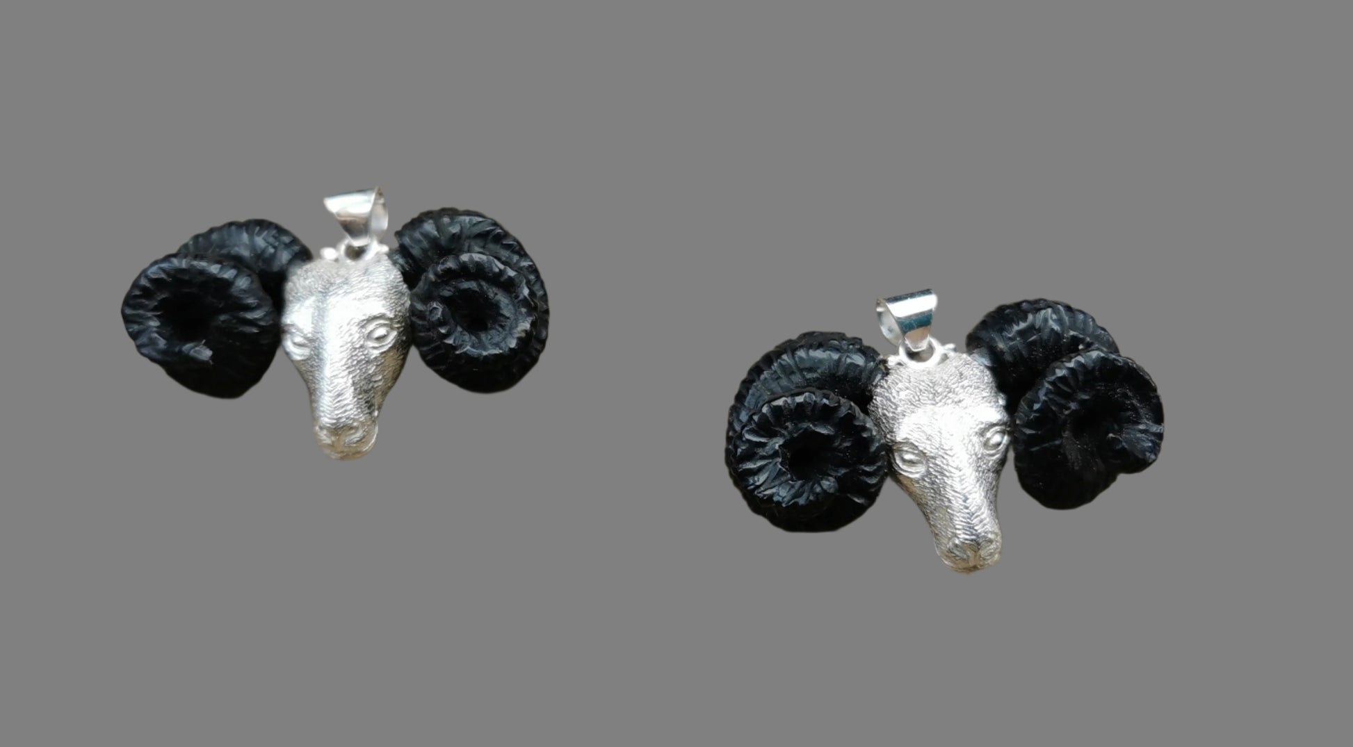 Ref.PD0801 - Silver pendant with ram head, and buffalo horn carved horns