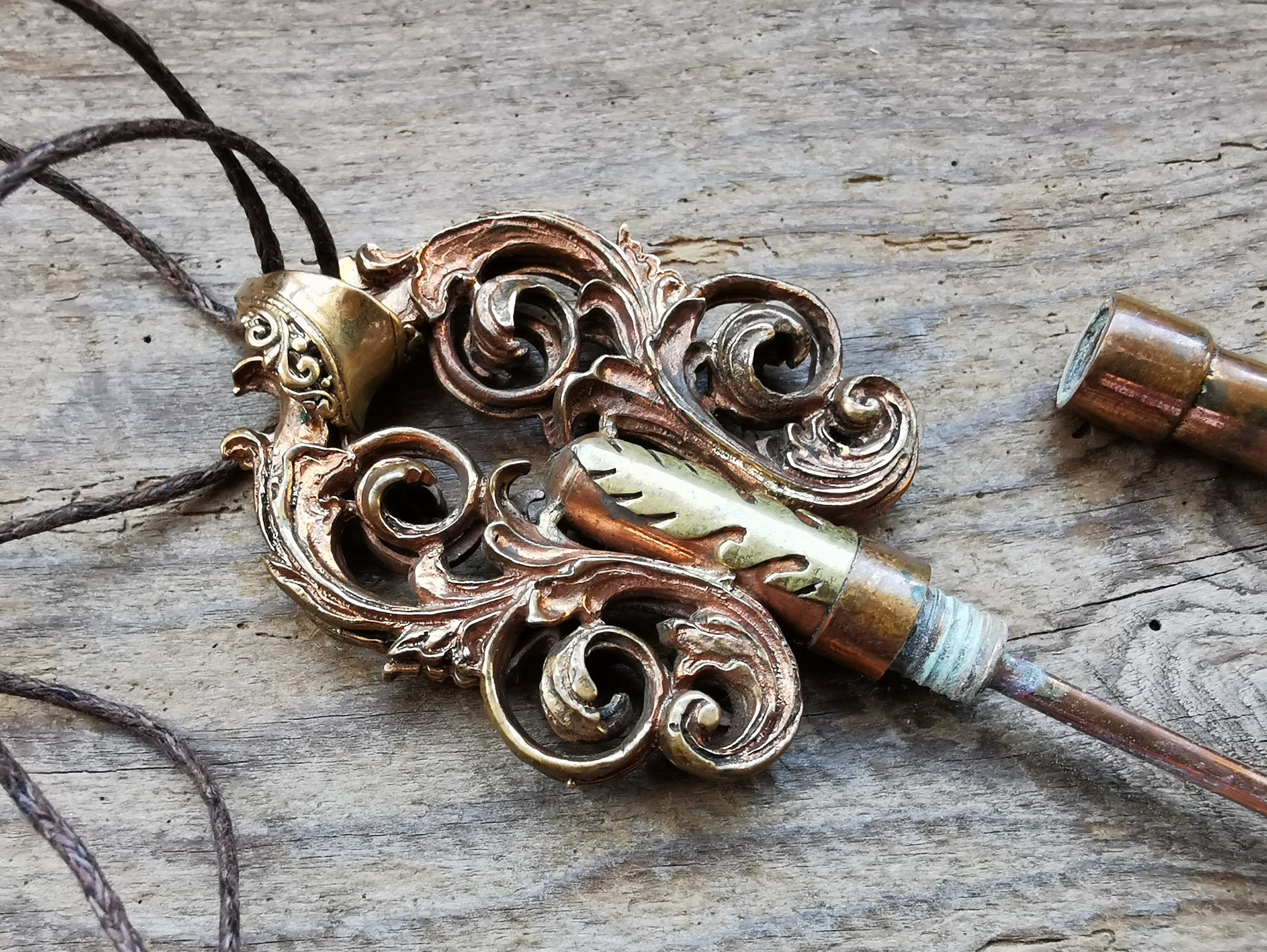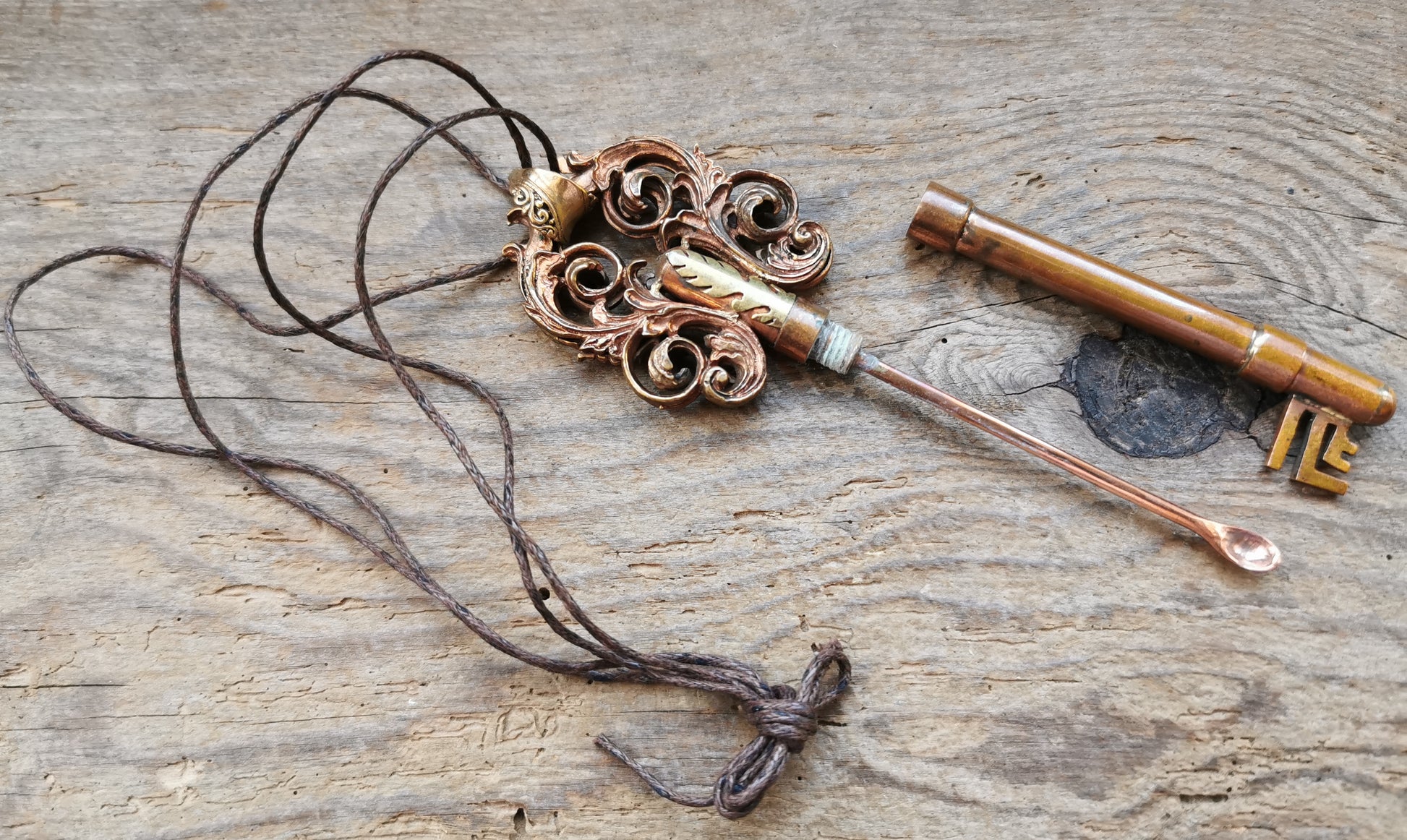 Ref.PD0838 - Brass/copper key pendant with hidden spoon.