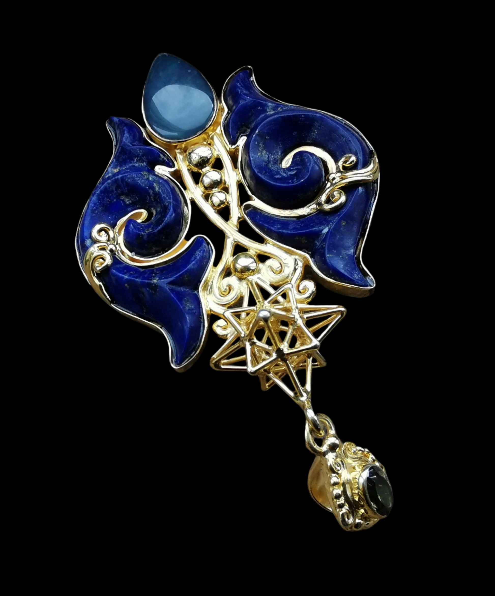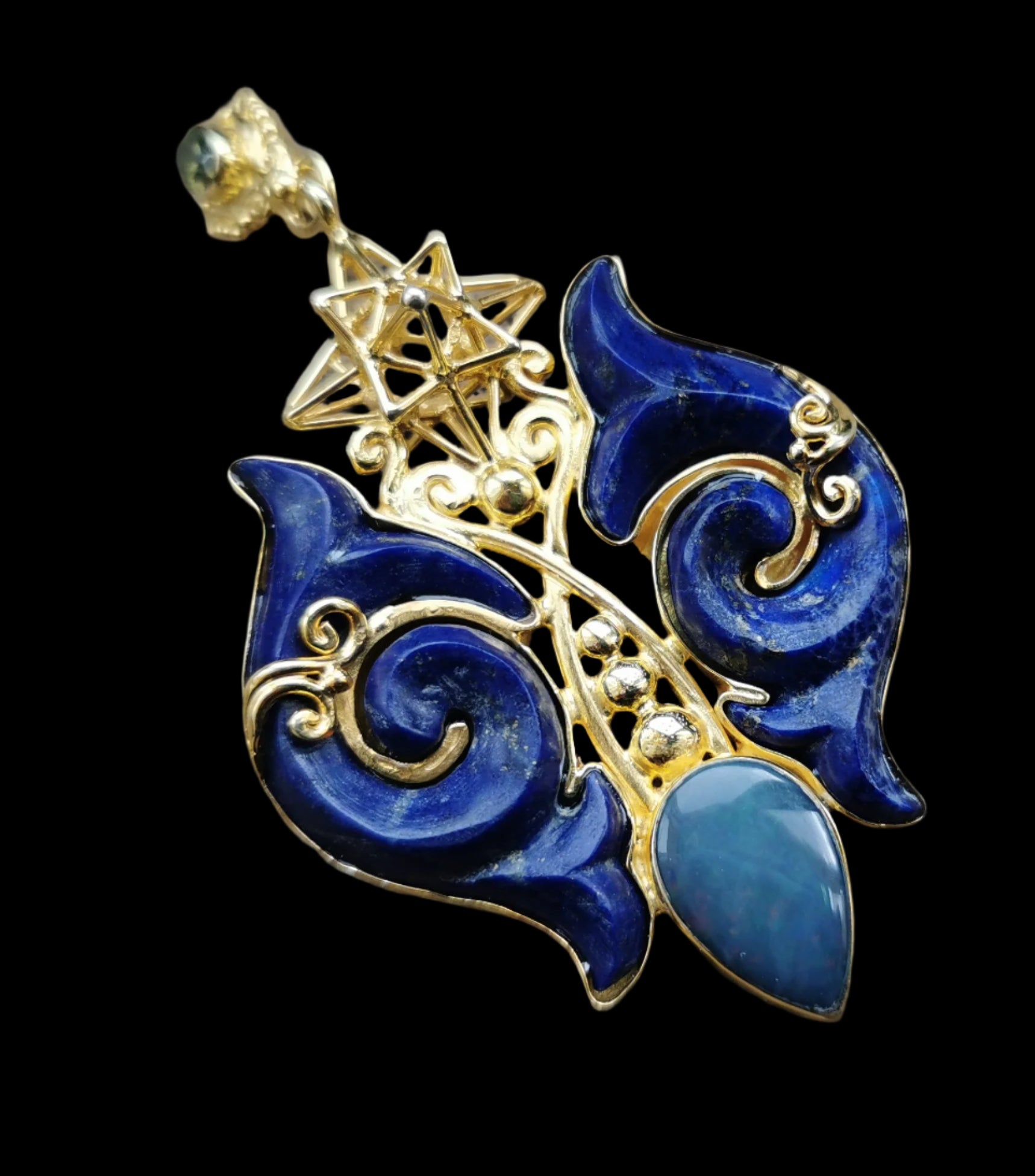 Ref.PD0847 - Gold plated on silver pendant with Heart Star geometry, lapis lazuli, opal, and cubic zirconia gemstones.