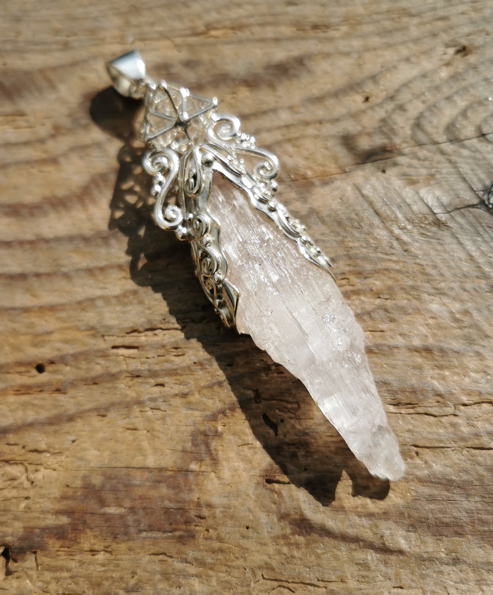 Ref.PD0872 - Silver pendant with Tantric Star geometry, and pink kunzite gemstone.