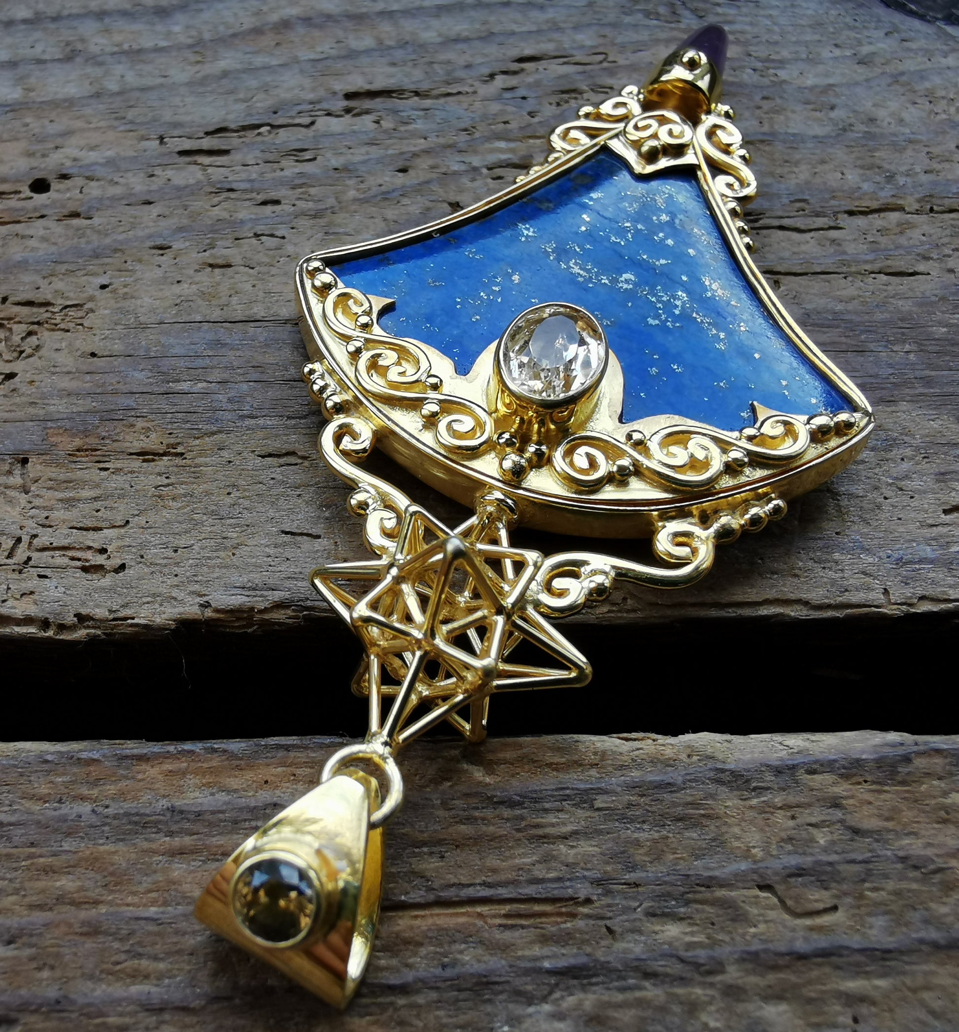 Ref.PD0881 - Gold plated on silver pendant with Heart Star geometry, lapis lazuli, citrine, amethyst, and zircon gemstones.