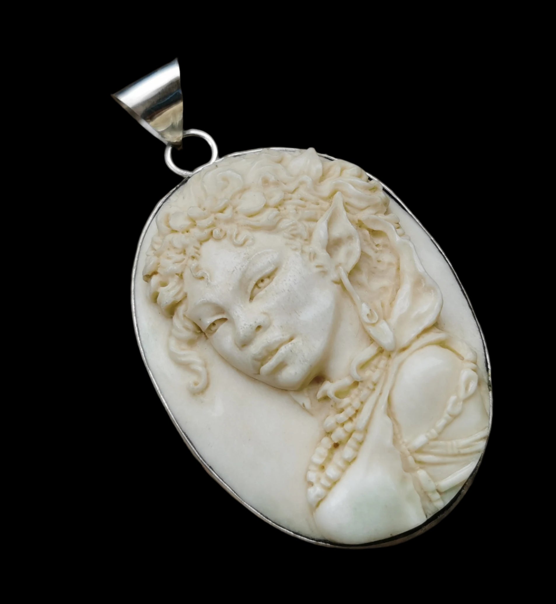 Ref.PD0915 - Silver pendant with ecologically sourced deer horn carved fairy.