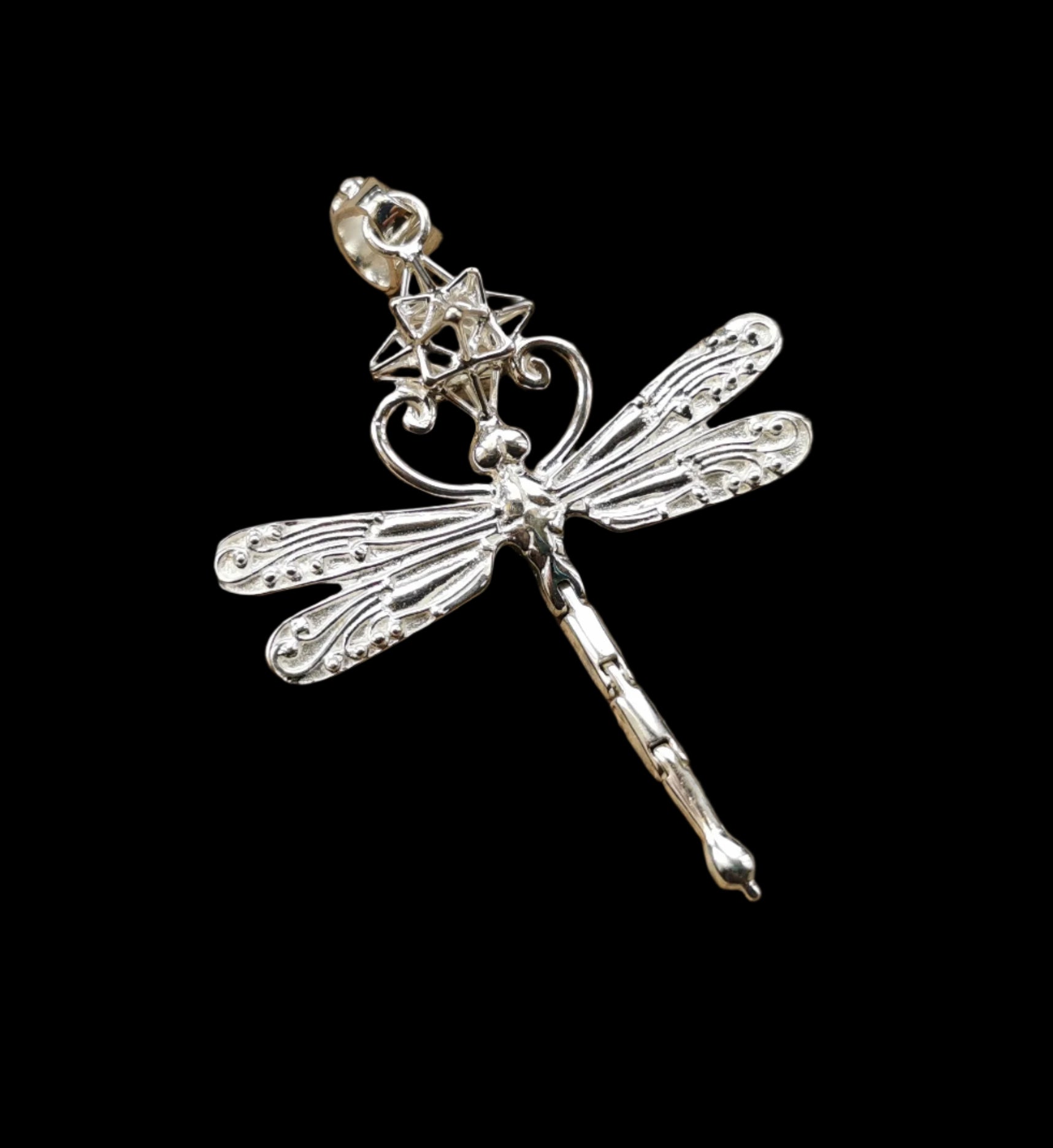 Ref.PD1023 - Silver pendant with Heart Star geometry and dragonfly.