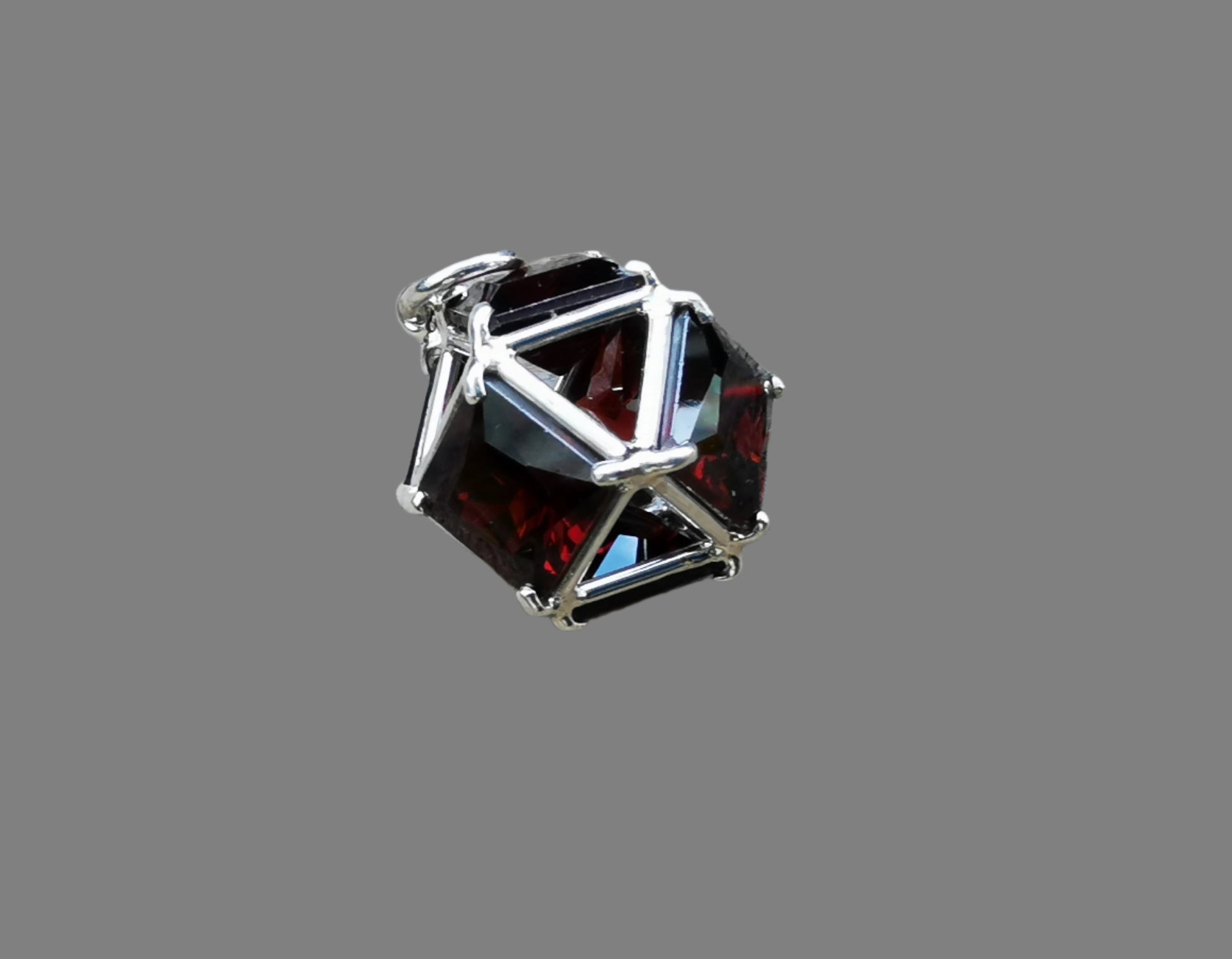Ref.PD1041 - Silver pendant with Iconic Terra Prana Sphere geometry motif, and garnet gemstones.