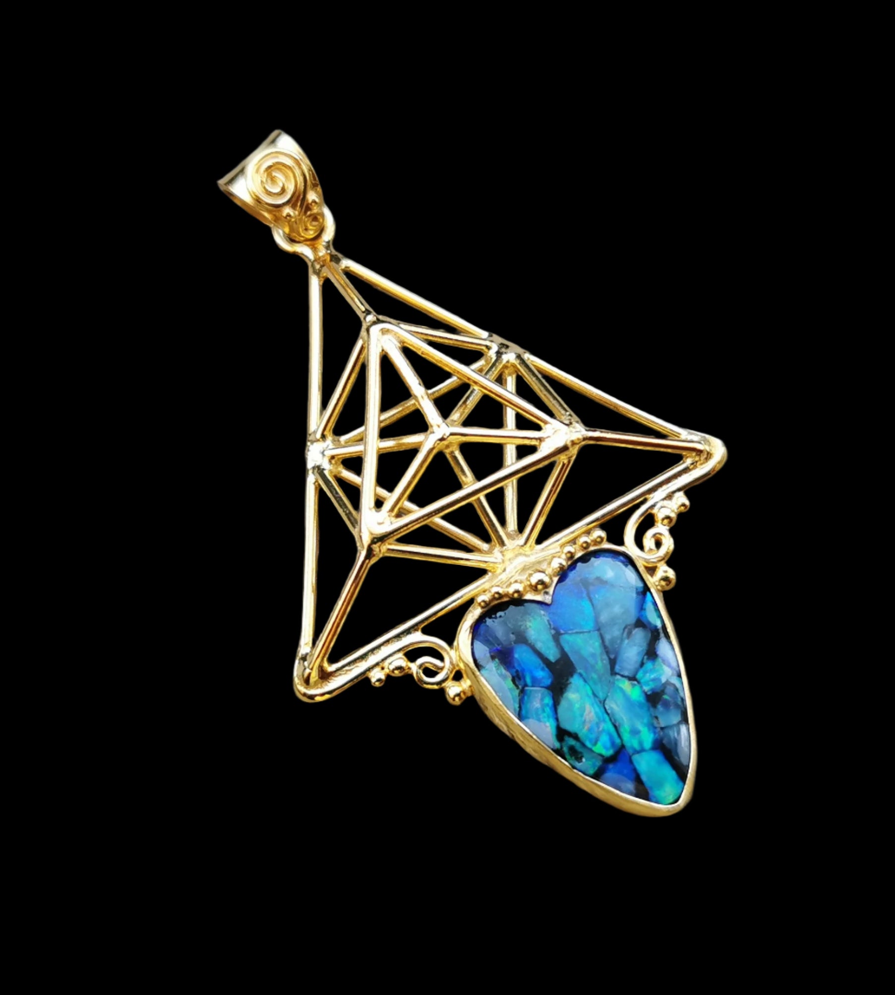 Ref.PD1048 - Gold plated on silver pendant with Tetra Prana geometry, and opal gem.