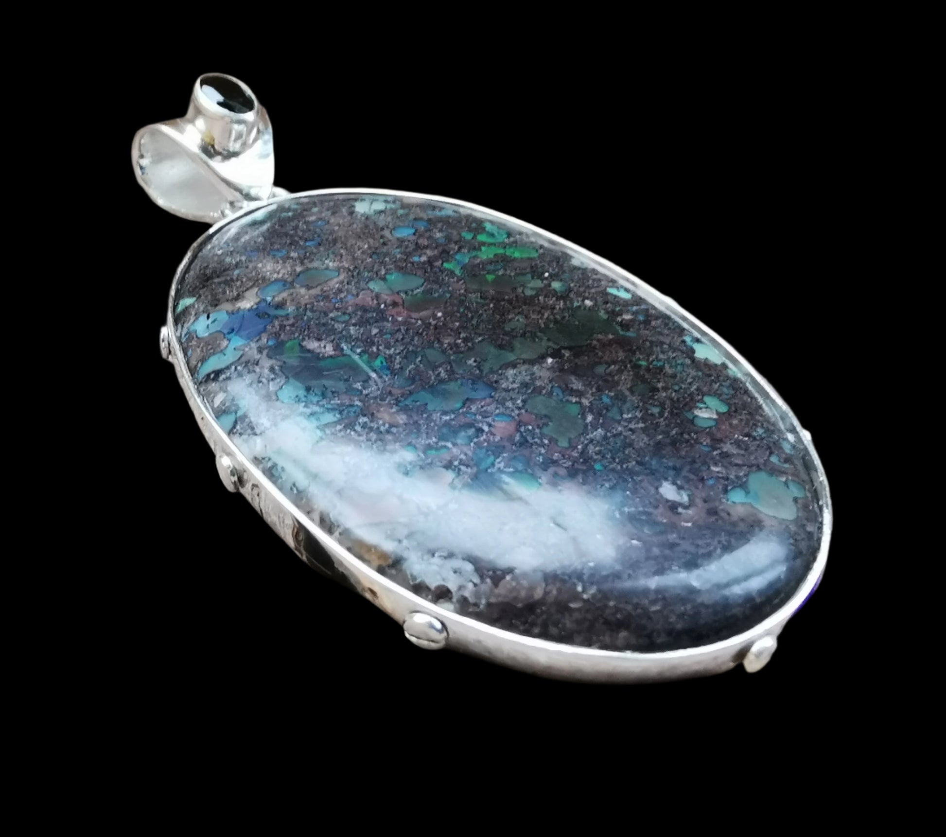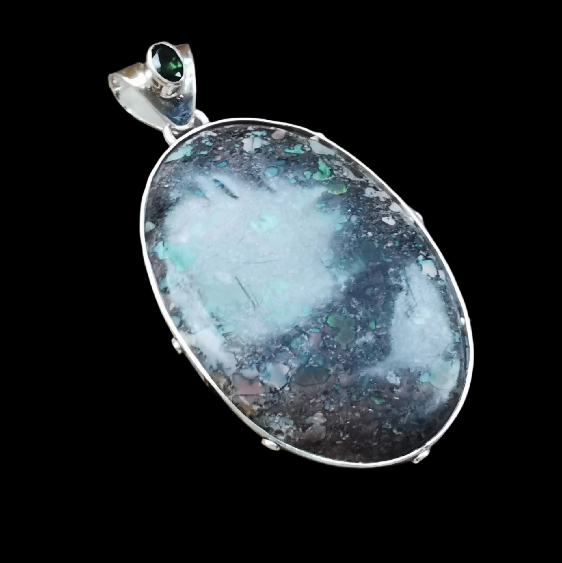 Ref.PD1074 - Silver pendant with Javanese black opal, and peridot gemstones.